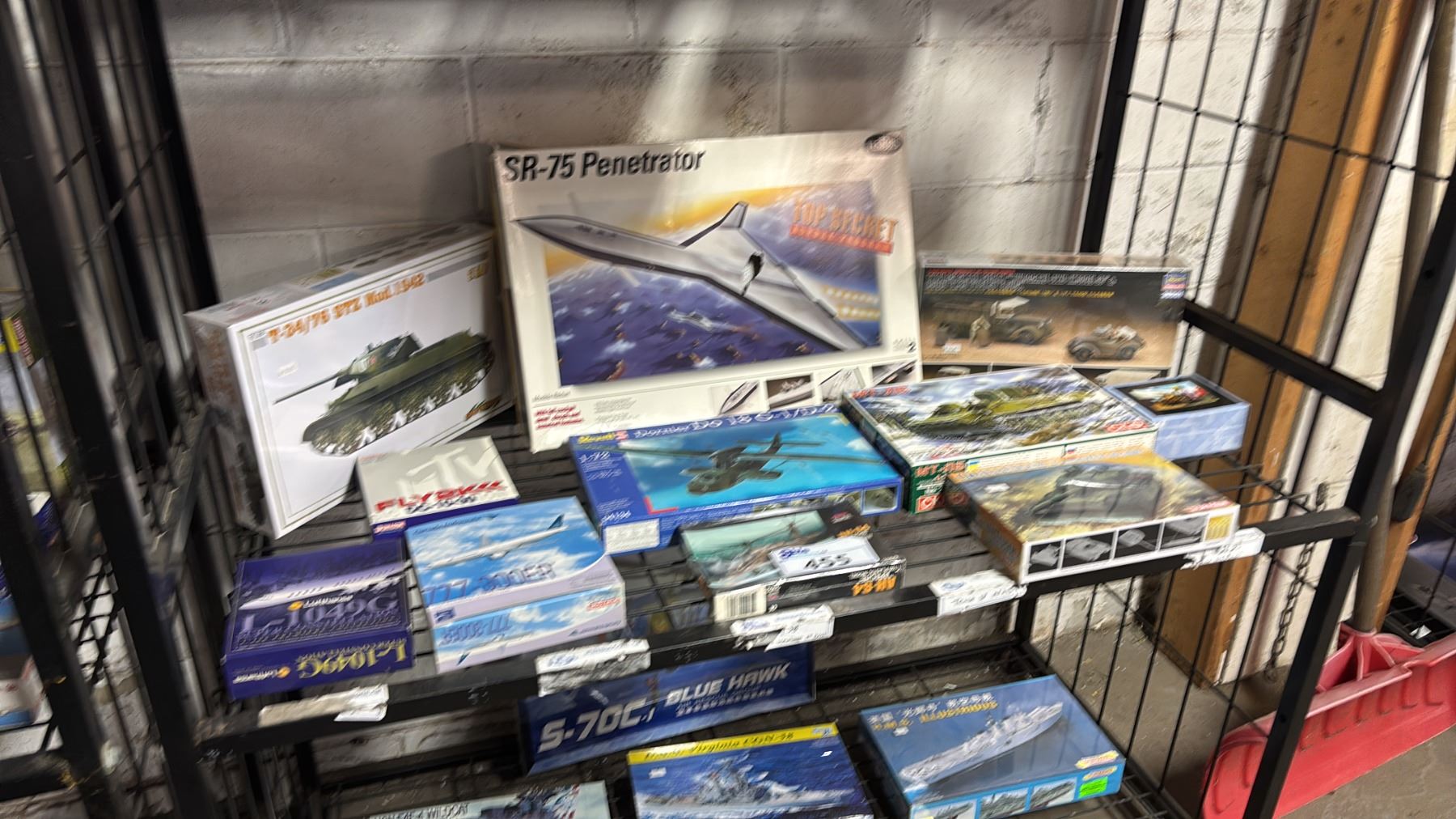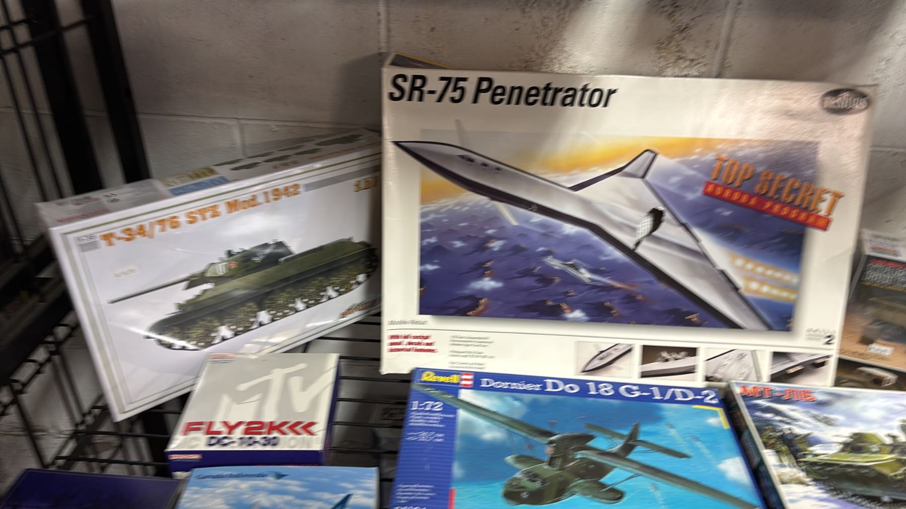 SHELF OF ASSORTED AIRCRAFT & MILITARY VEHICLE MODEL KITS