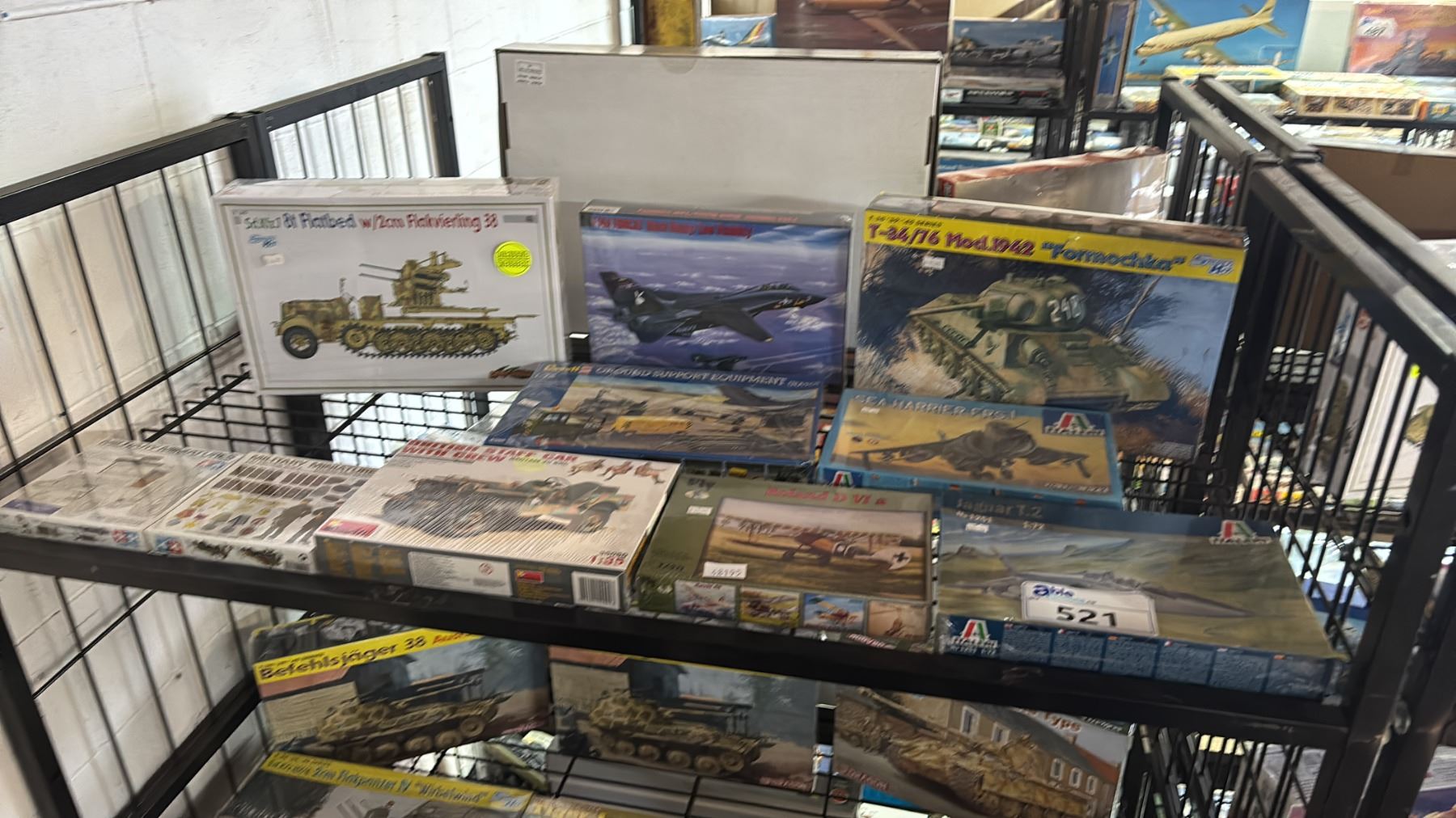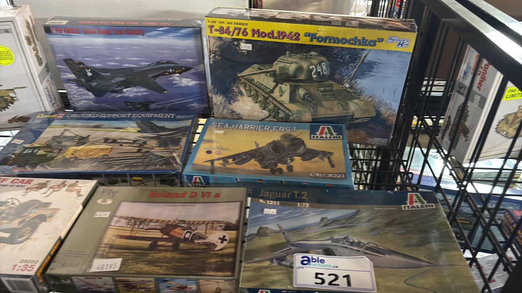 SHELF OF ASSORTED AIRCRAFT & MILITARY VEHICLE MODEL KITS