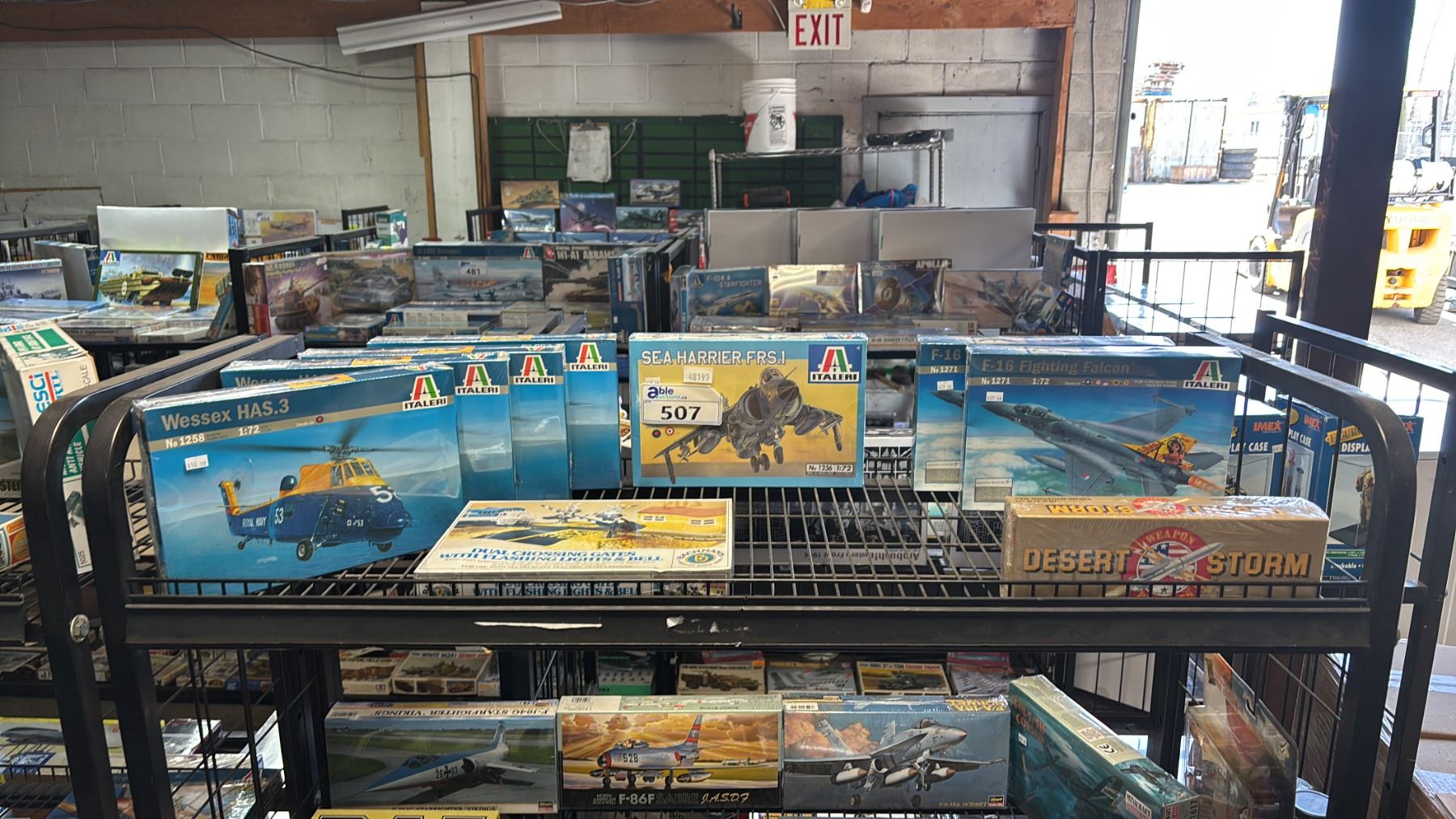 SHELF OF ASSORTED AIRCRAFT MODEL KITS