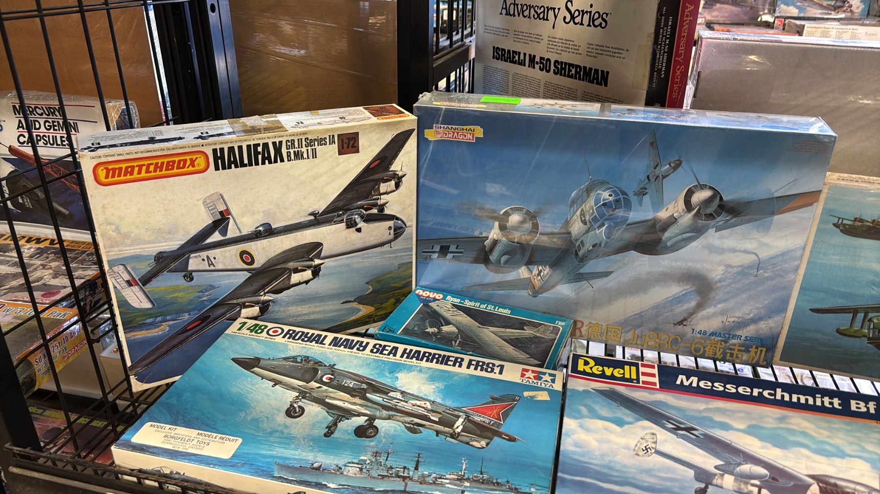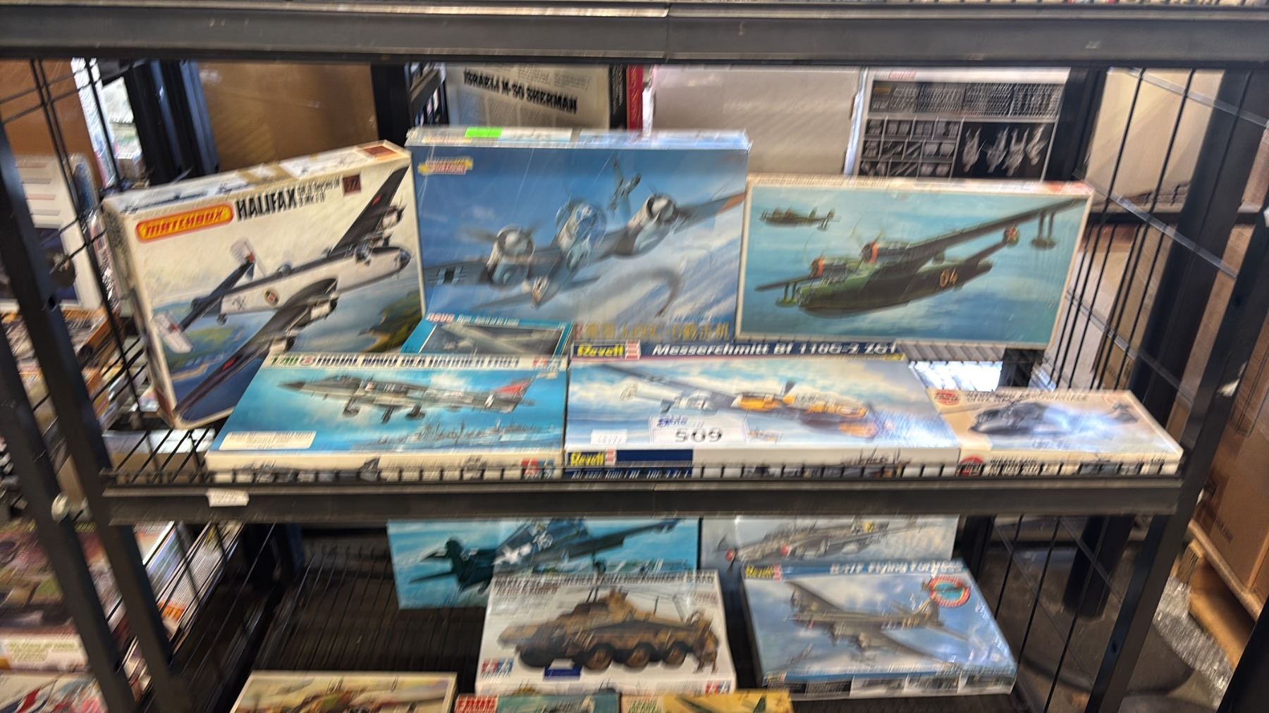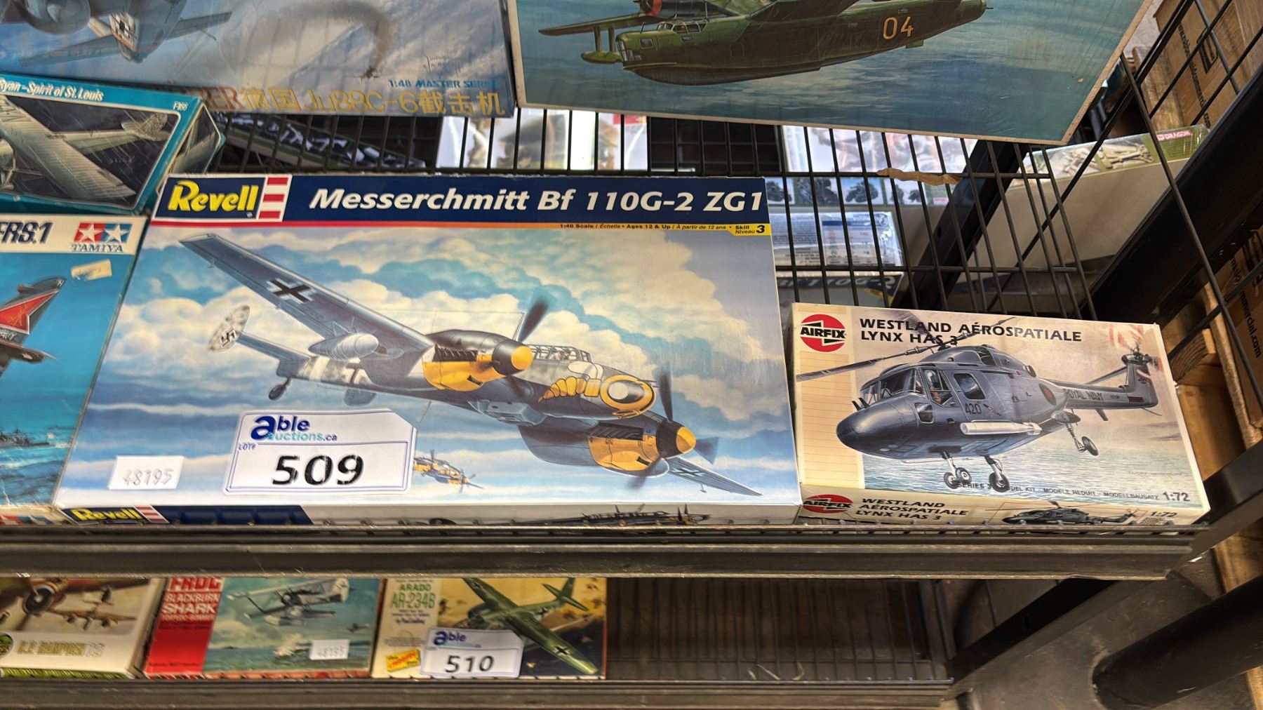 SHELF OF ASSORTED AIRCRAFT MODEL KITS