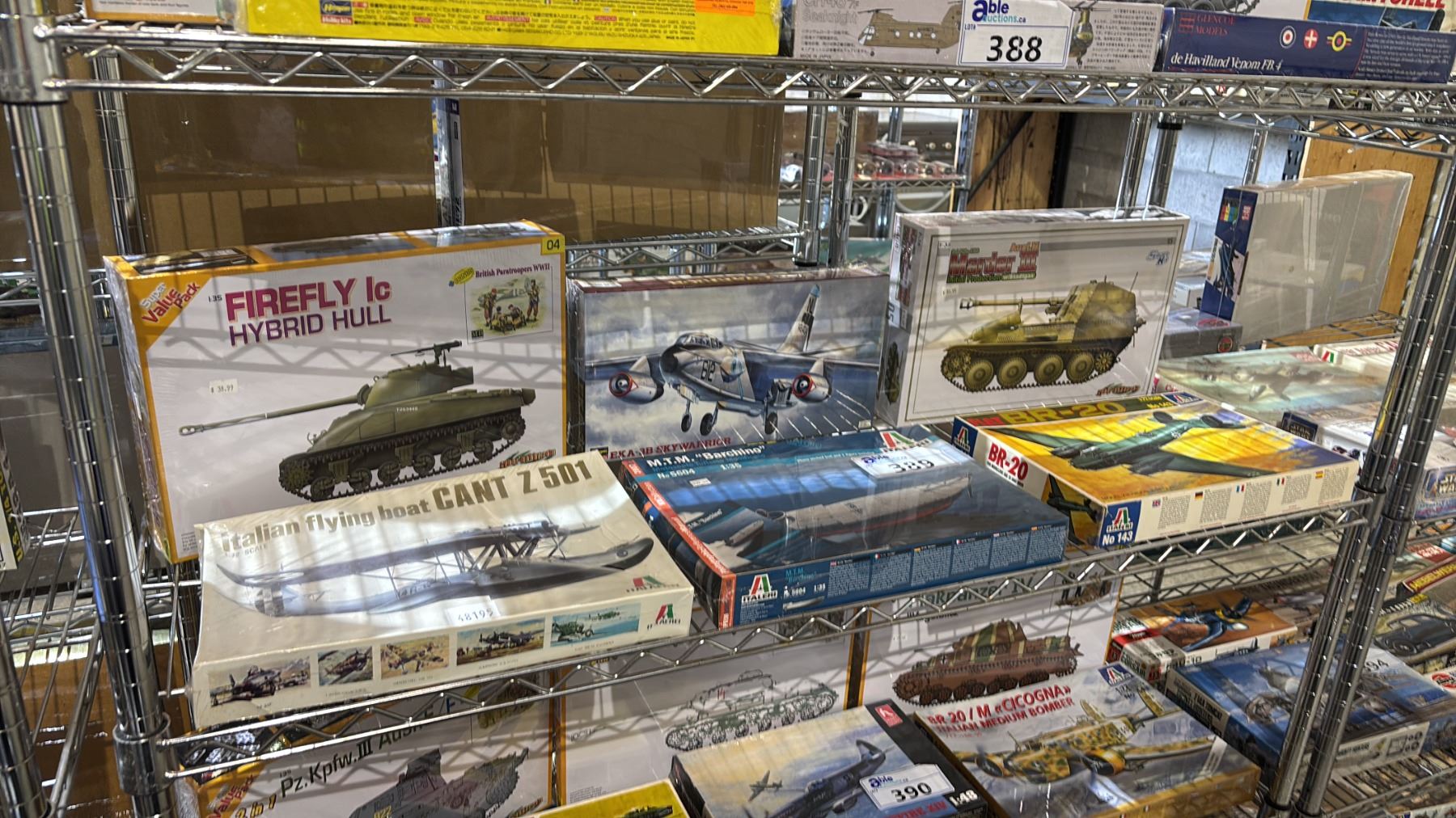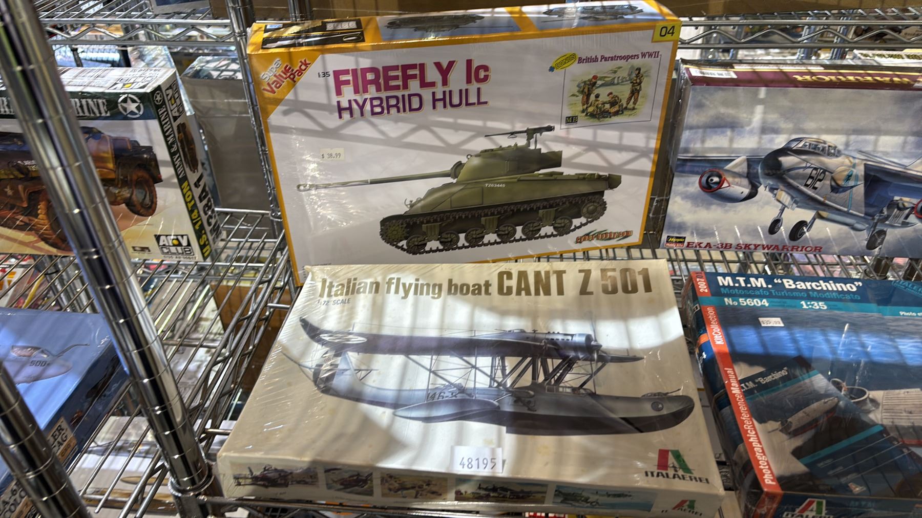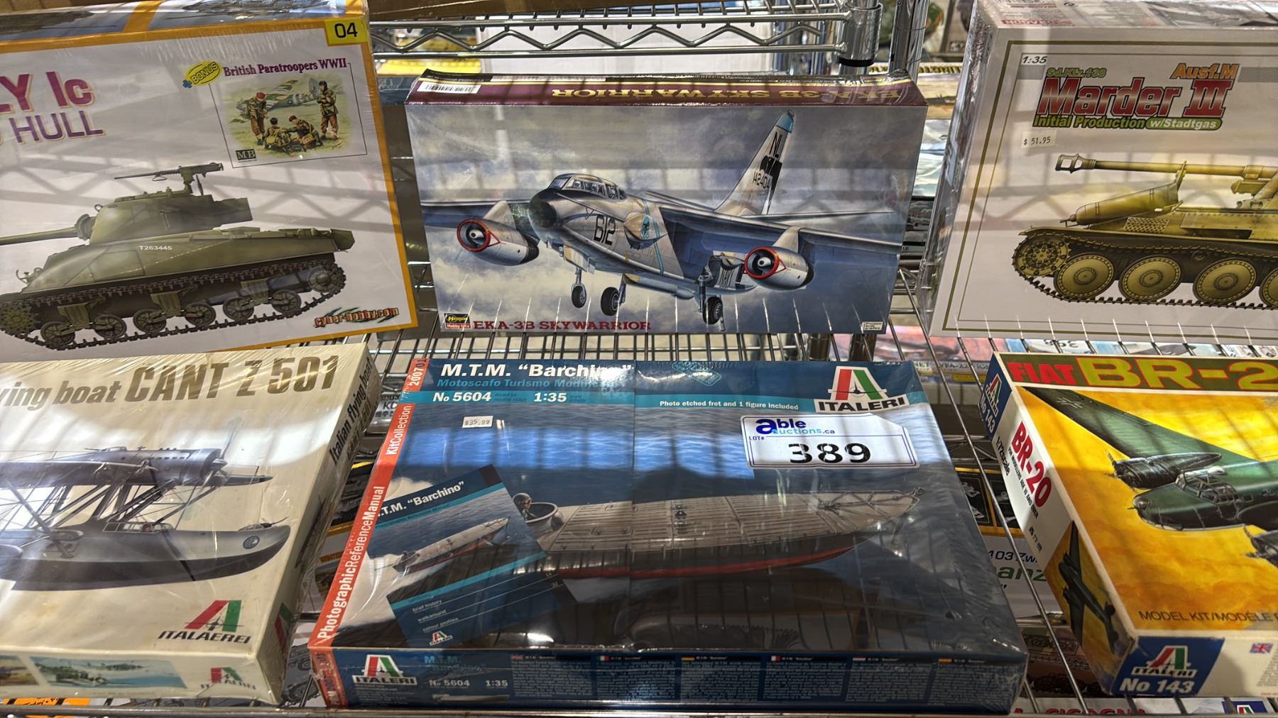 SHELF OF ASSORTED AIRPLANE, BOAT & MILITARY VEHICLE MODEL KITS