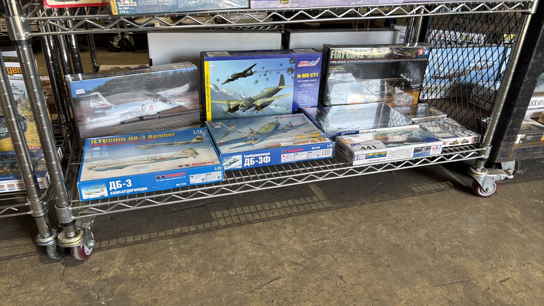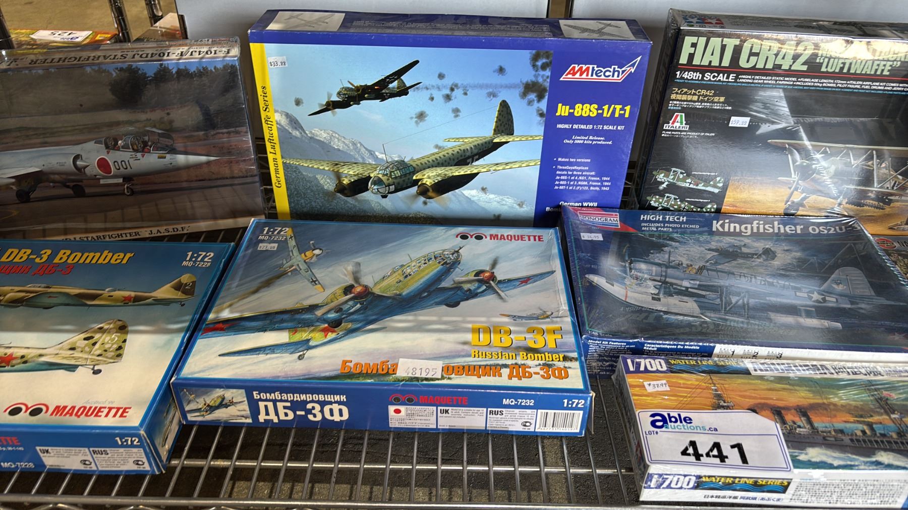 SHELF OF ASSORTED AIRPLANE, BOAT & OTHER MODEL KITS