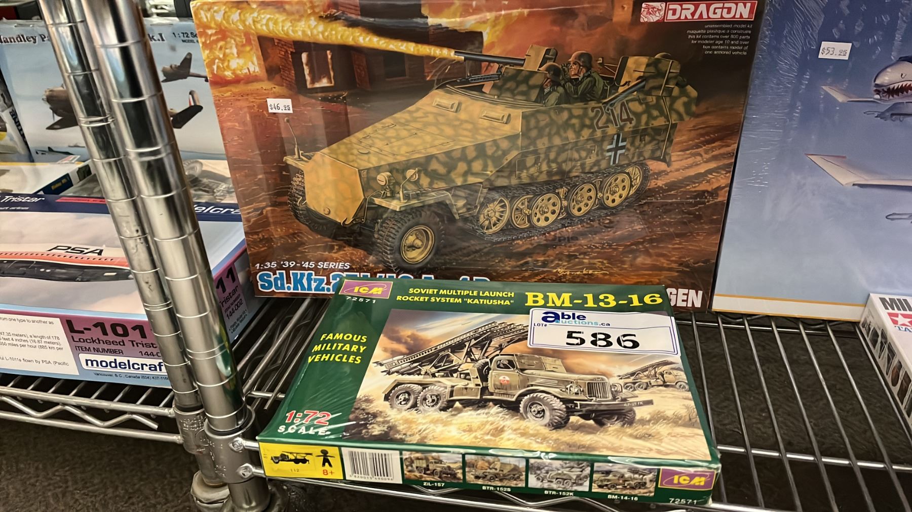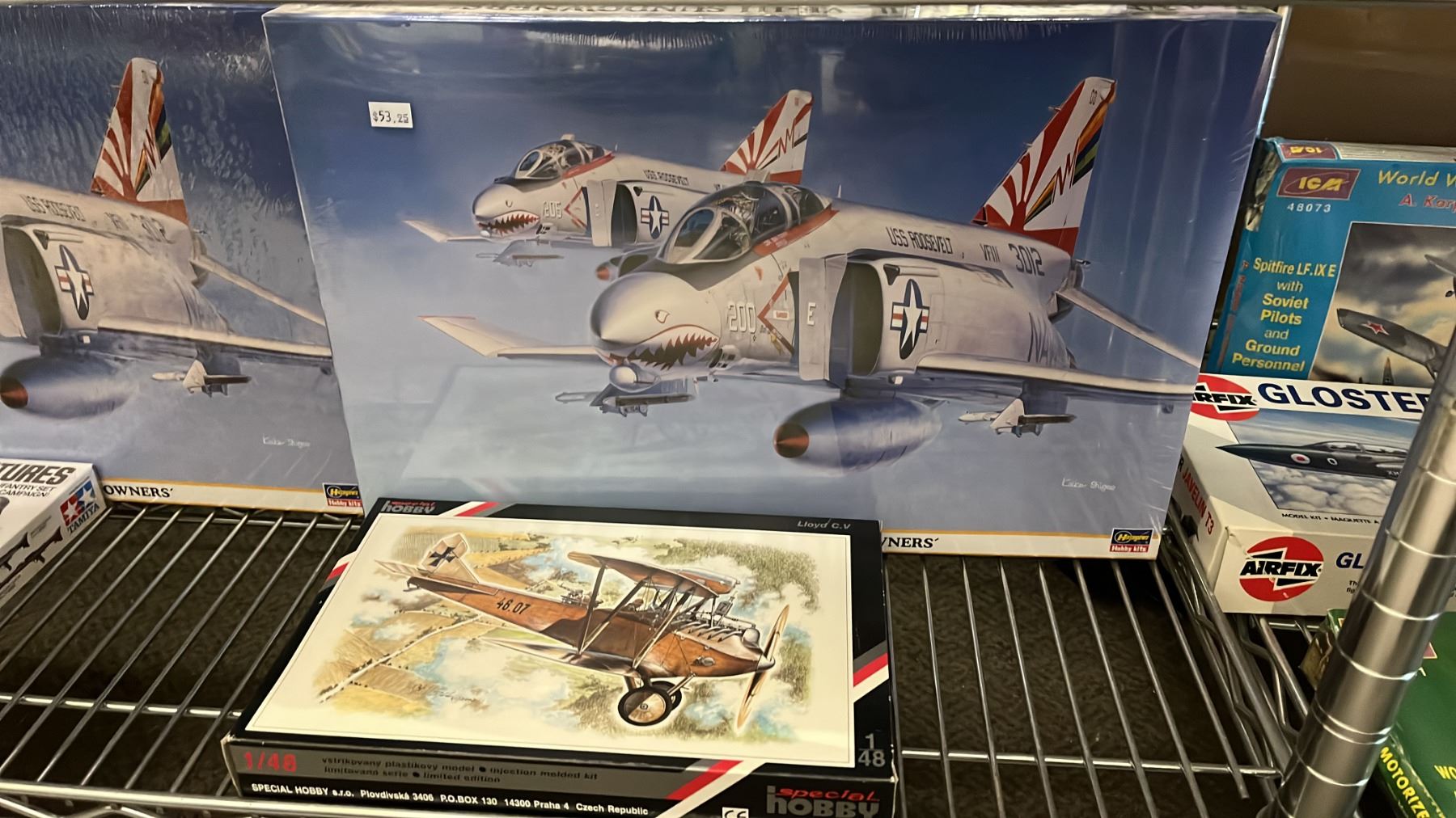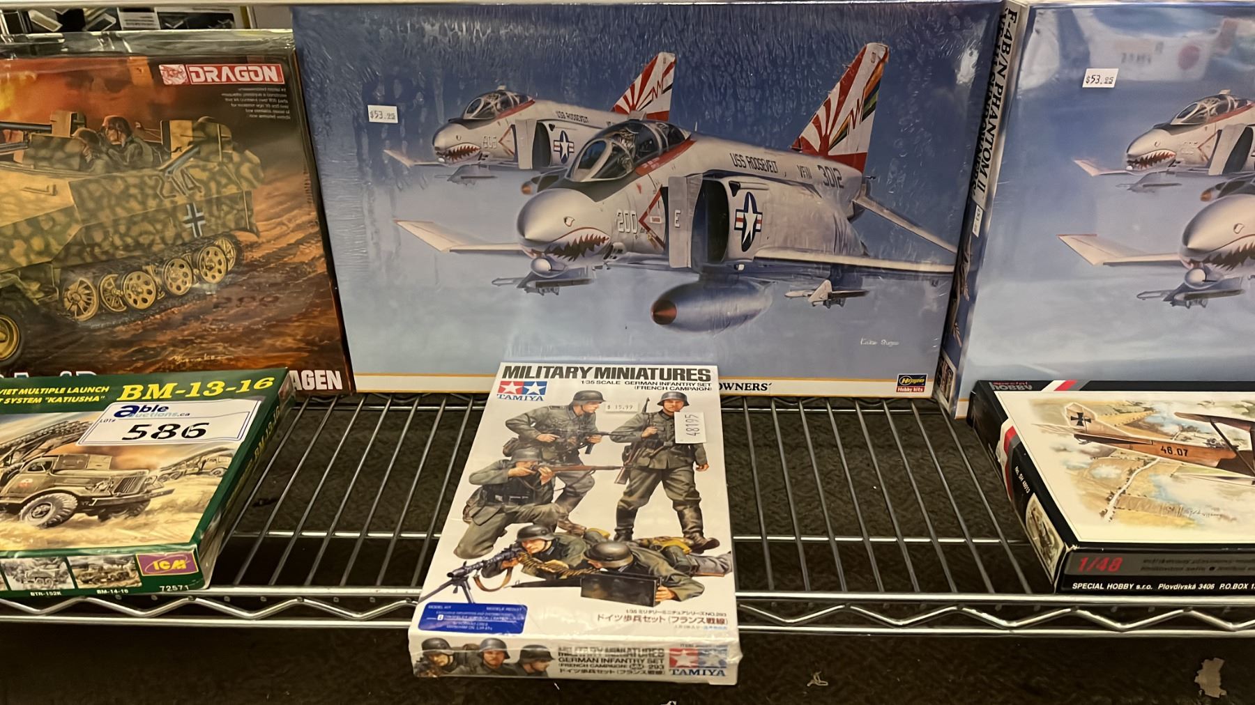 SHELF OF ASSORTED AIRPLANE, MILITARY VEHICLE & MILITARY FIGURE MODEL KITS