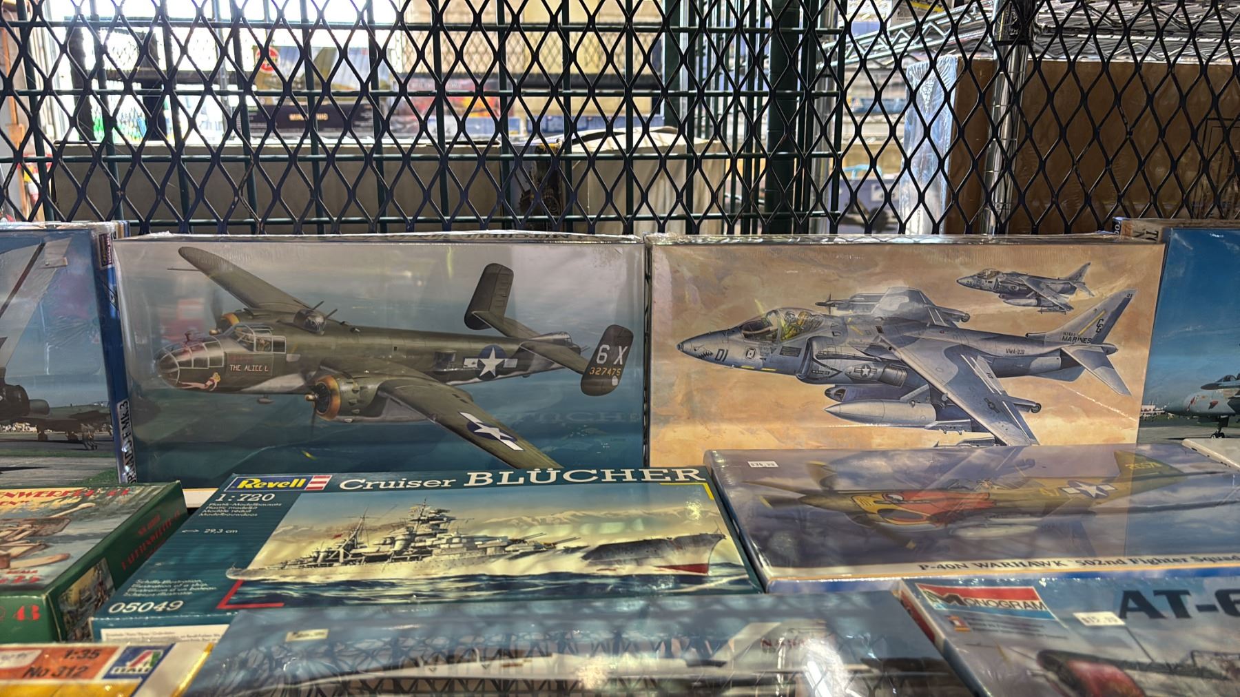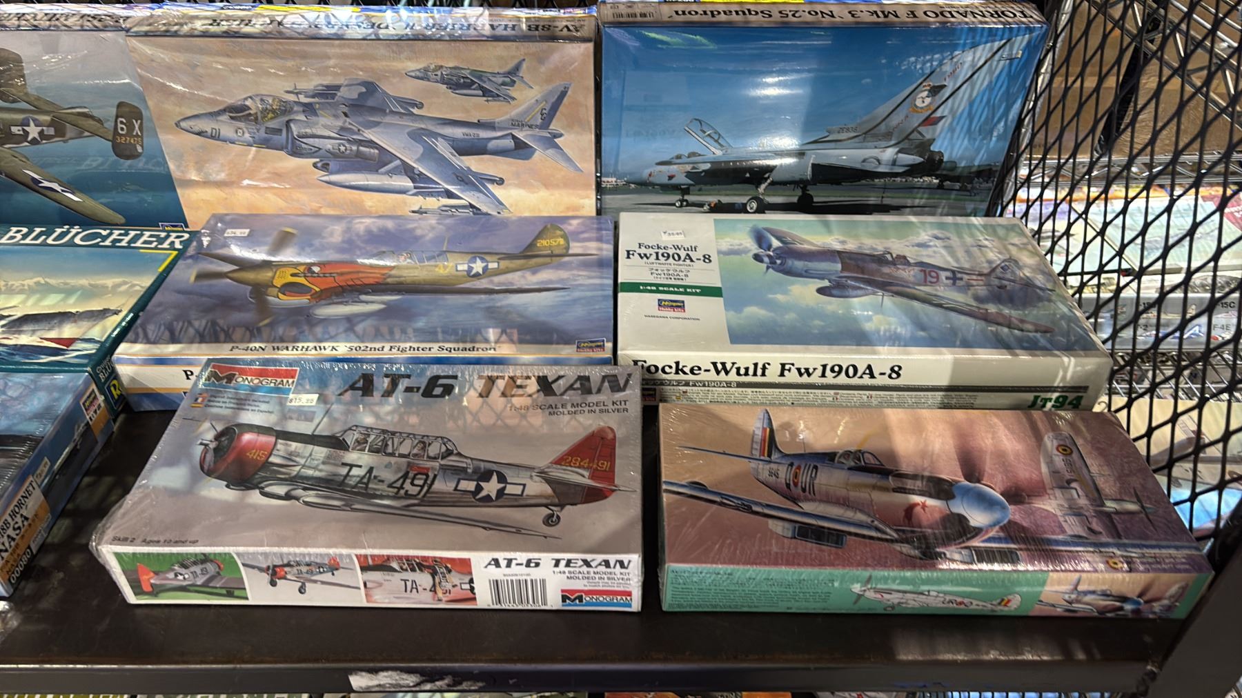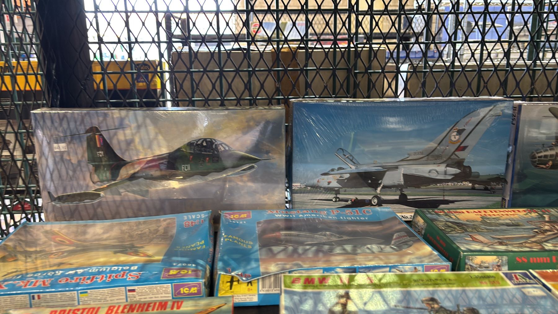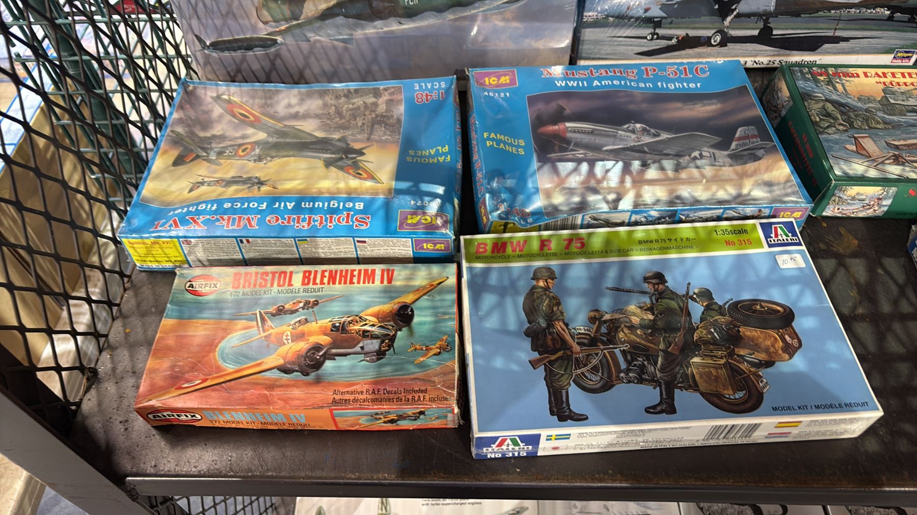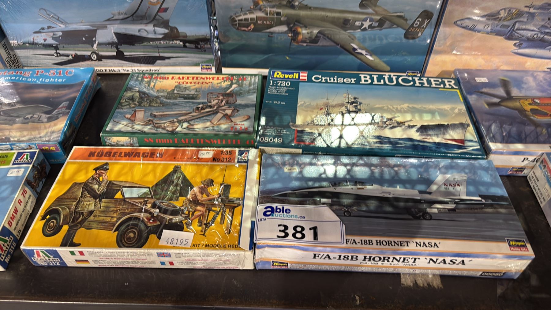 SHELF OF ASSORTED AIRPLANE & MILITARY VEHICLE MODEL KITS