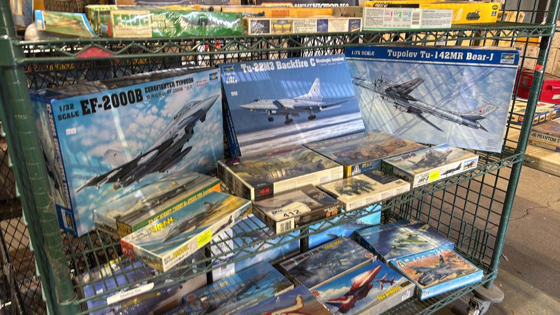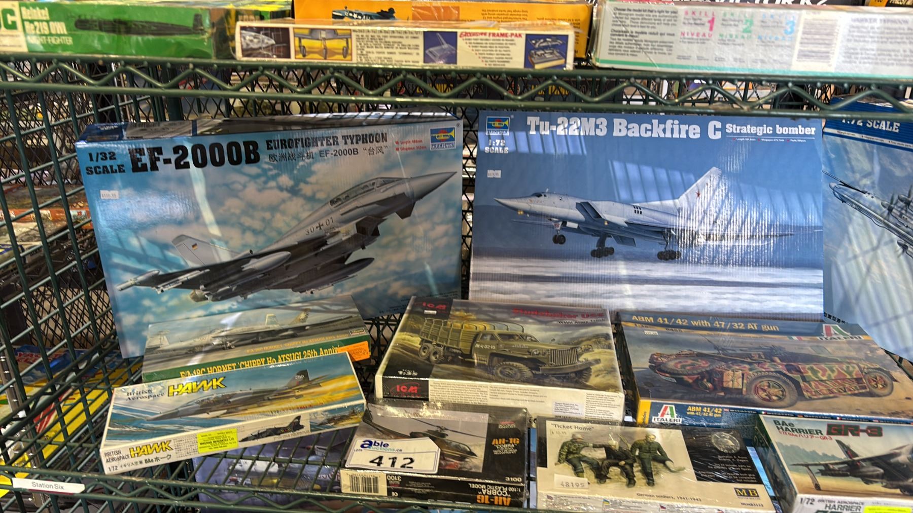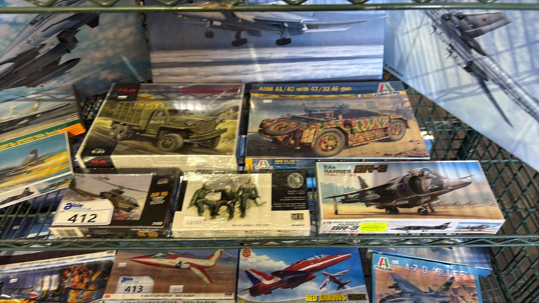 SHELF OF ASSORTED AIRPLANE & MILITARY VEHICLE MODEL KITS