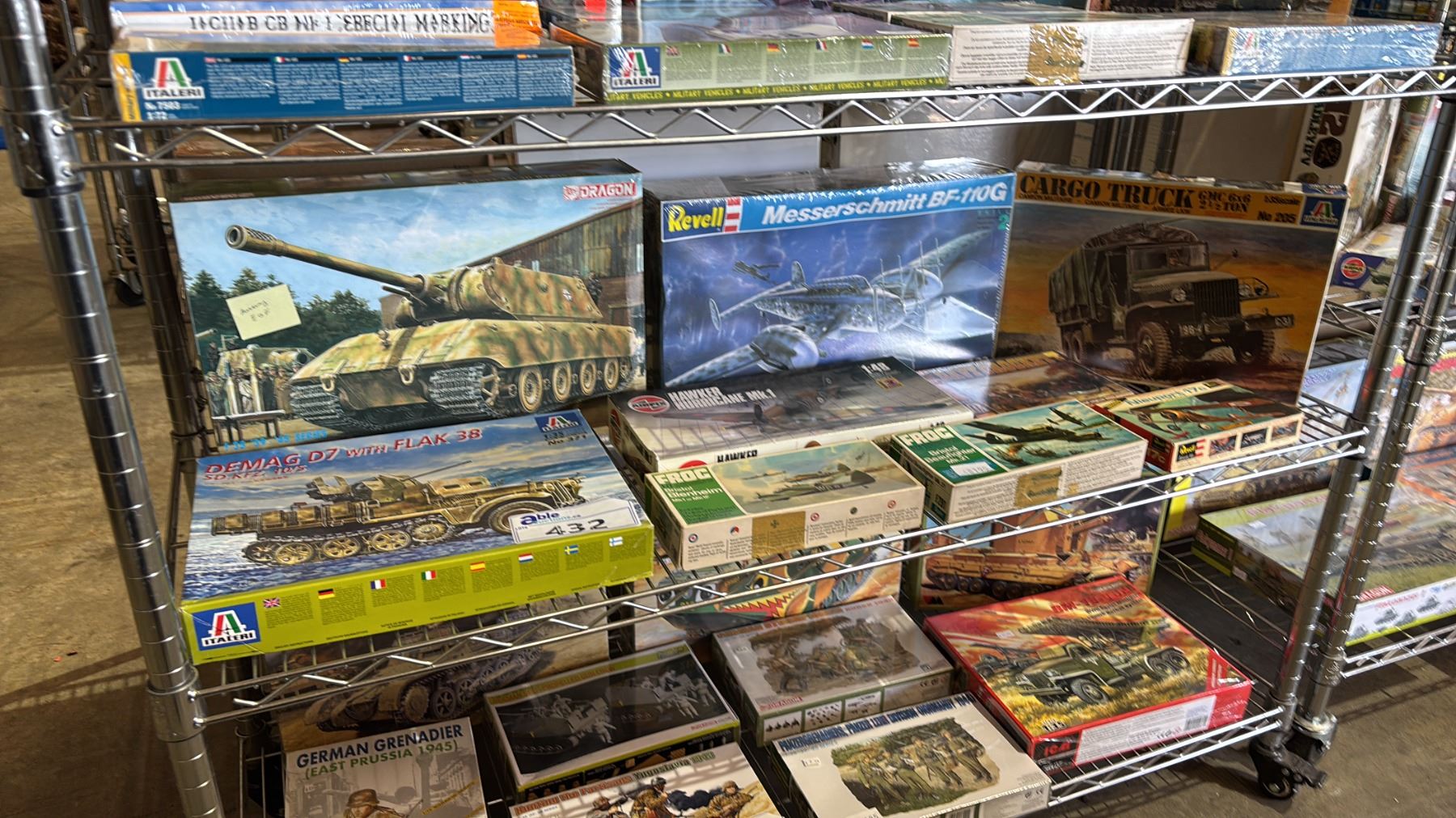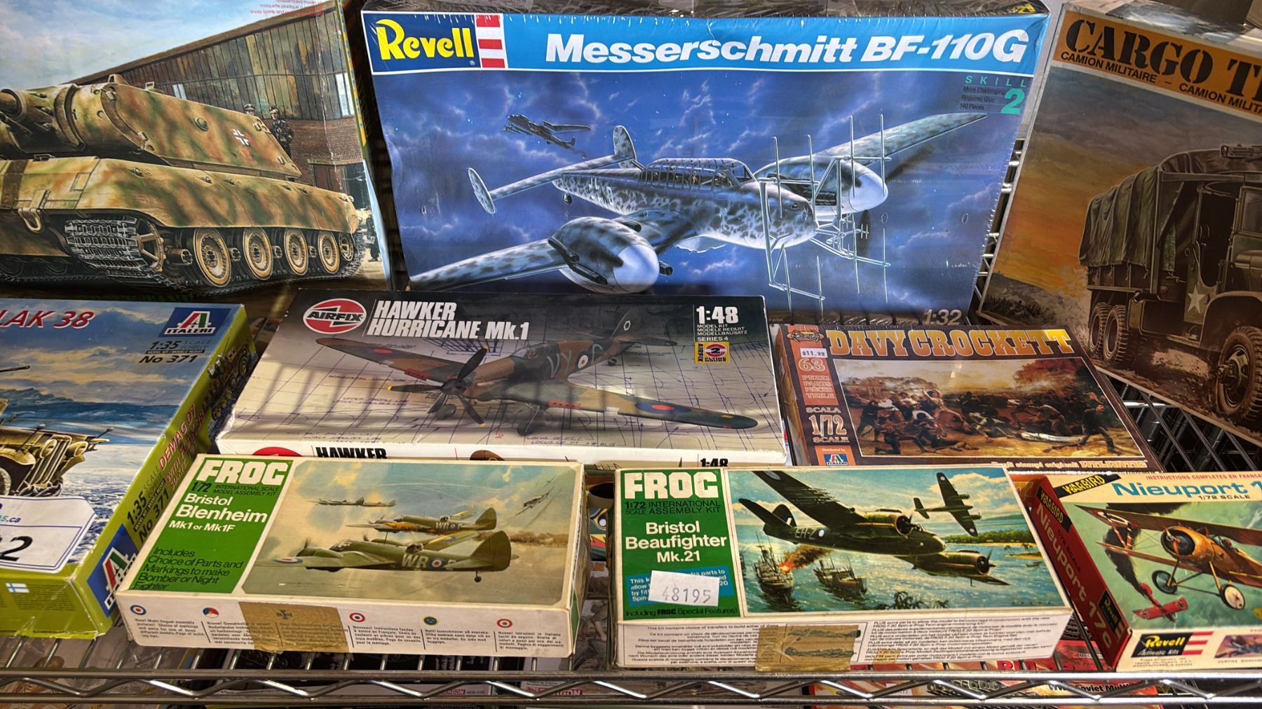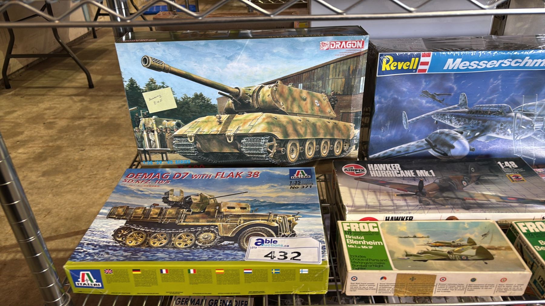 SHELF OF ASSORTED AIRPLANE & MILITARY VEHICLE MODEL KITS