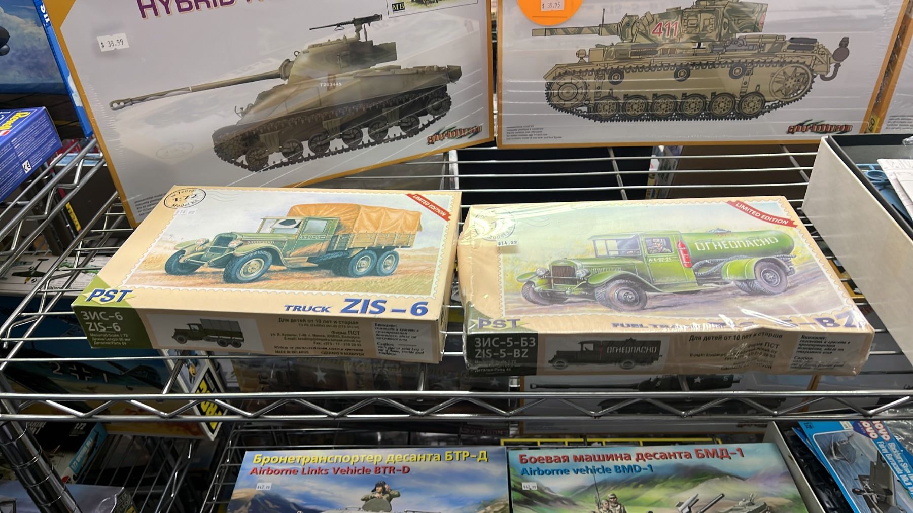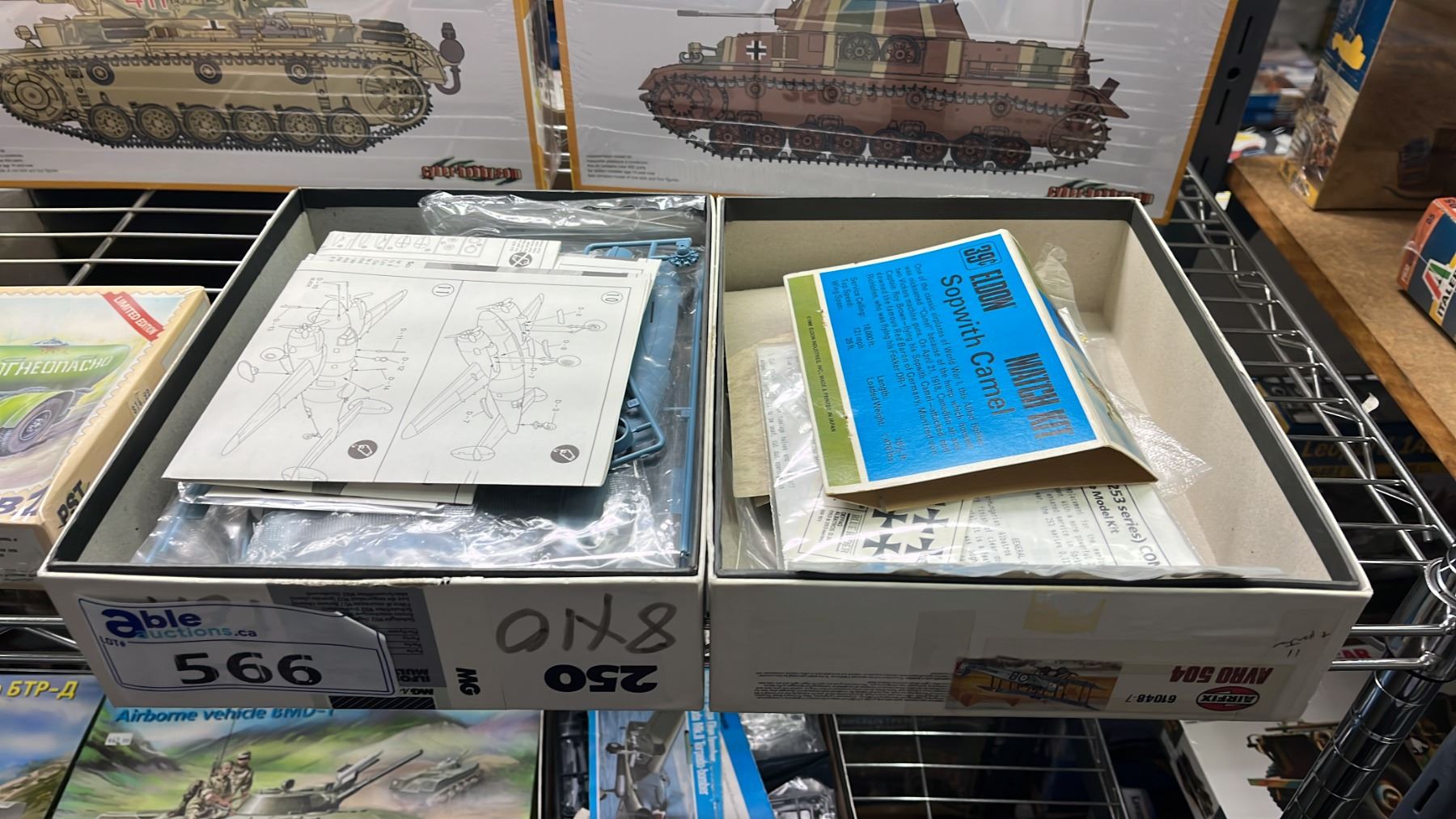 SHELF OF ASSORTED AIRPLANE & MILITARY VEHICLE MODEL KITS