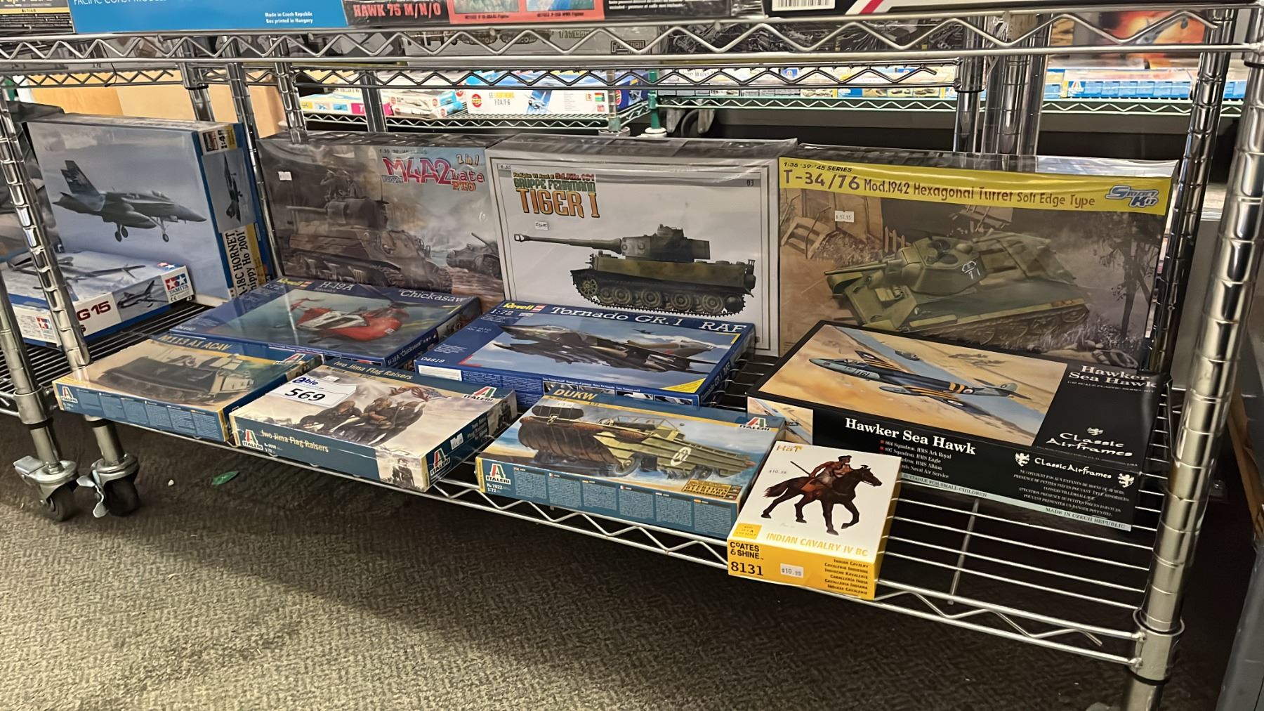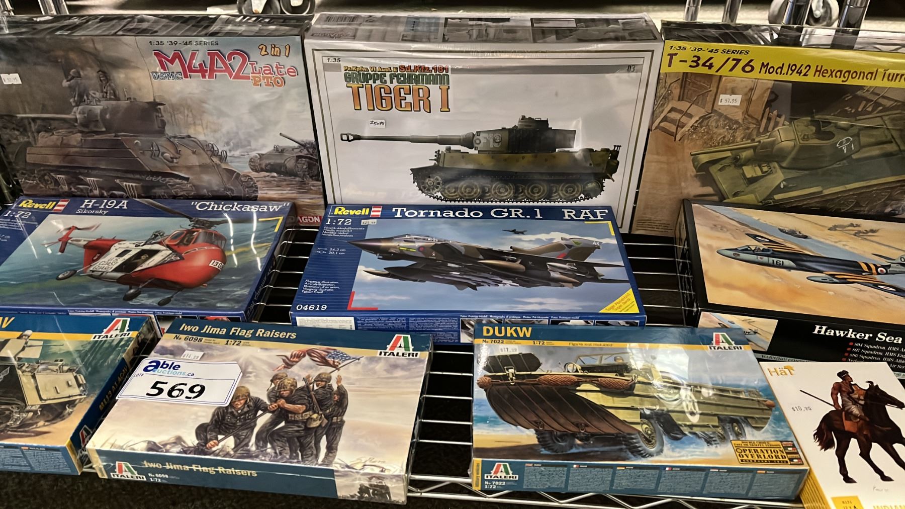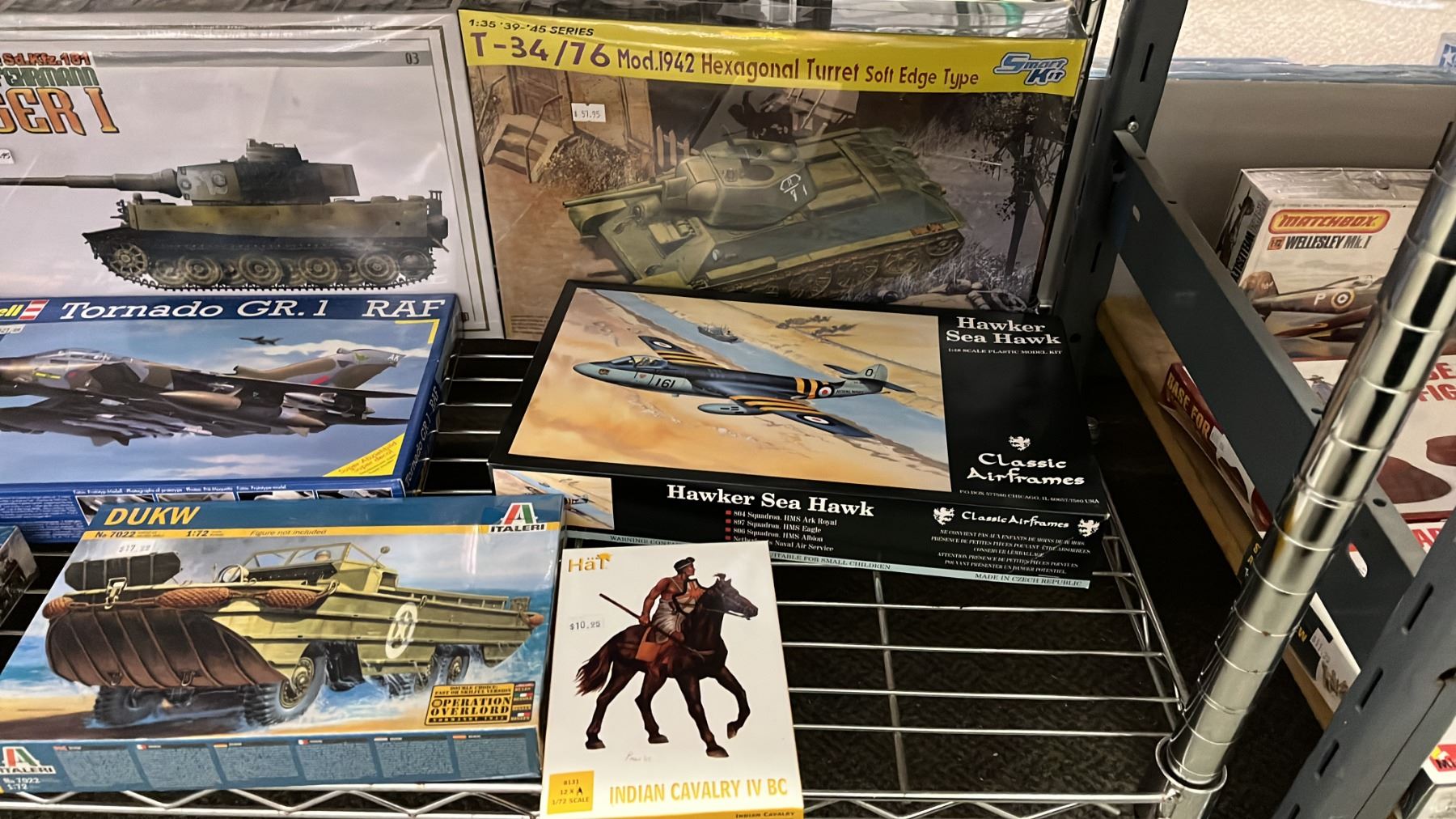 SHELF OF ASSORTED AIRPLANE & MILITARY VEHICLE MODEL KITS