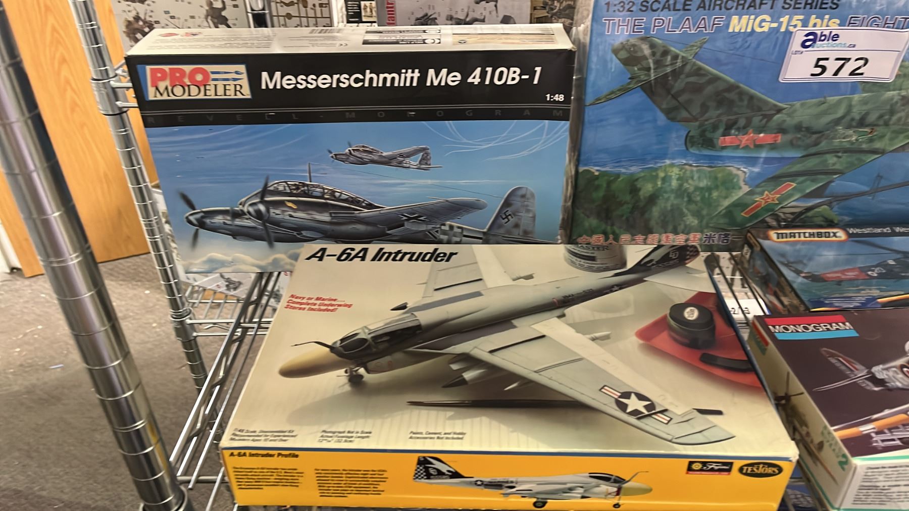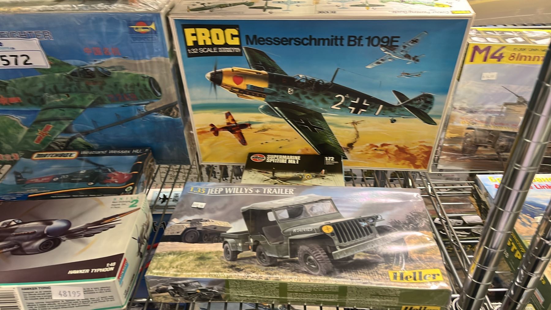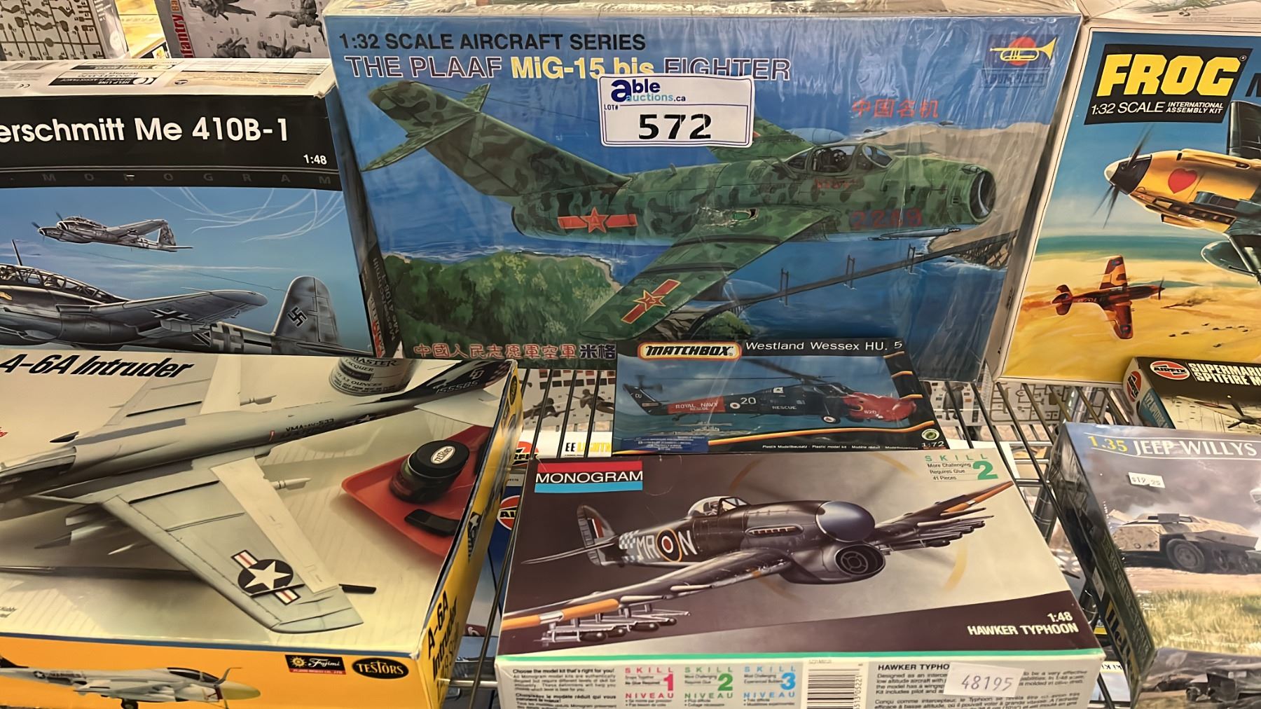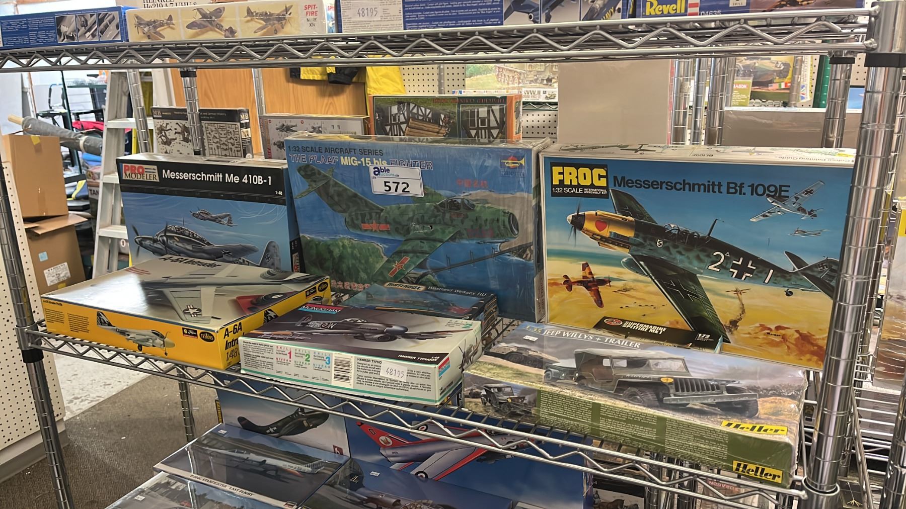 SHELF OF ASSORTED AIRPLANE & MILITARY VEHICLE MODEL KITS