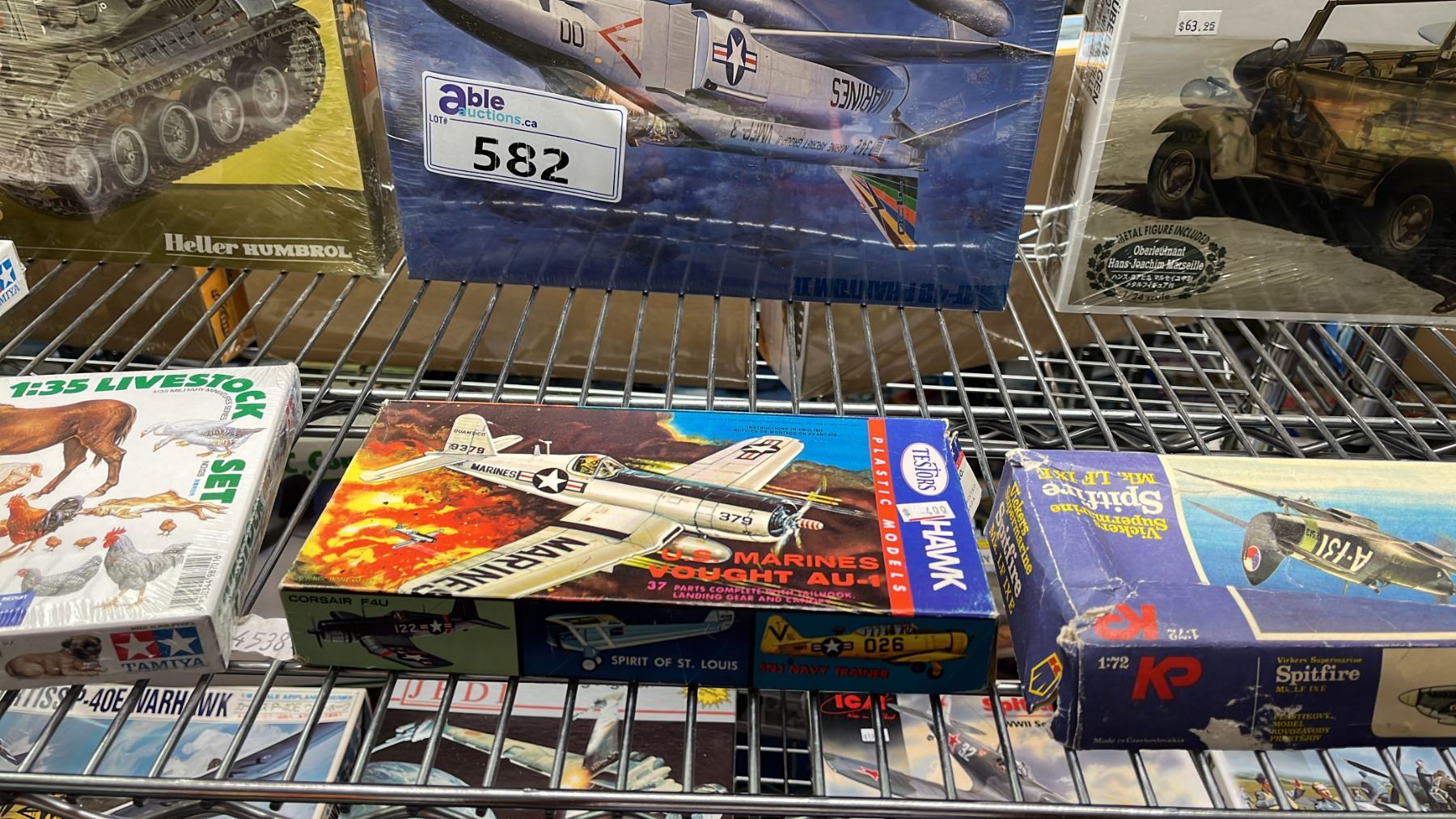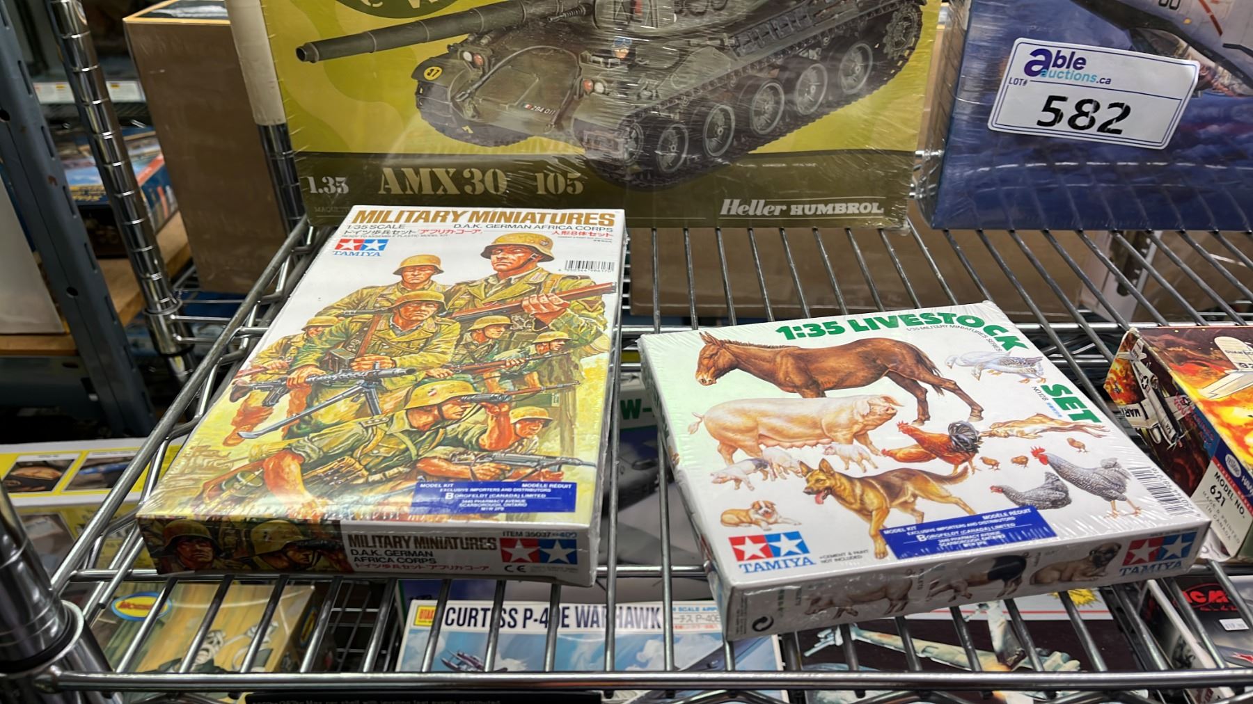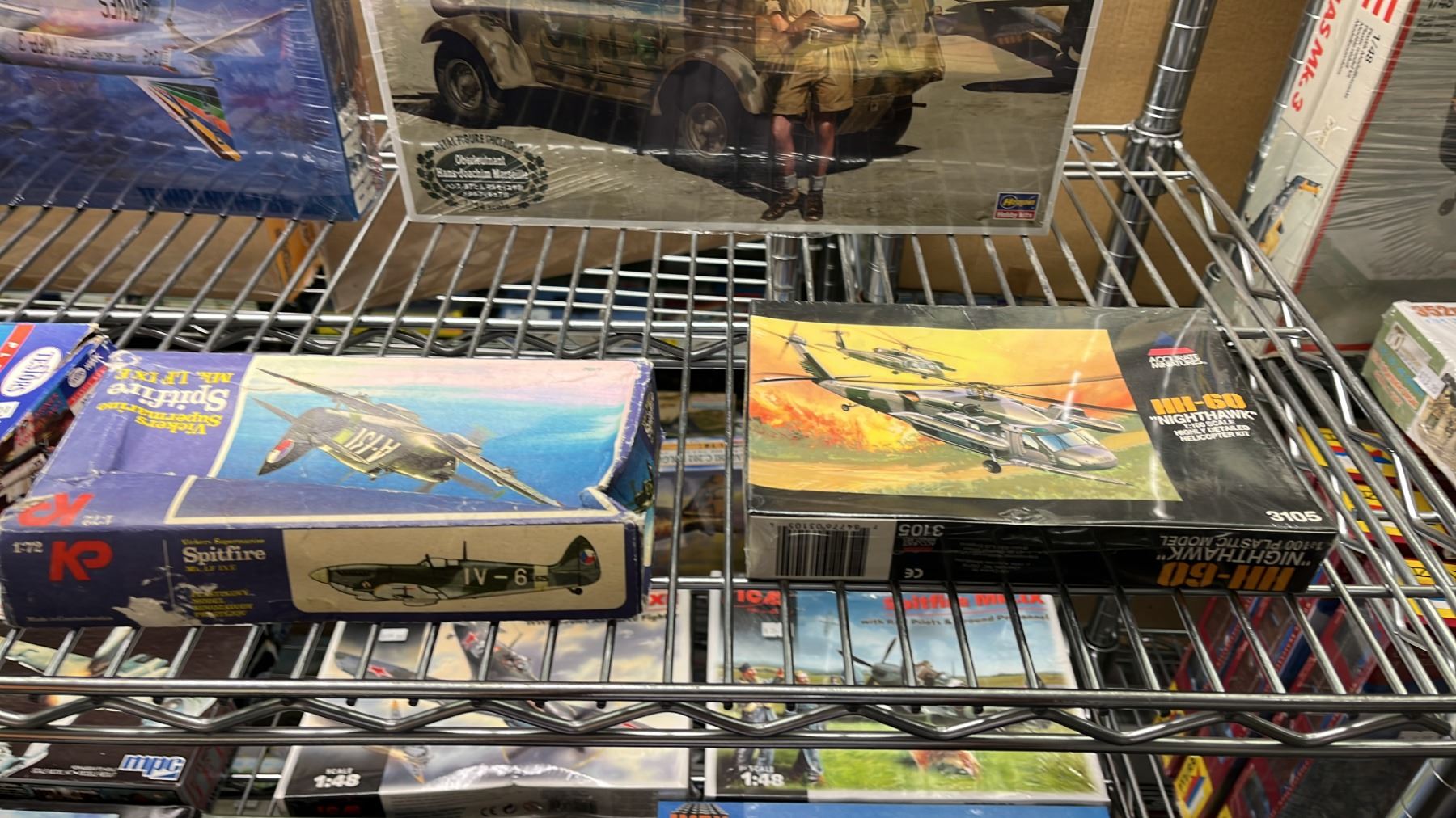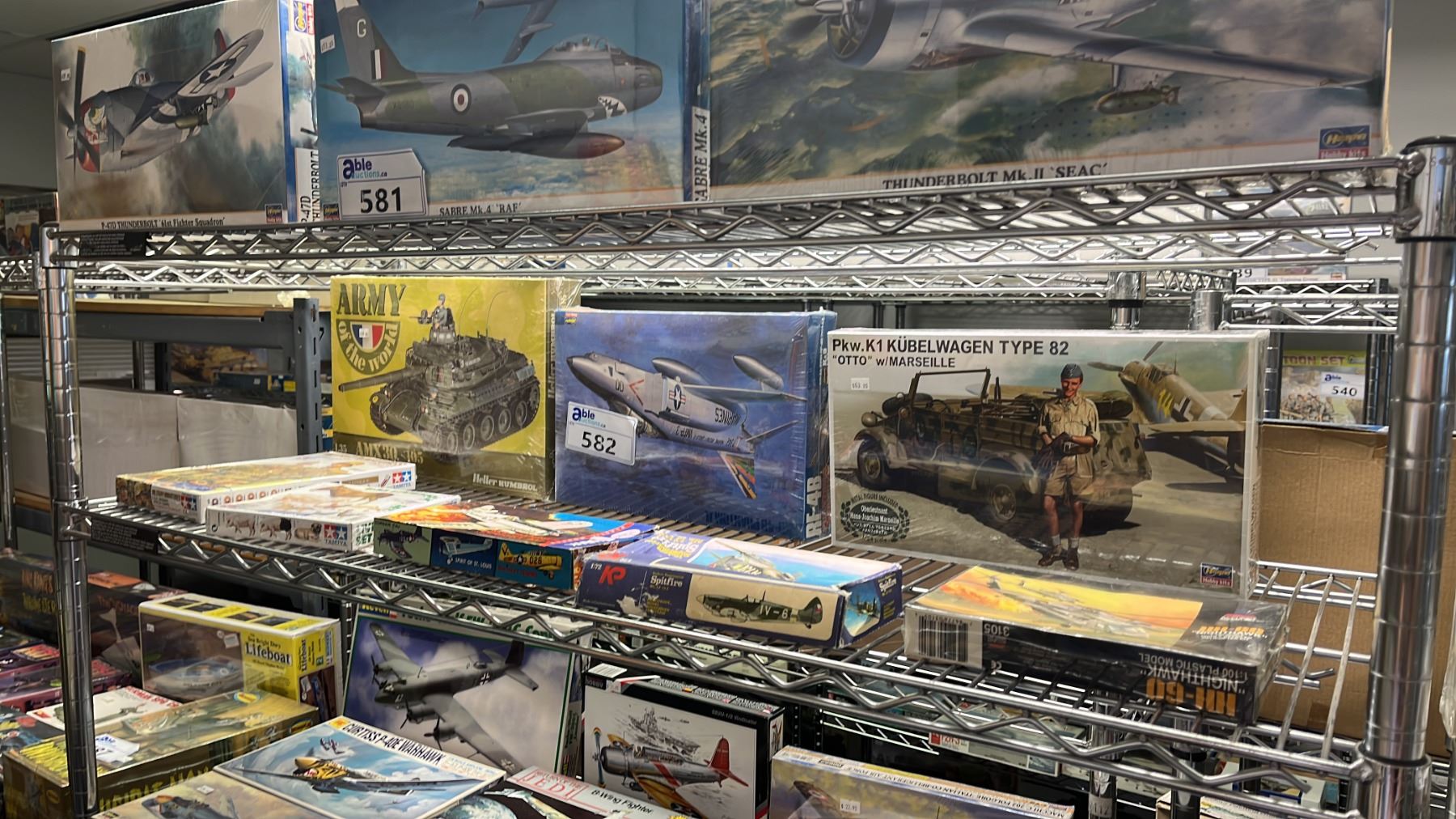 SHELF OF ASSORTED AIRPLANE & MILITARY VEHICLE MODEL KITS