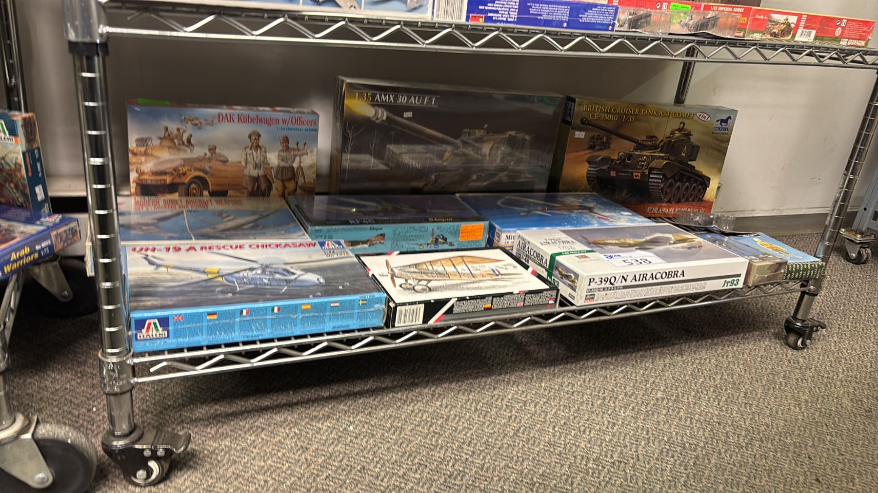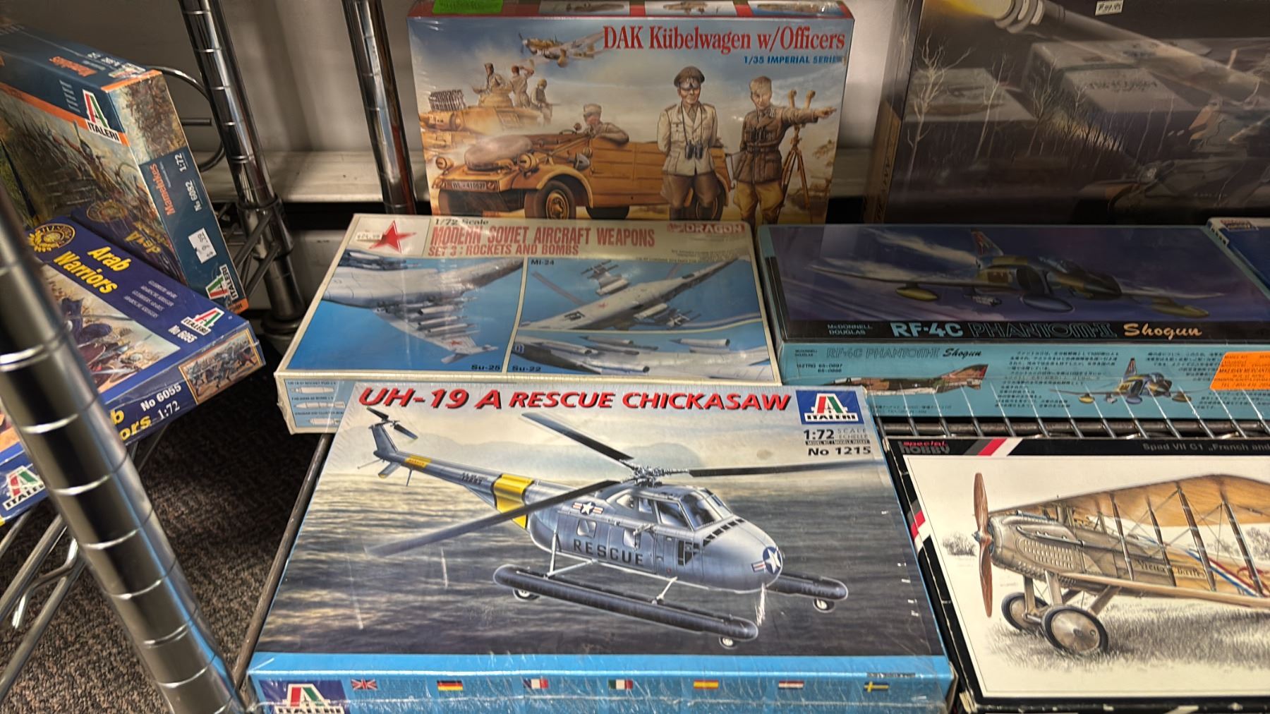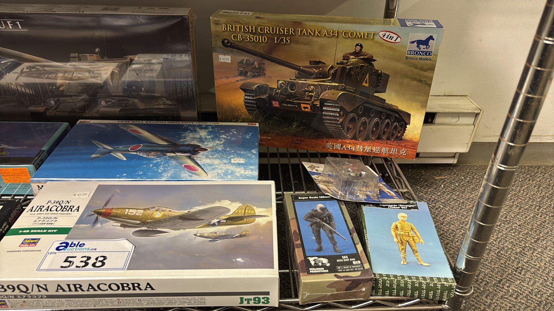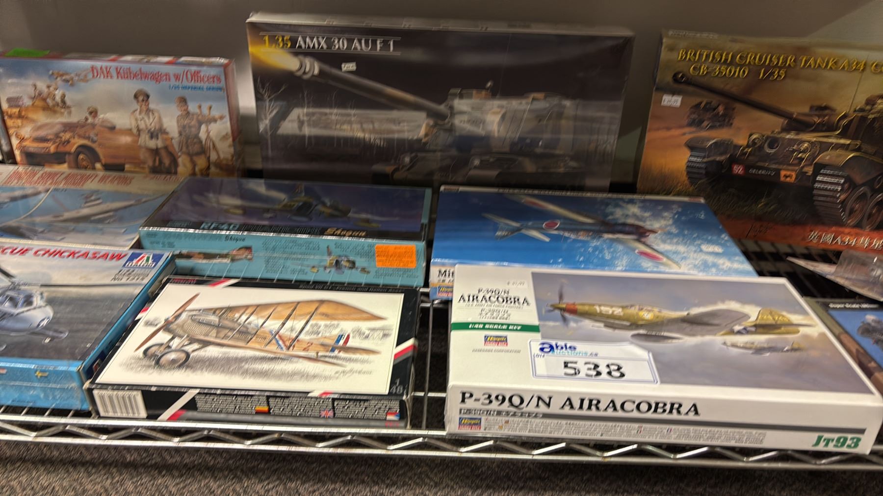 SHELF OF ASSORTED AIRPLANE MODEL KITS & ASSORTED FIGURE MODELS