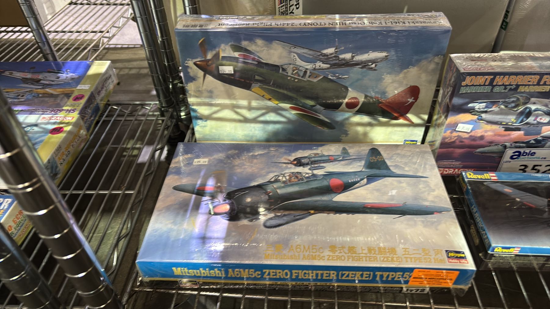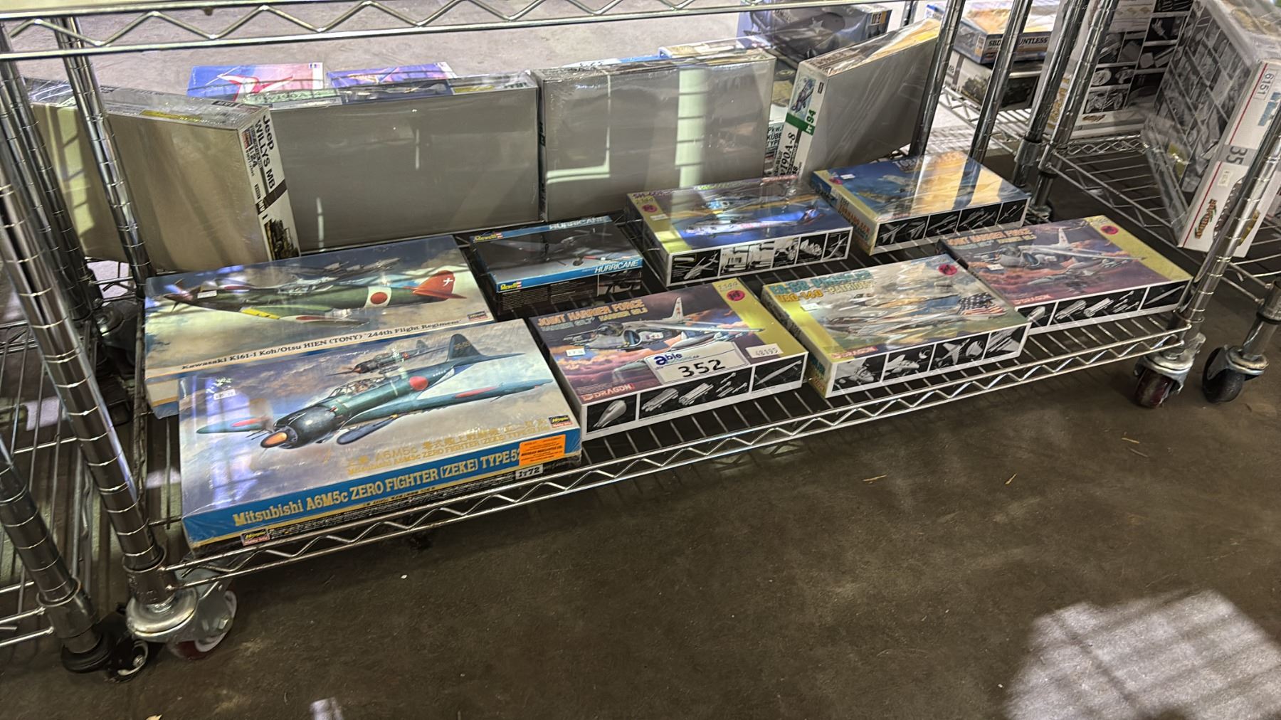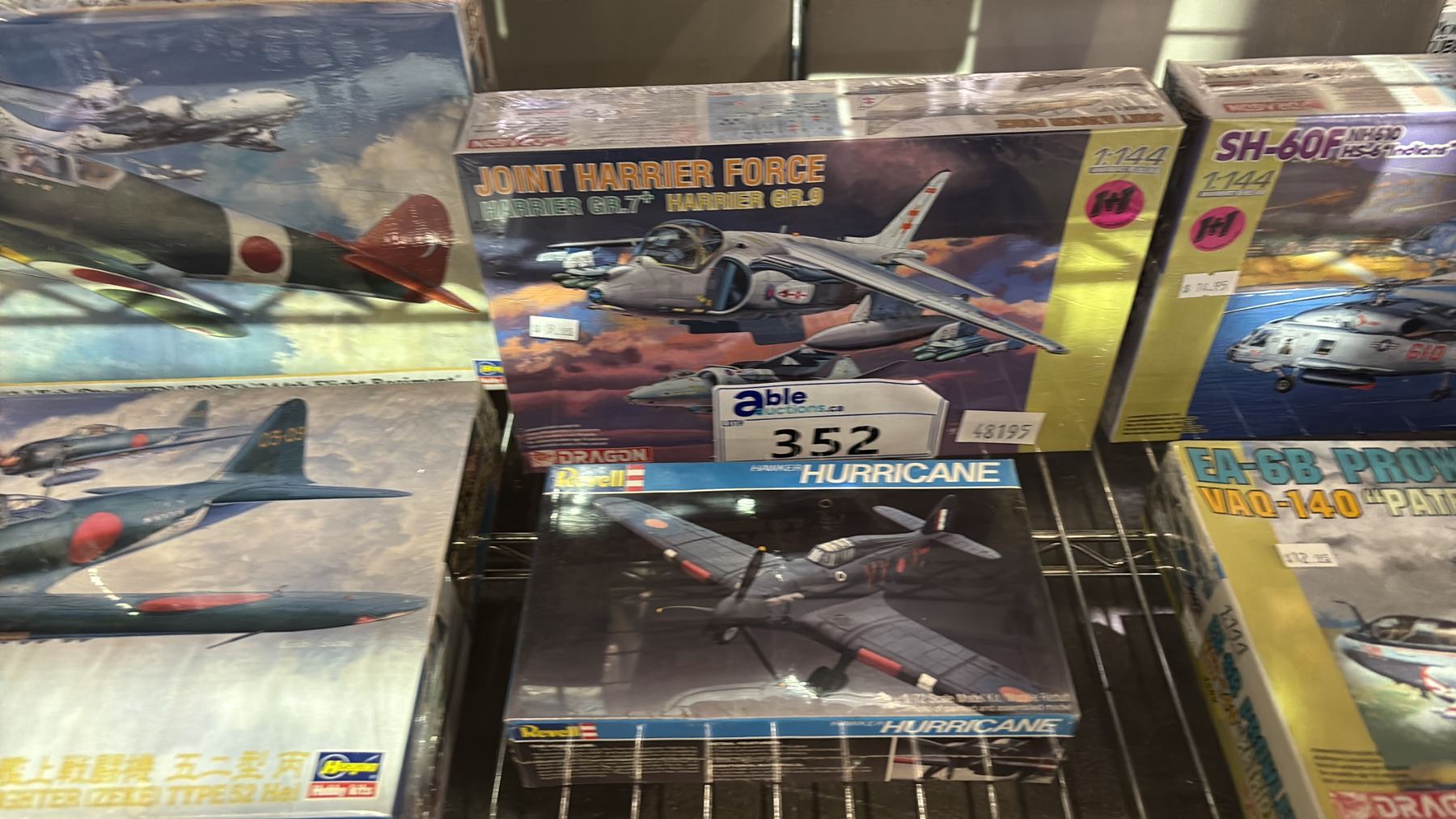SHELF OF ASSORTED AIRPLANE MODEL KITS: DRAGON, REVELL & HASEGAWA