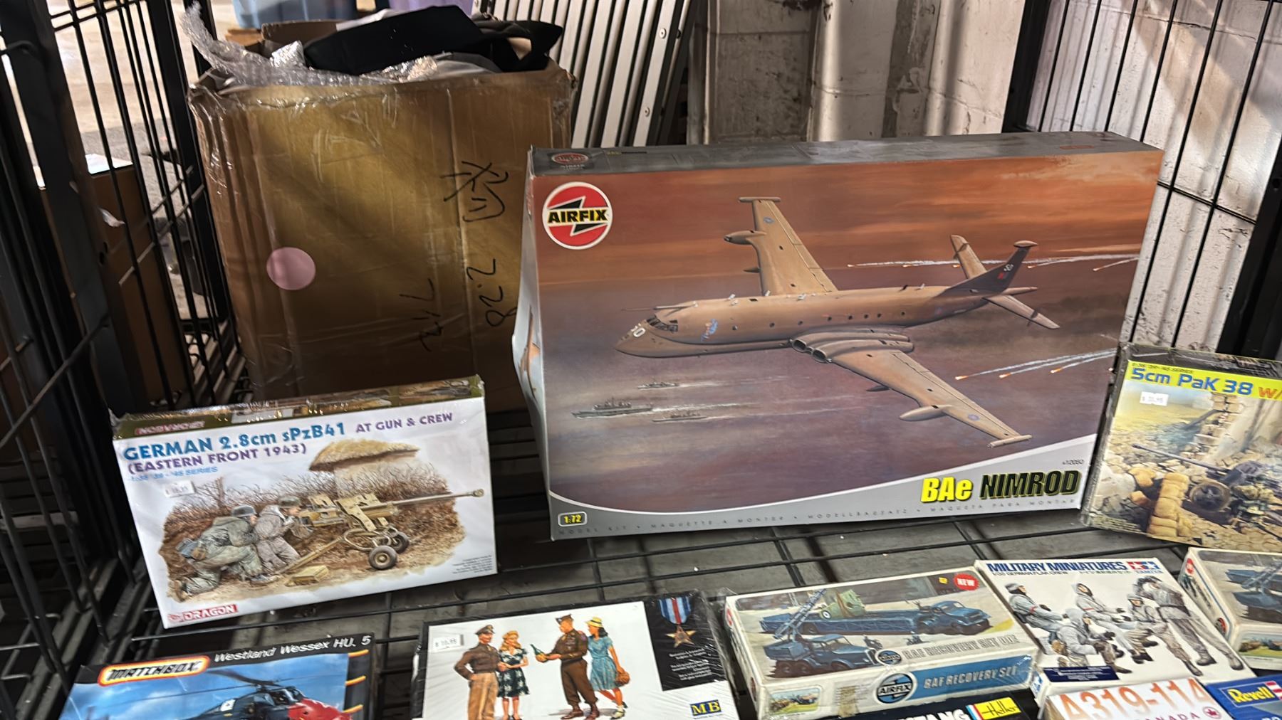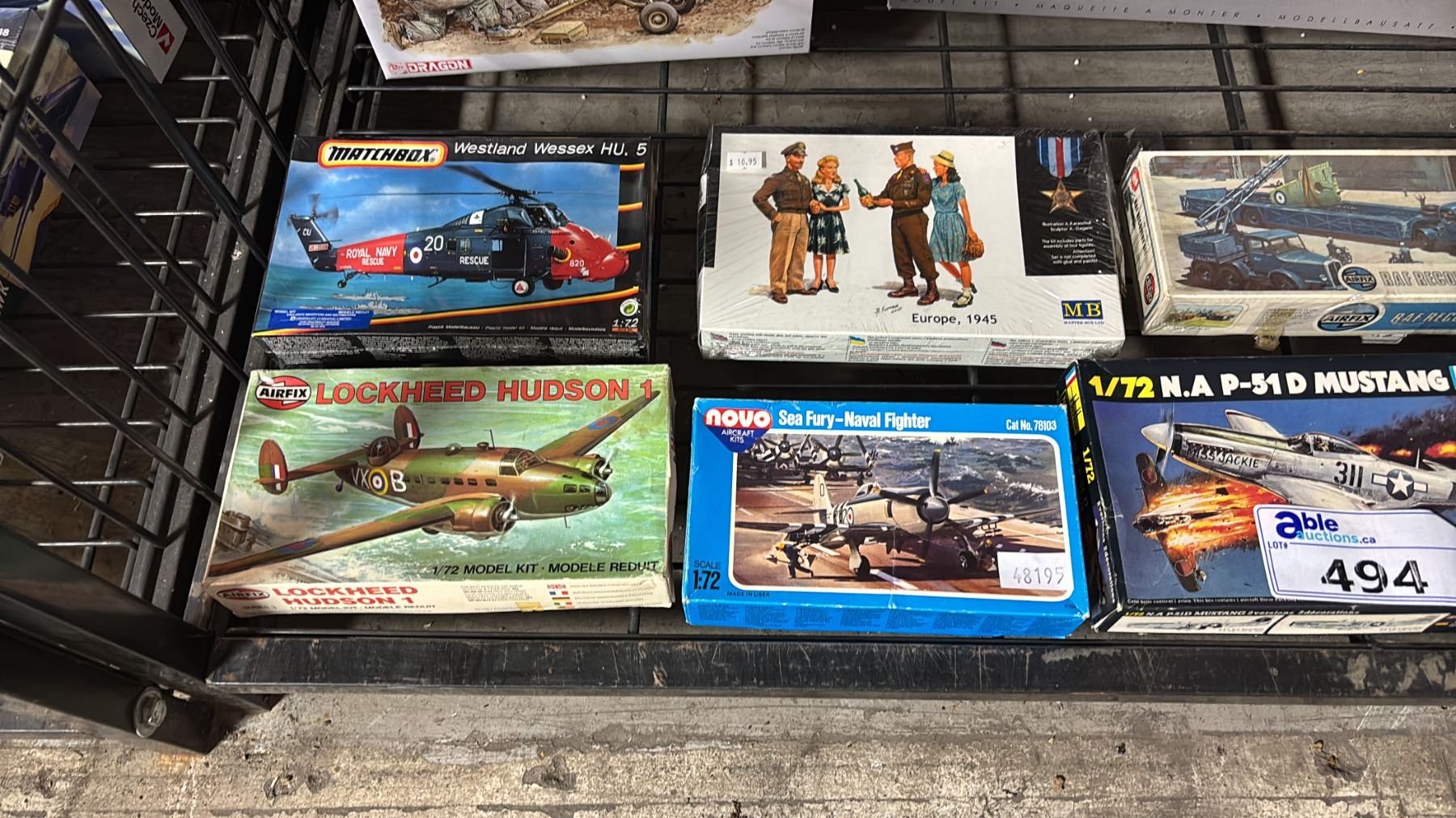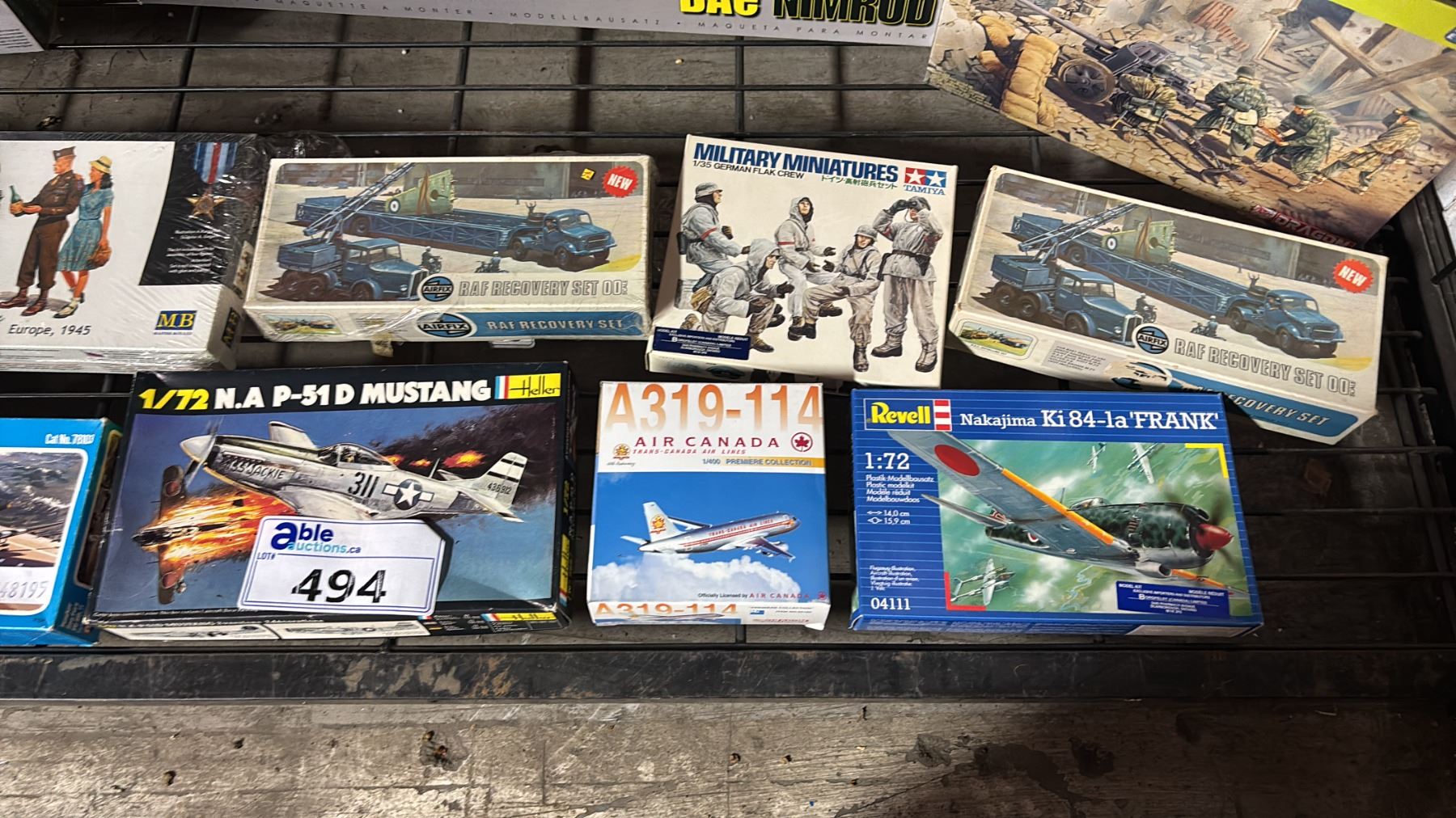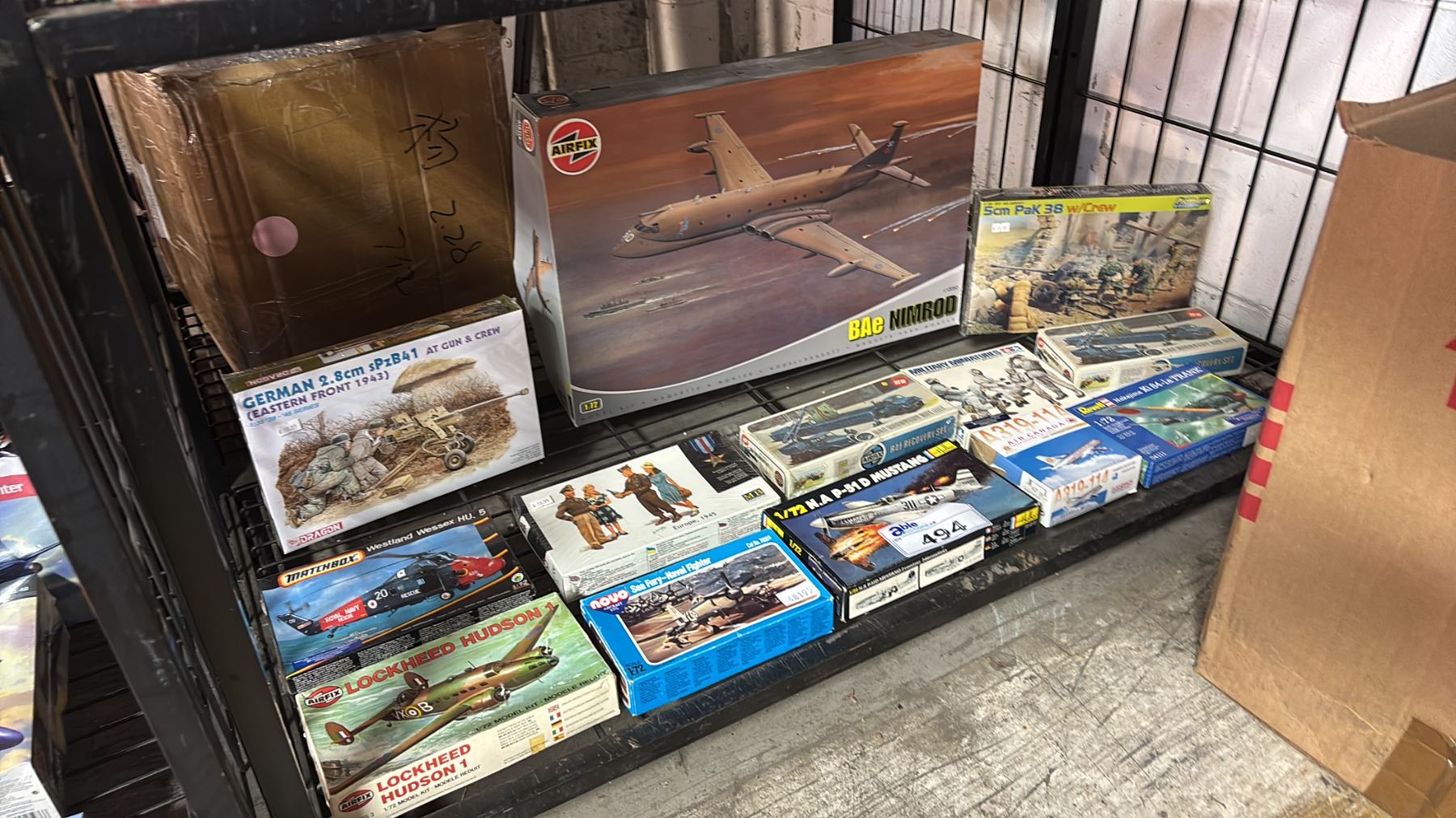 SHELF OF ASSORTED AIRPLANE MODEL KITS & FIGURE SETS