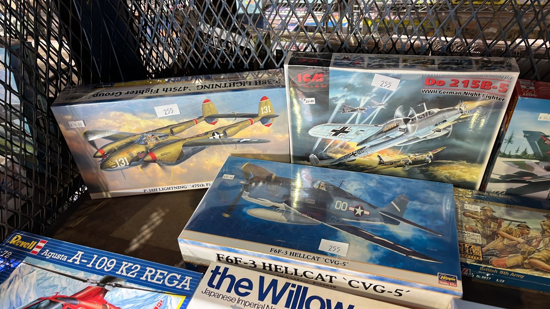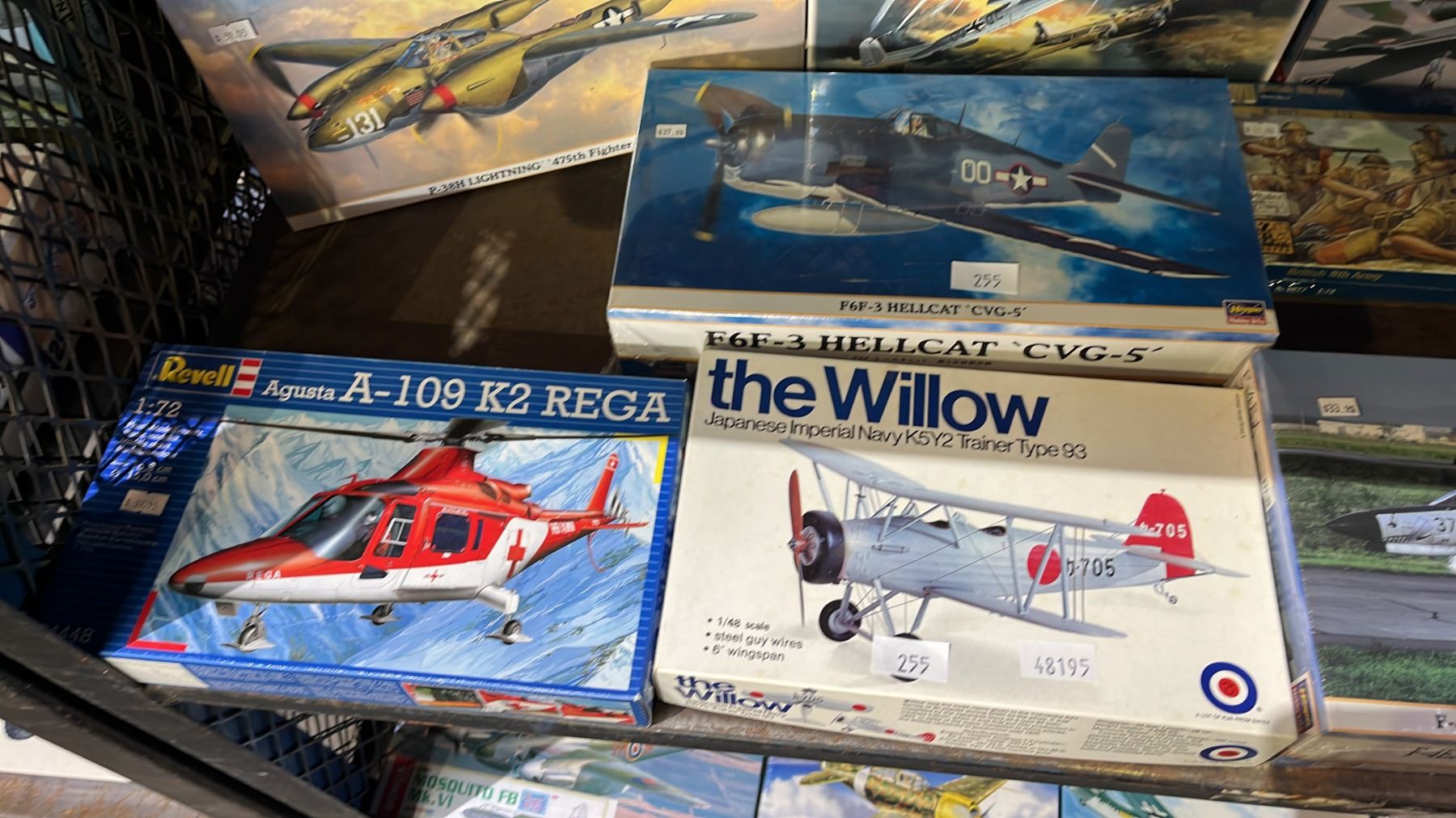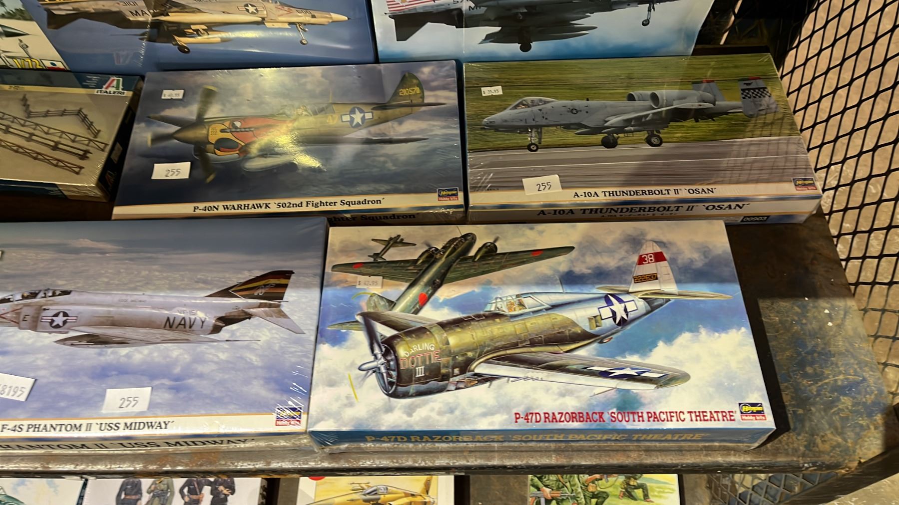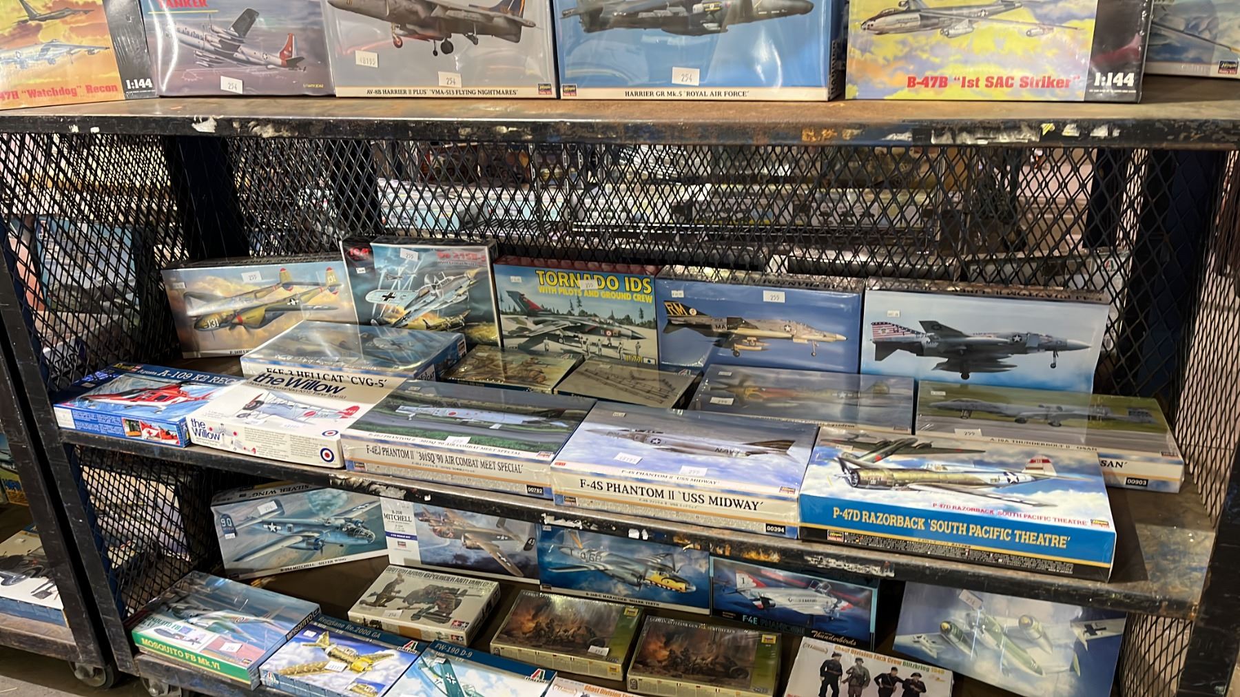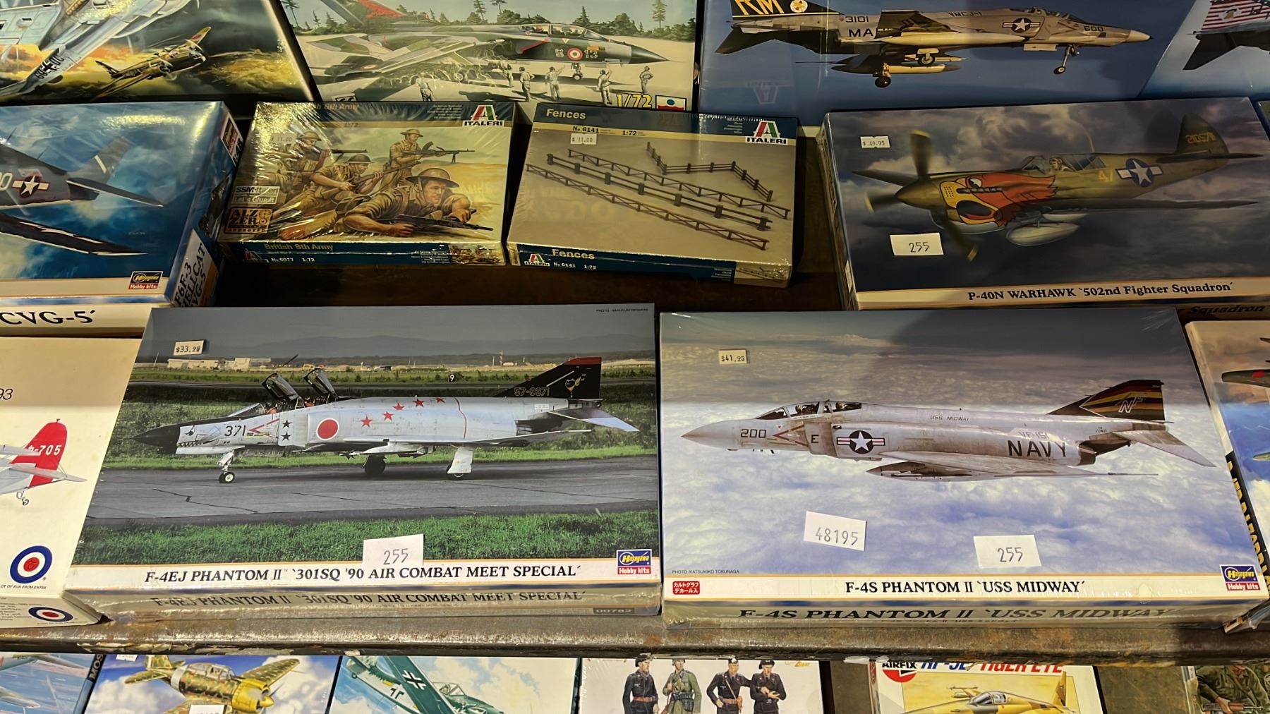SHELF OF ASSORTED AIRPLANE MODEL KITS: HASEGAWA, ENTEX, ITALERI & MORE