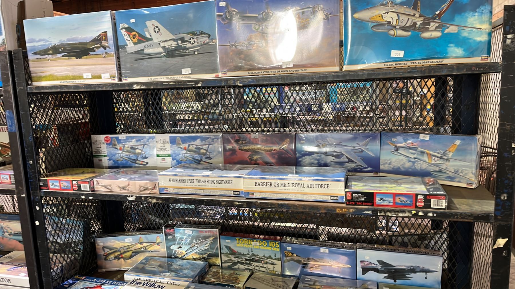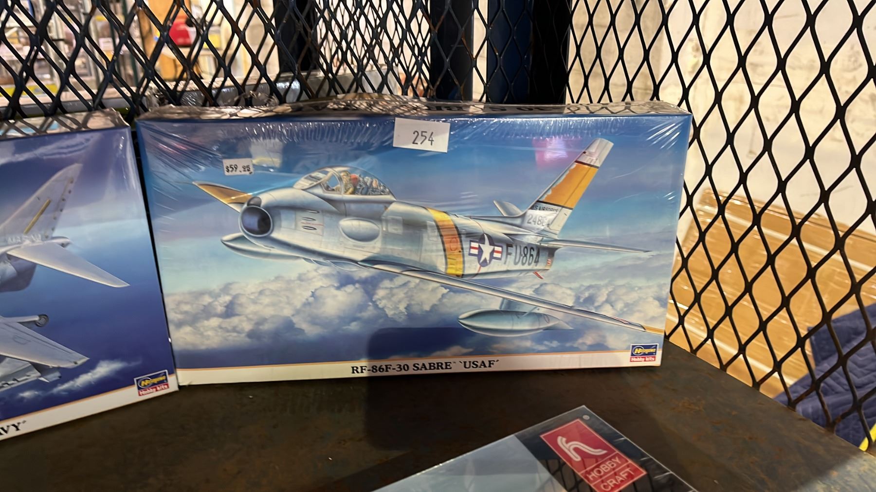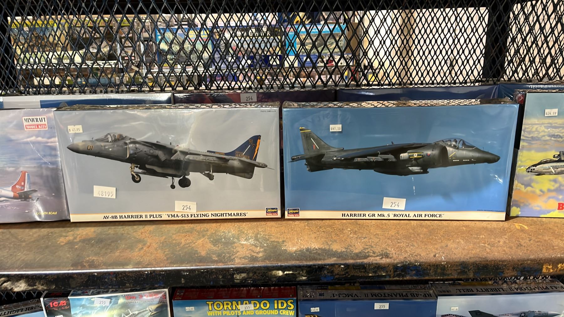 SHELF OF ASSORTED AIRPLANE MODEL KITS: HASEGAWA, HOBBY CRAFT & MINICRAFT