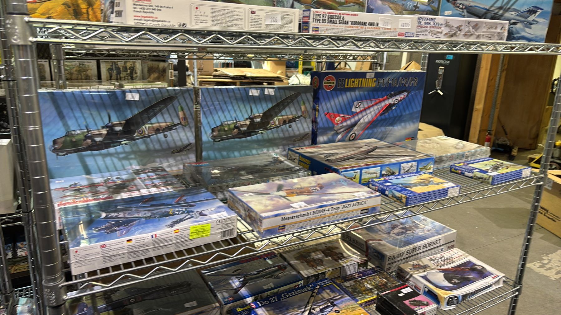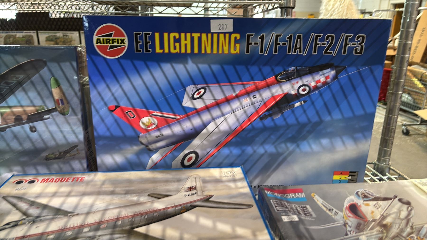 SHELF OF ASSORTED AIRPLANE MODEL KITS: HASEGAWA, REVELL, MONOGRAM & MORE