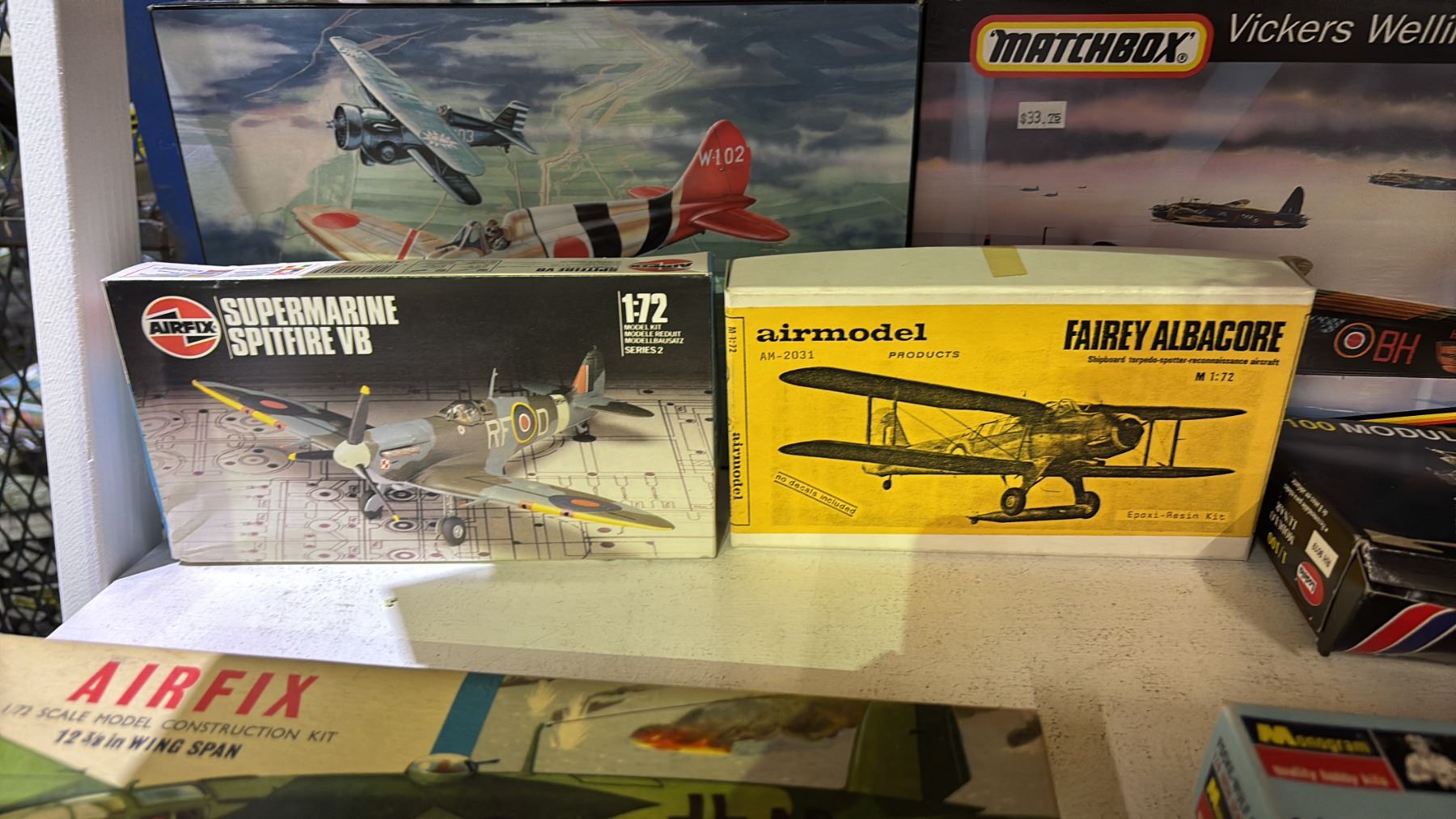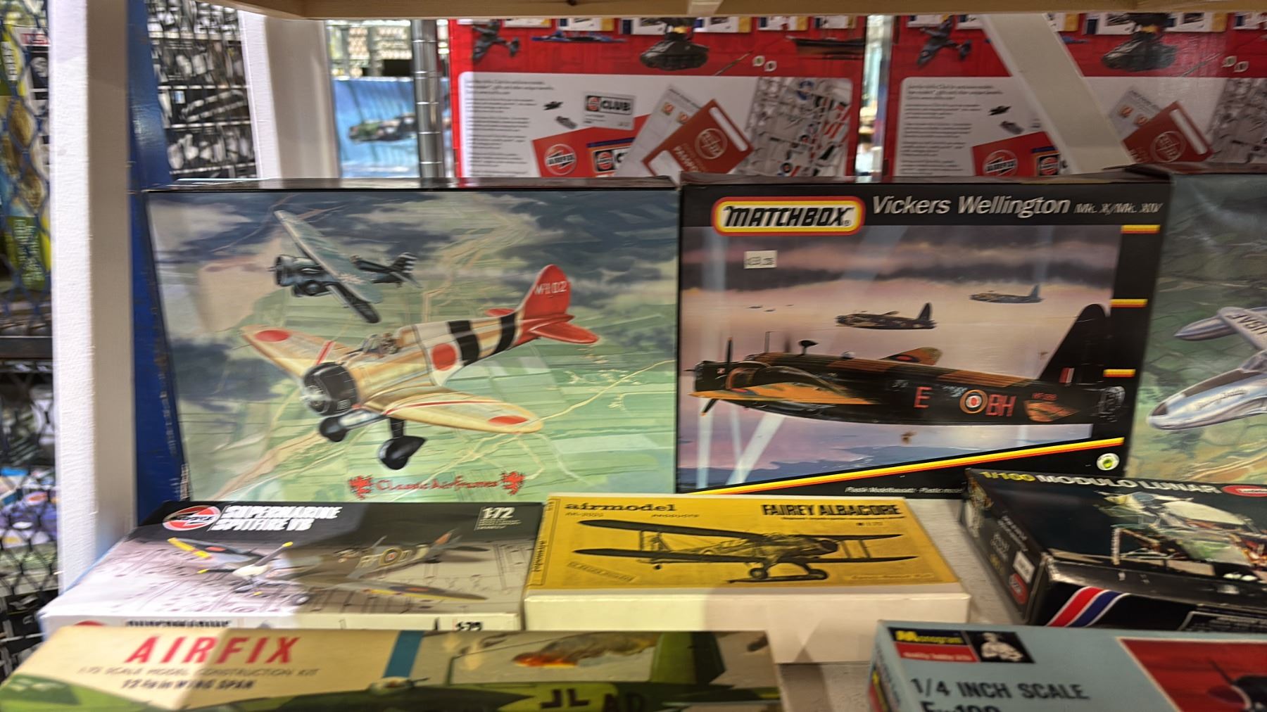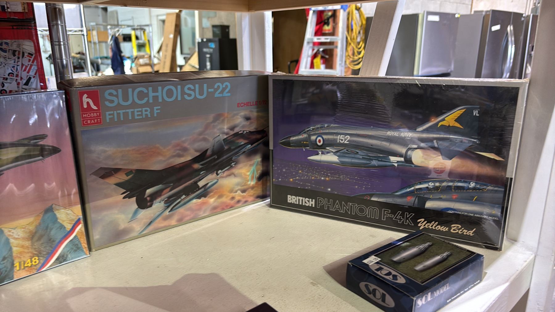 SHELF OF ASSORTED AIRPLANE MODEL KITS: MATCHBOX, HOBBY CRAFT, AIRFIX & MORE