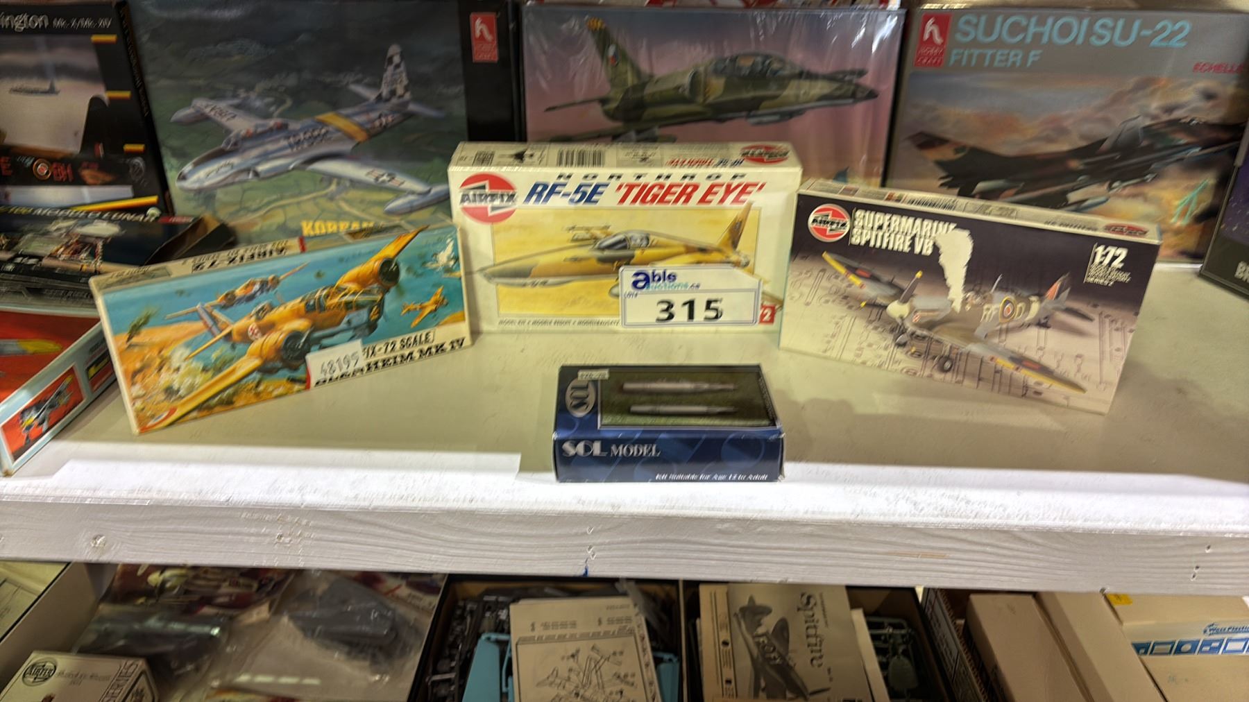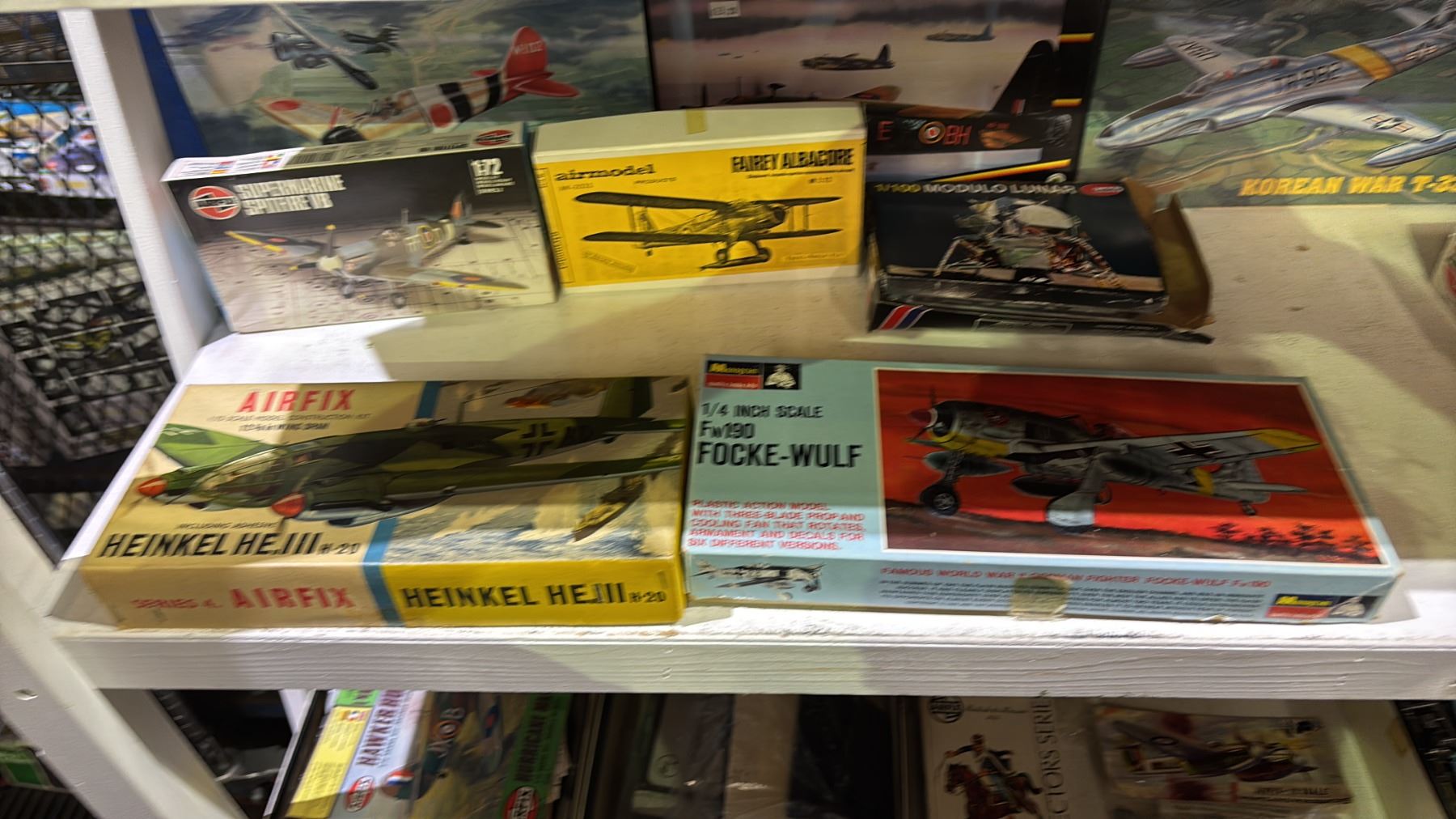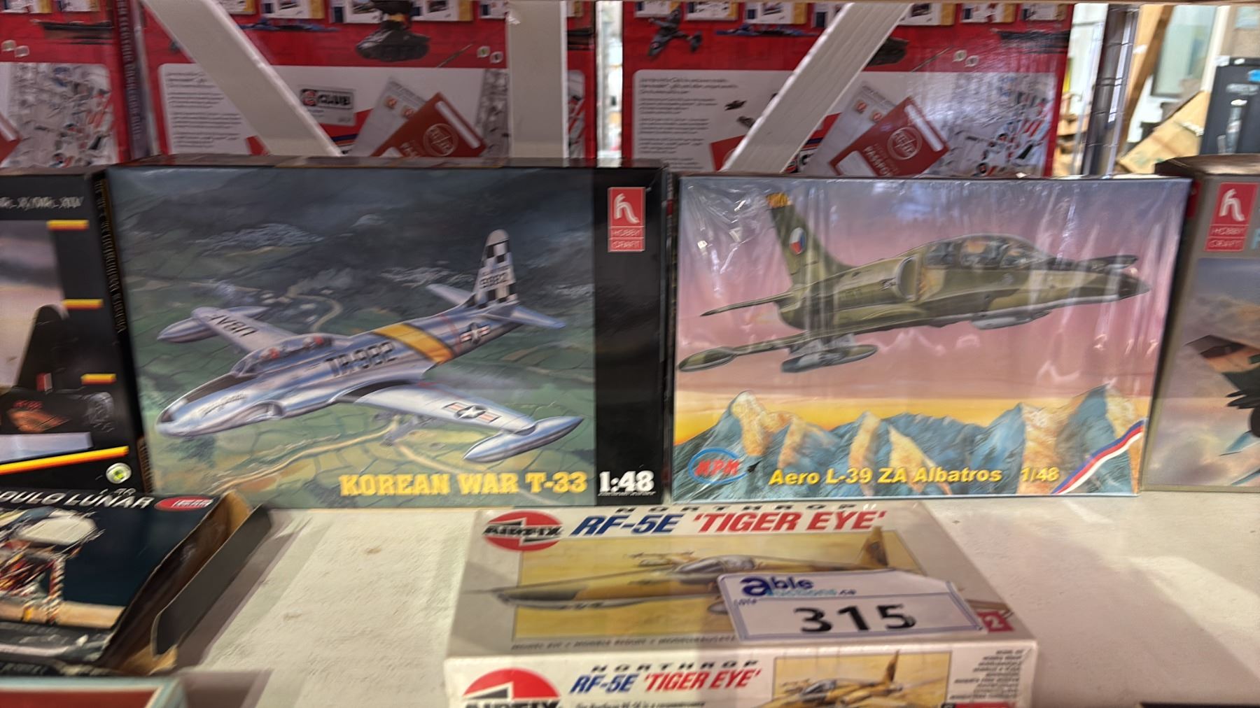 SHELF OF ASSORTED AIRPLANE MODEL KITS: MATCHBOX, HOBBY CRAFT, AIRFIX & MORE