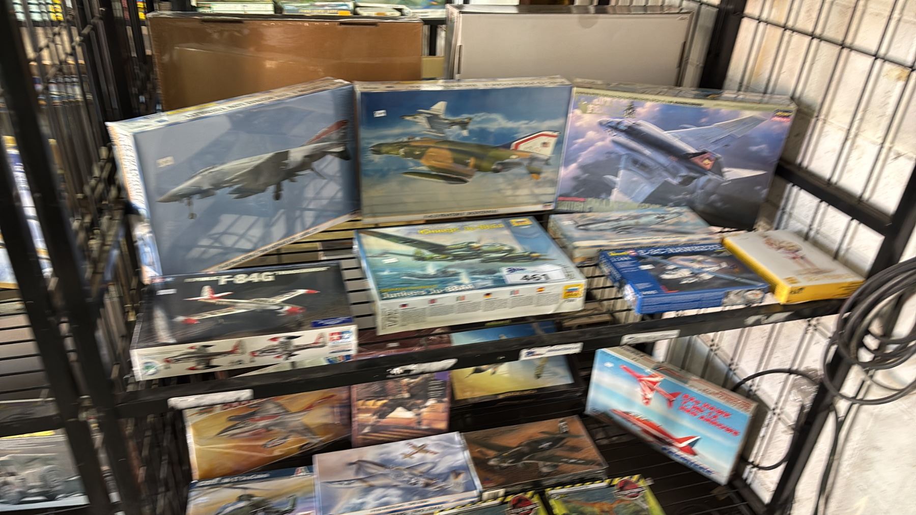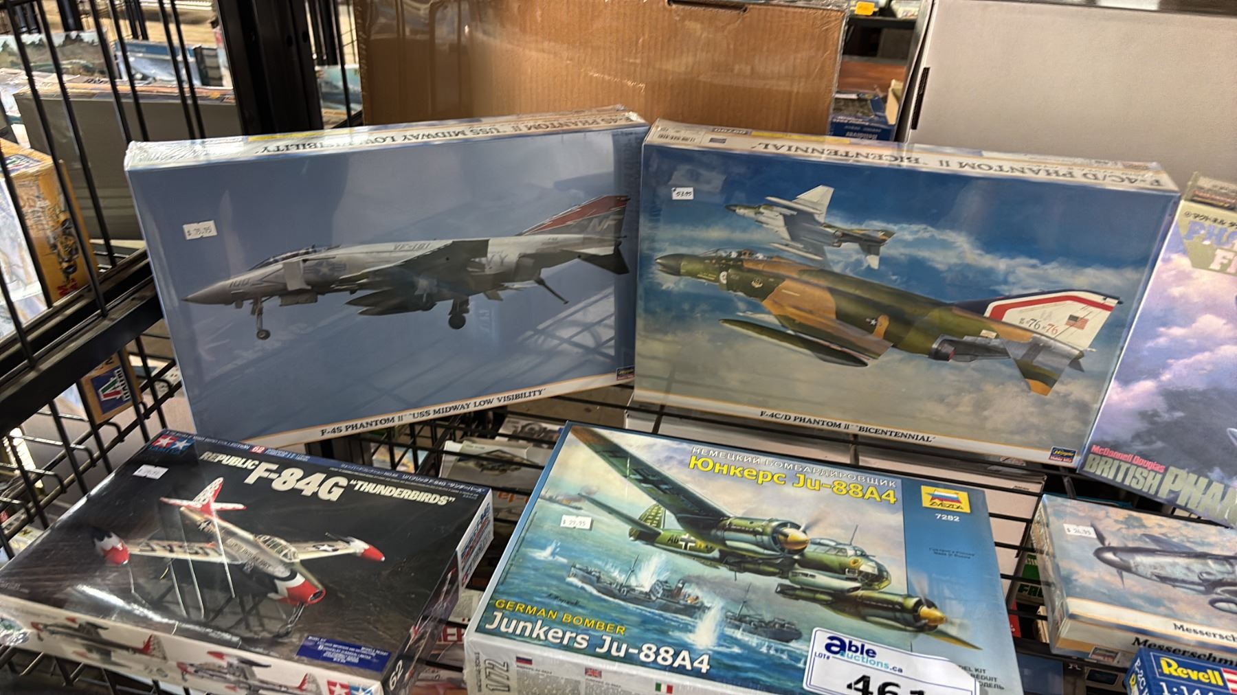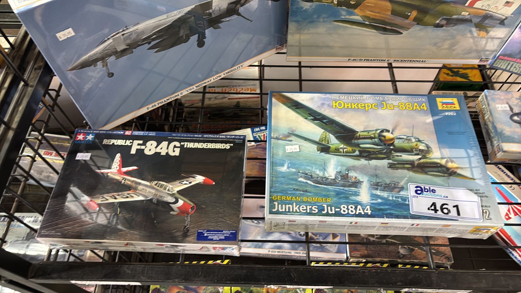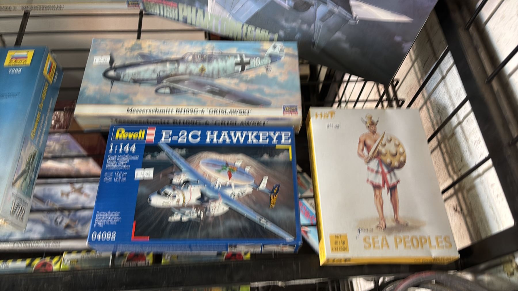 SHELF OF ASSORTED AIRPLANE MODEL KITS & SEA PEOPLES FIGURE SET
