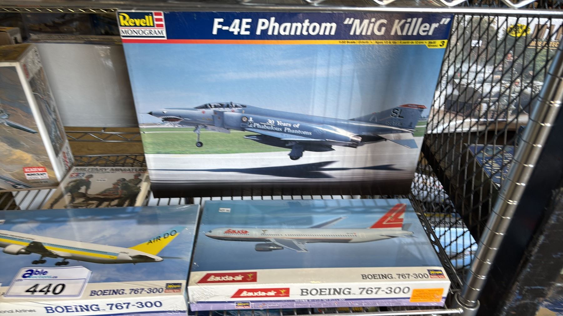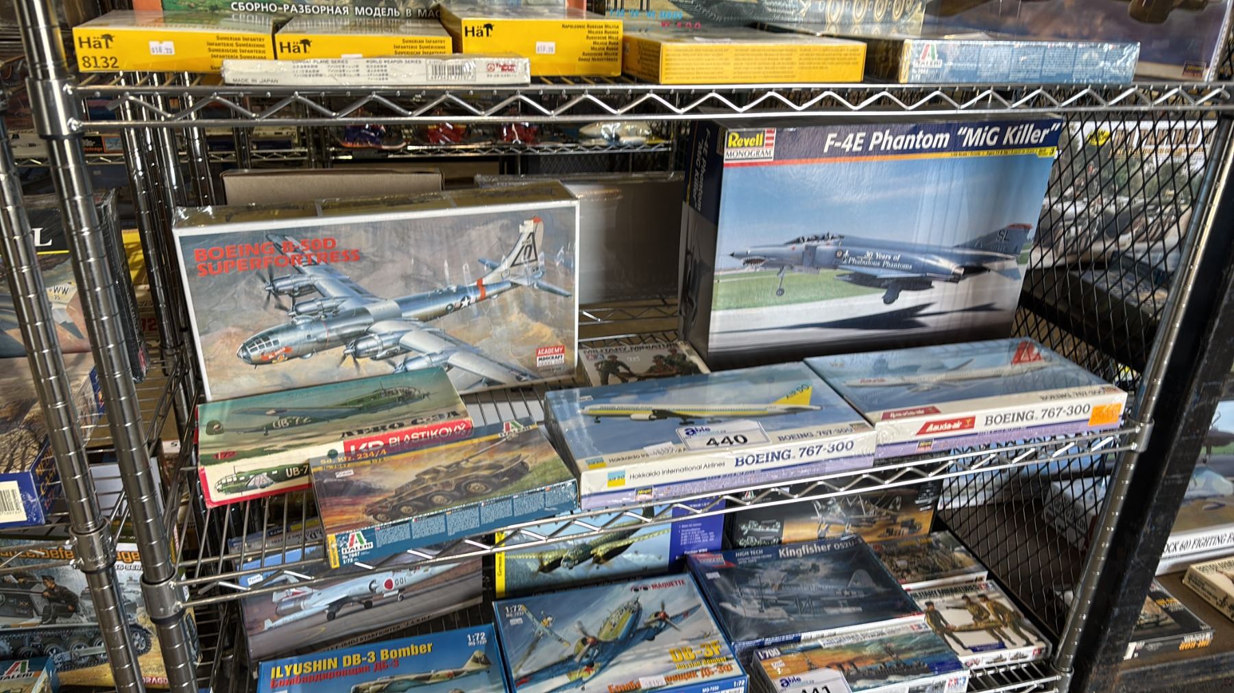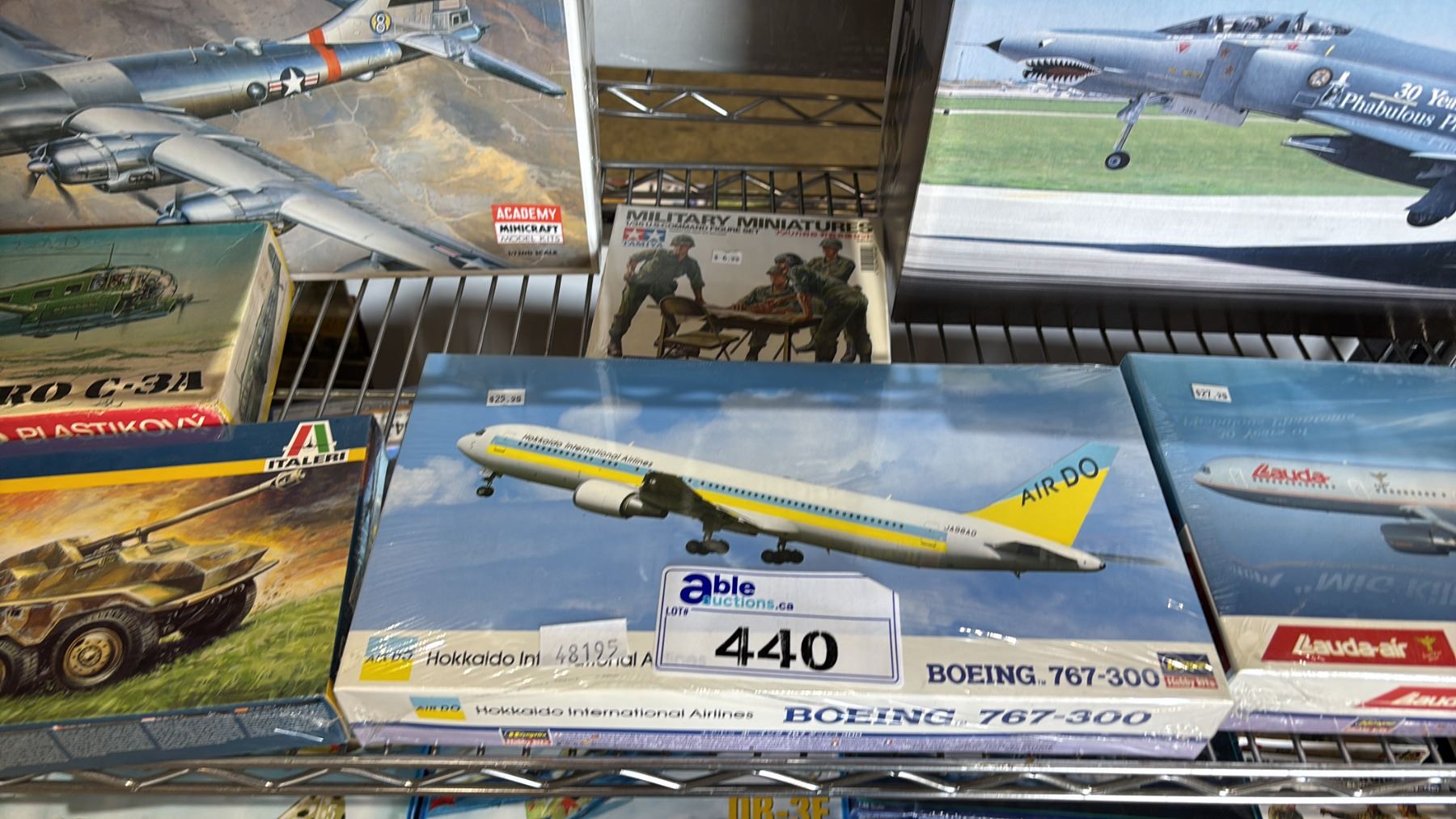 SHELF OF ASSORTED AIRPLANE MODEL KITS