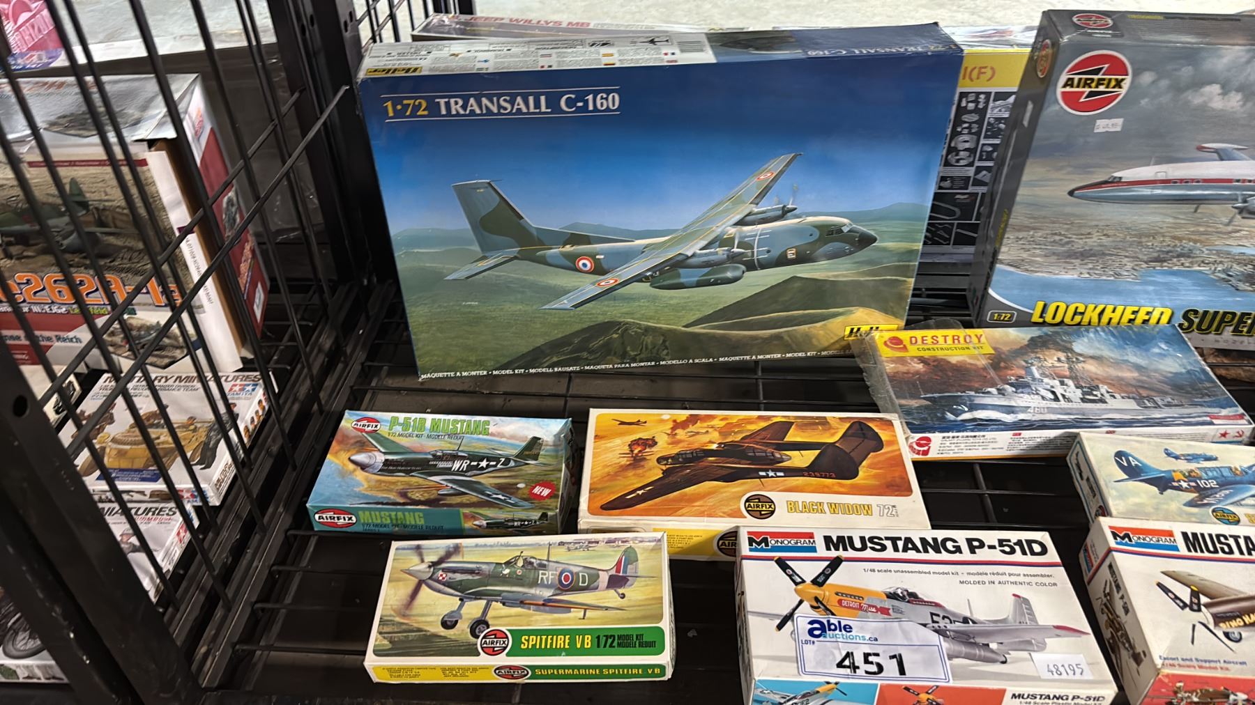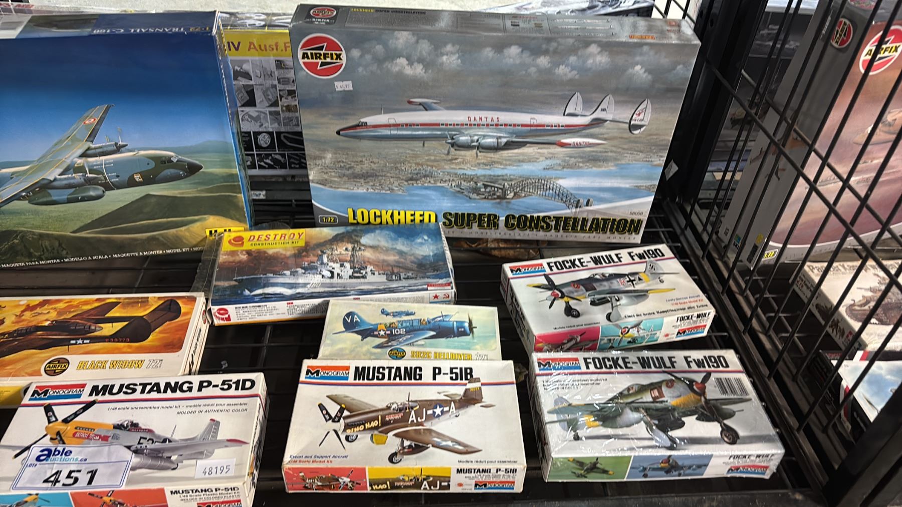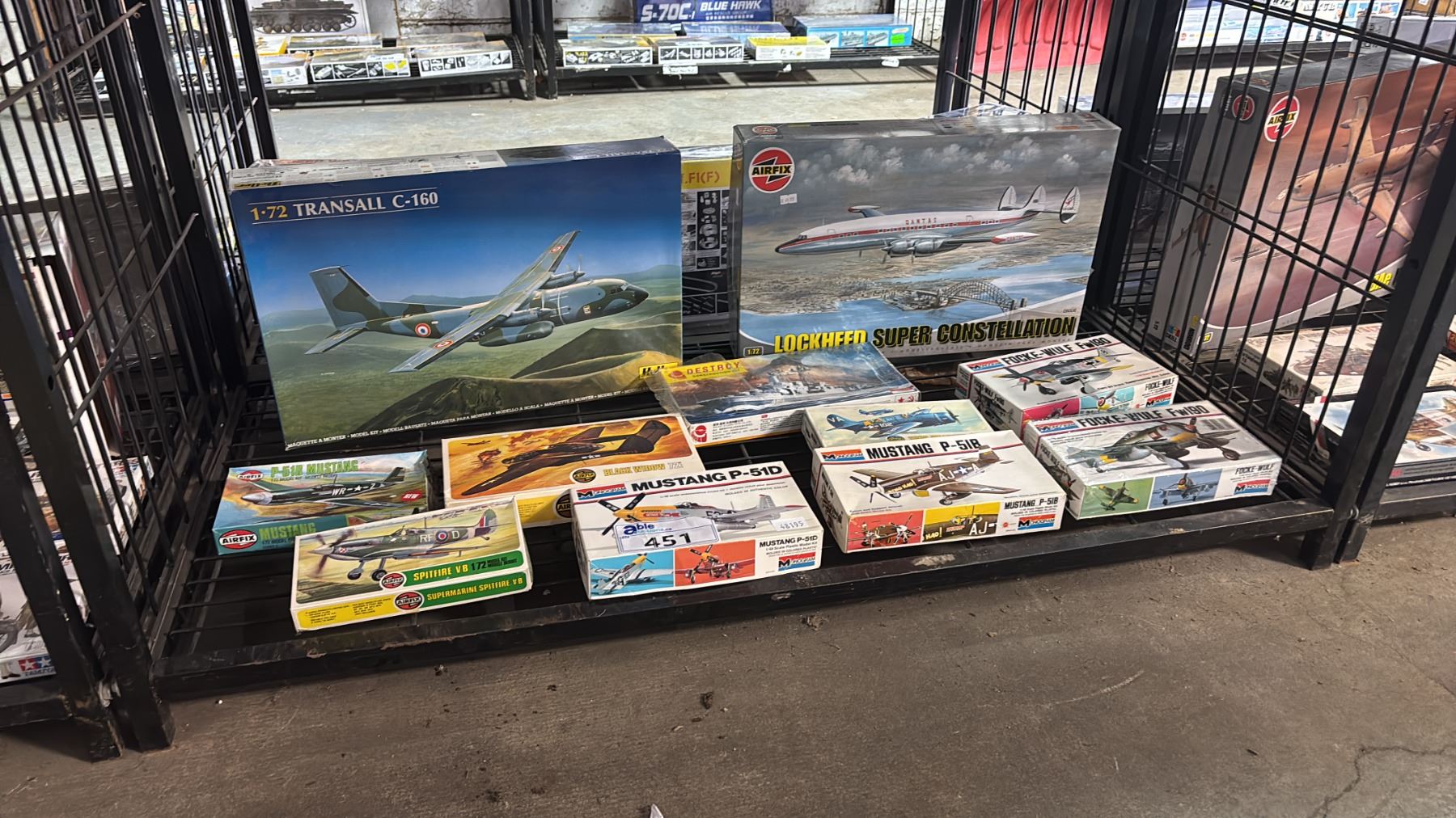 SHELF OF ASSORTED AIRPLANE MODEL KITS