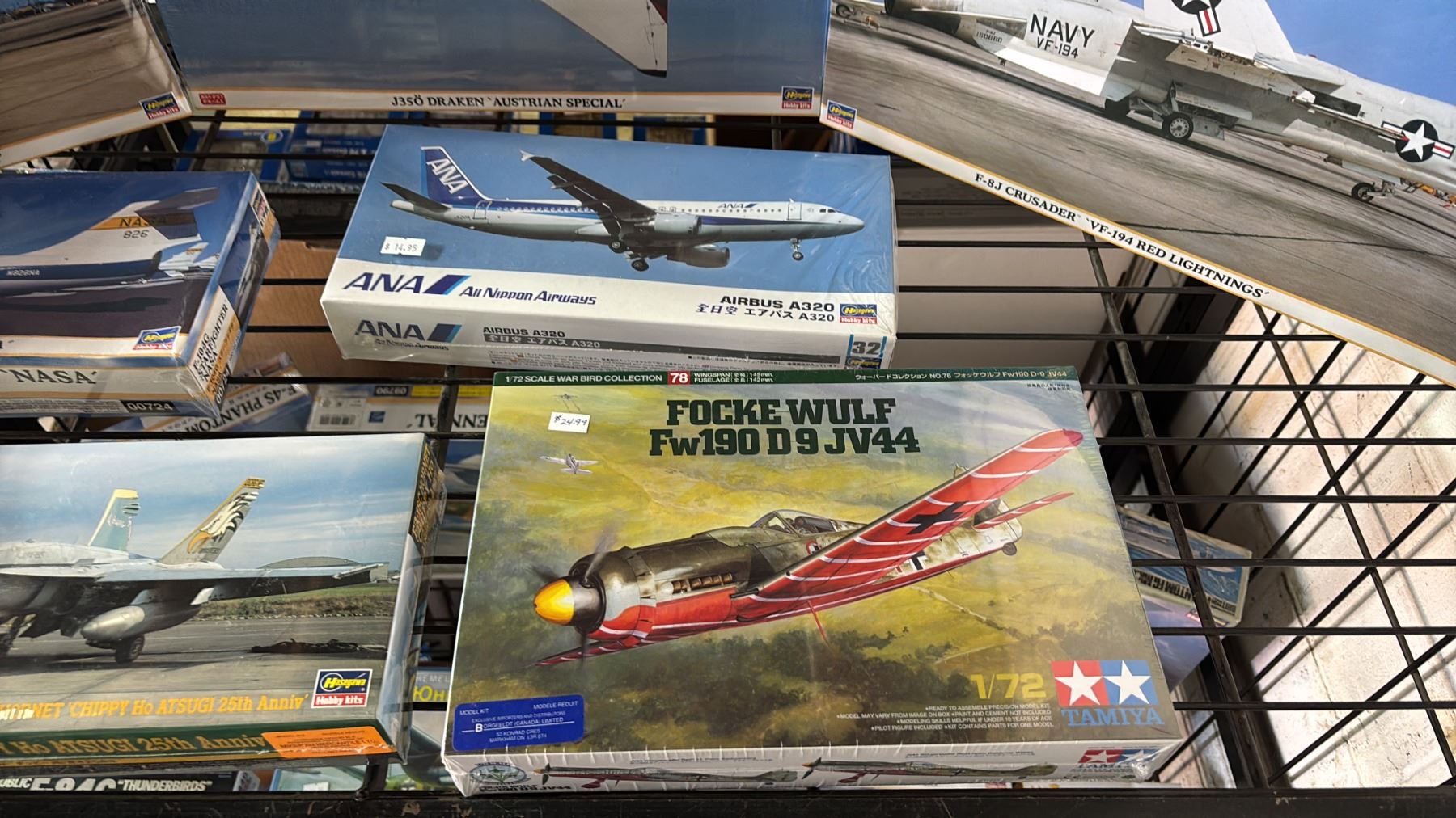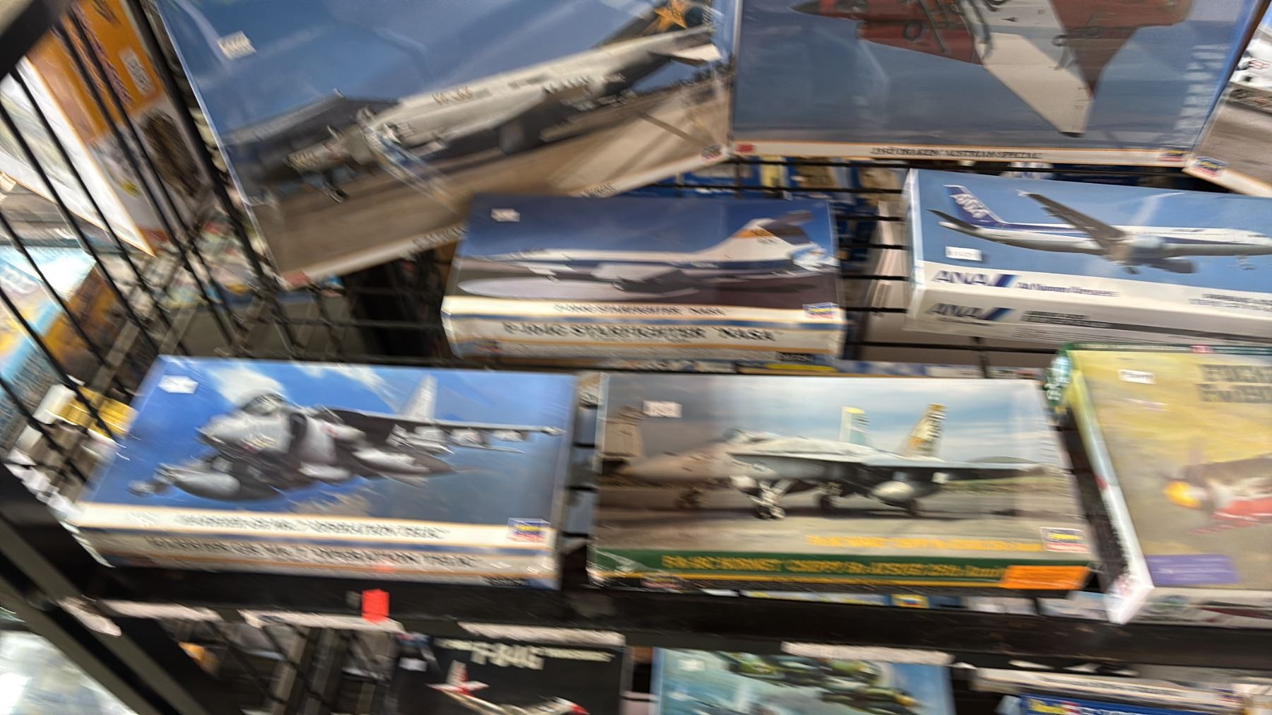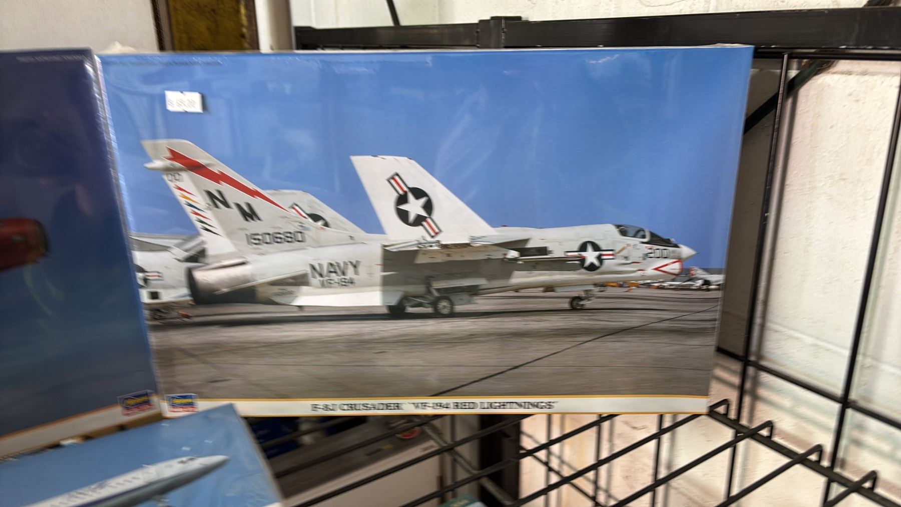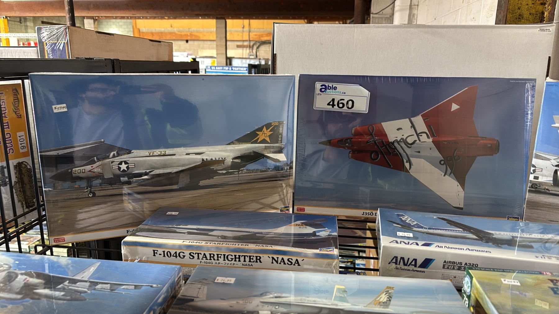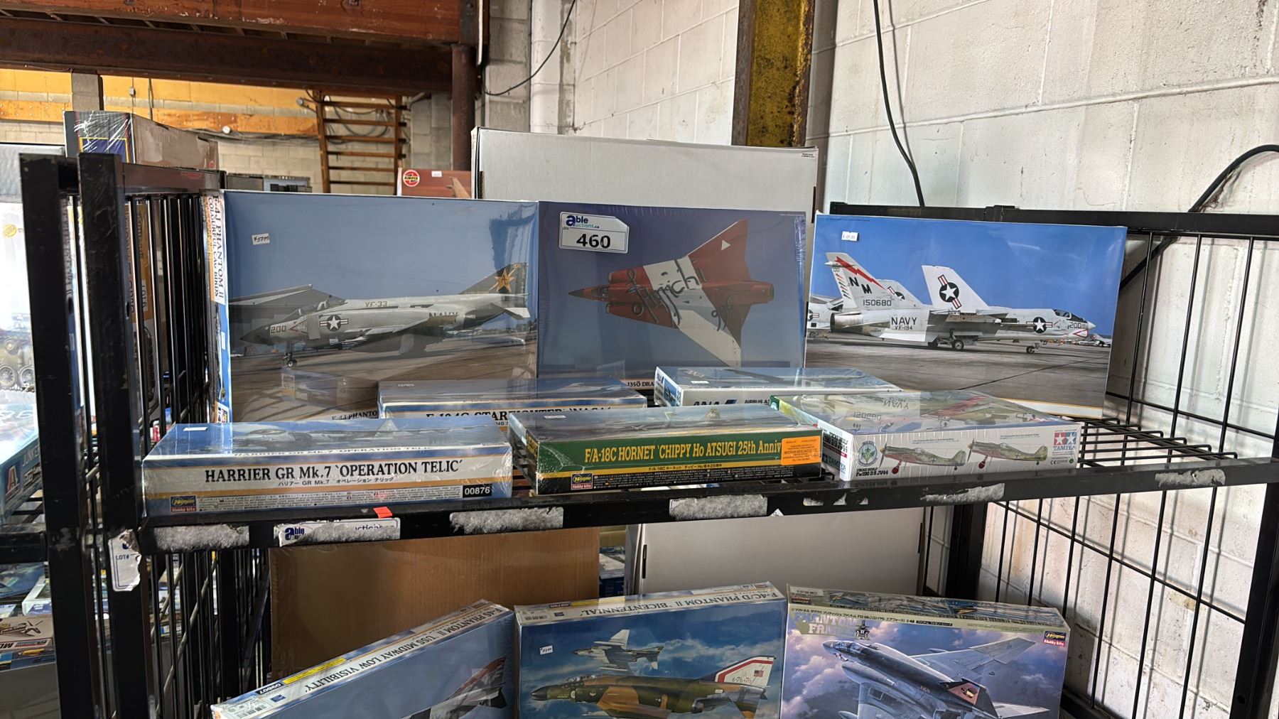 SHELF OF ASSORTED AIRPLANE MODEL KITS