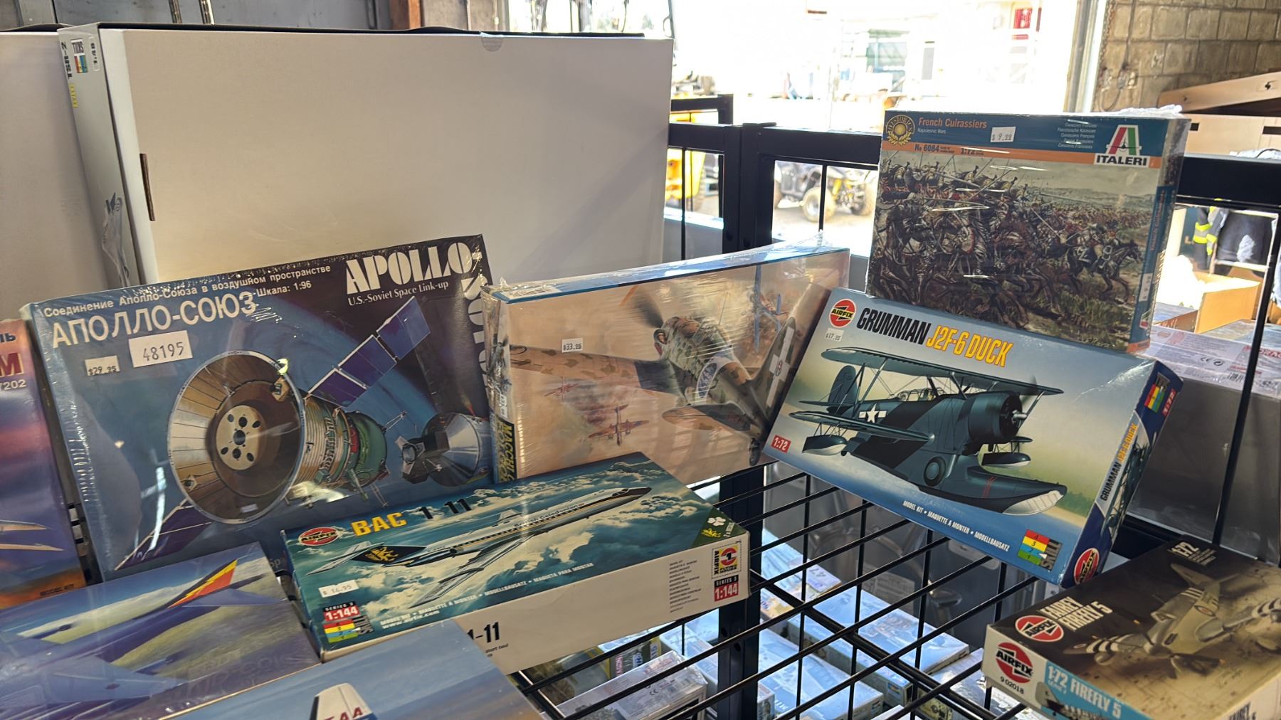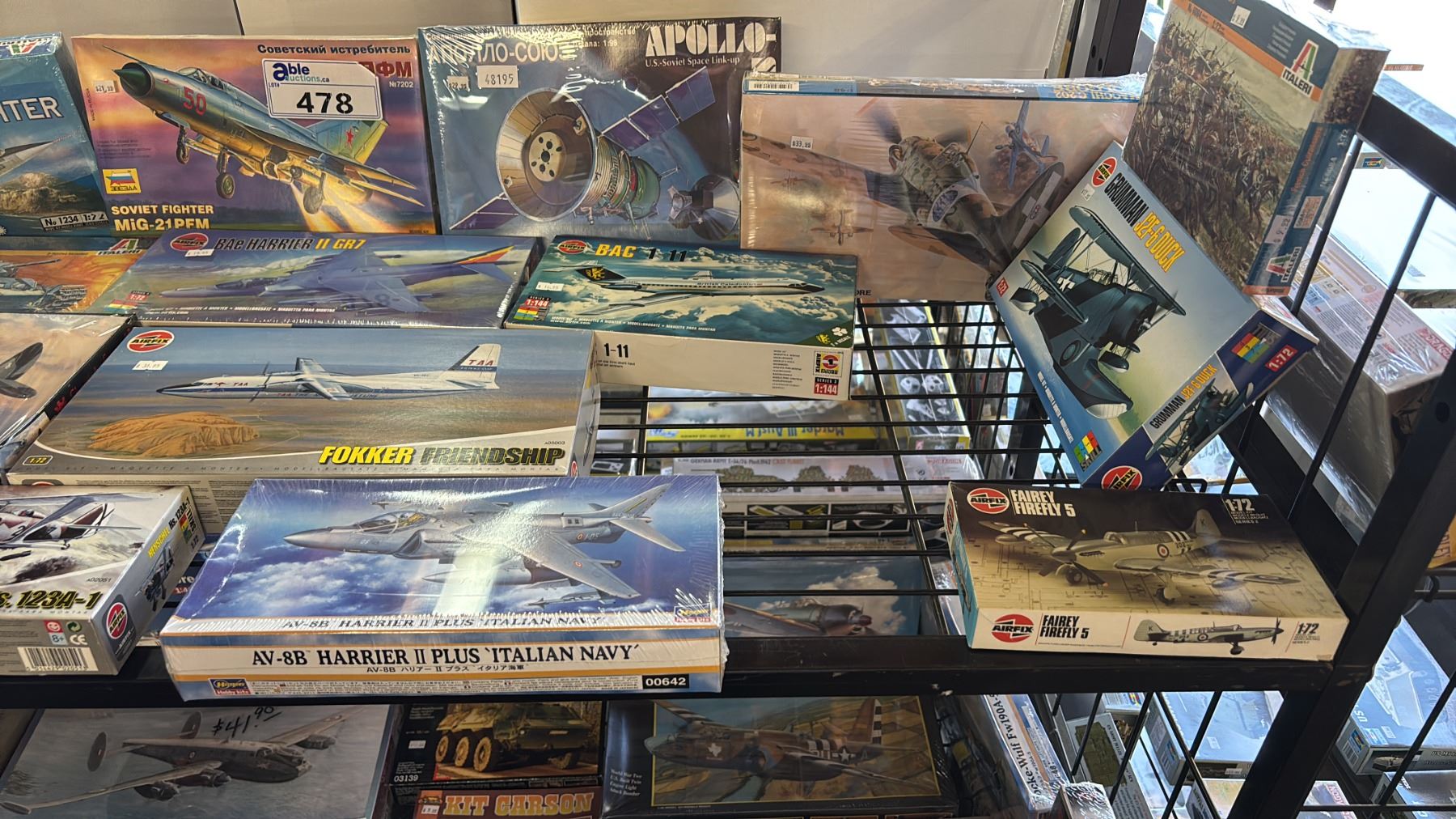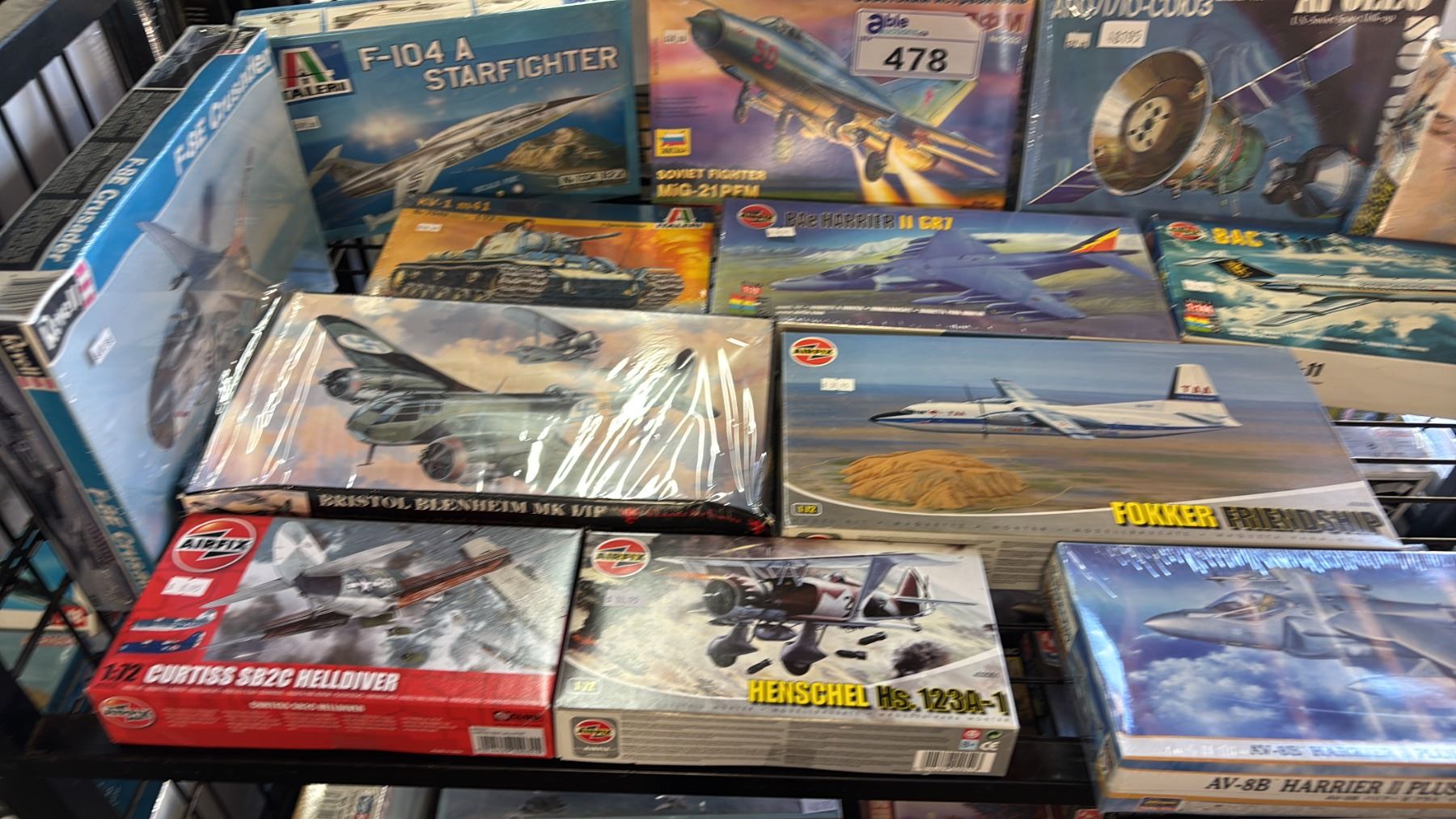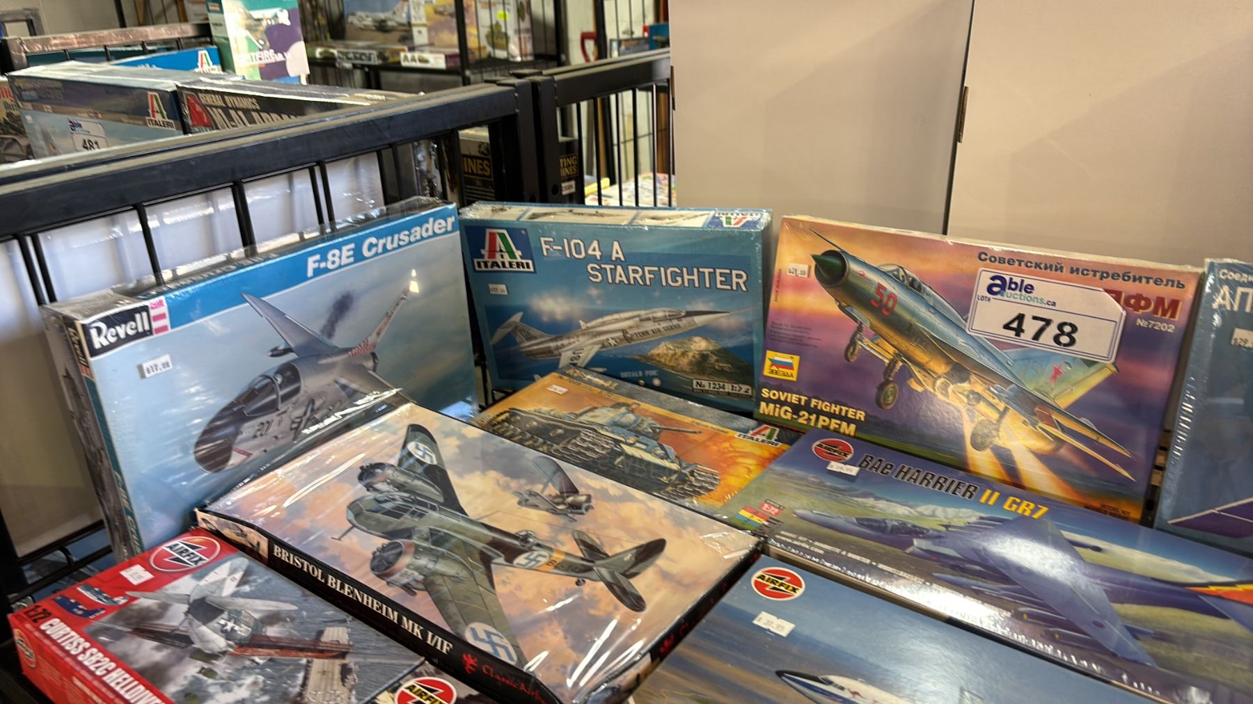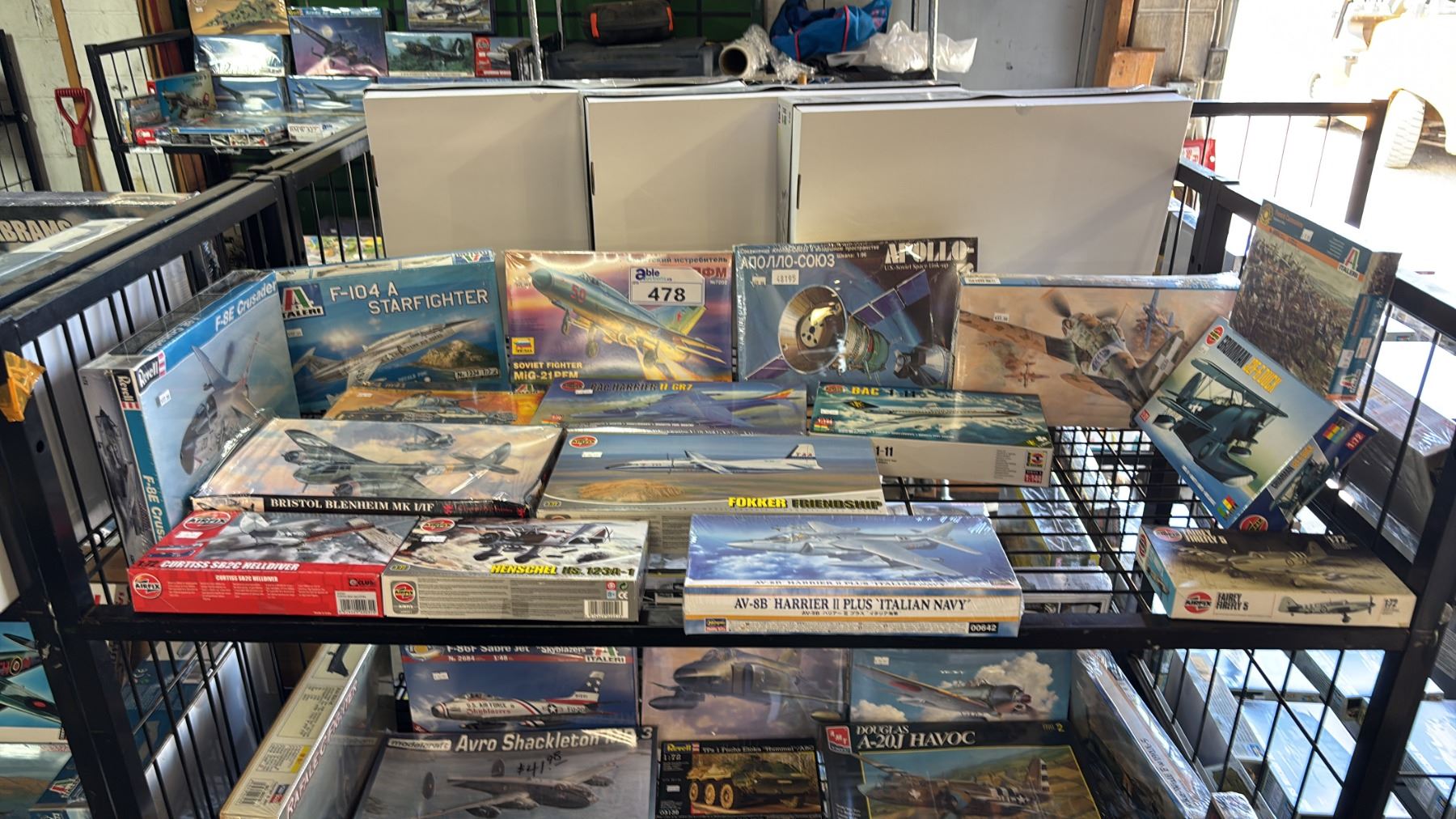 SHELF OF ASSORTED AIRPLANE MODEL KITS