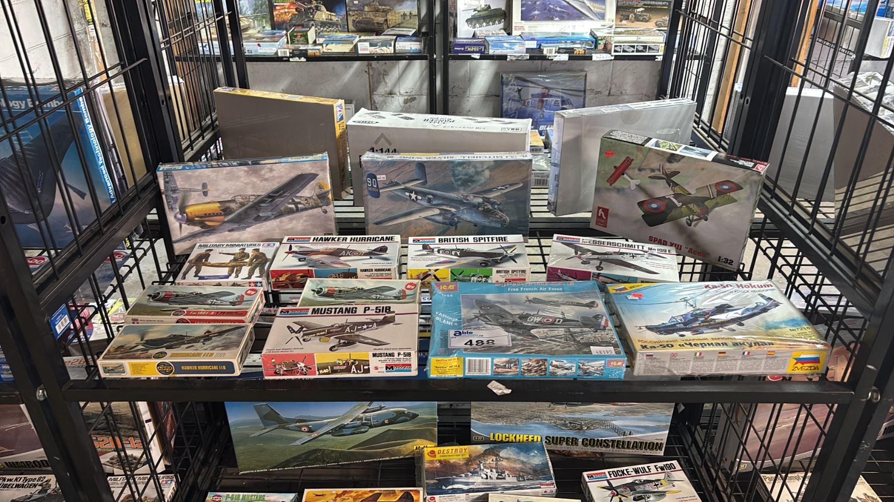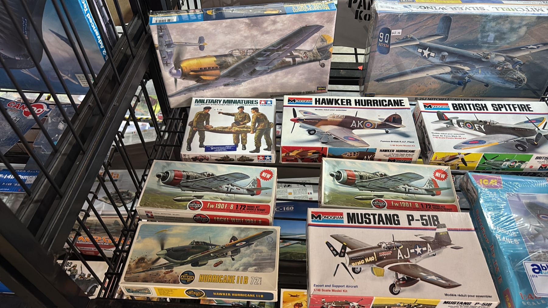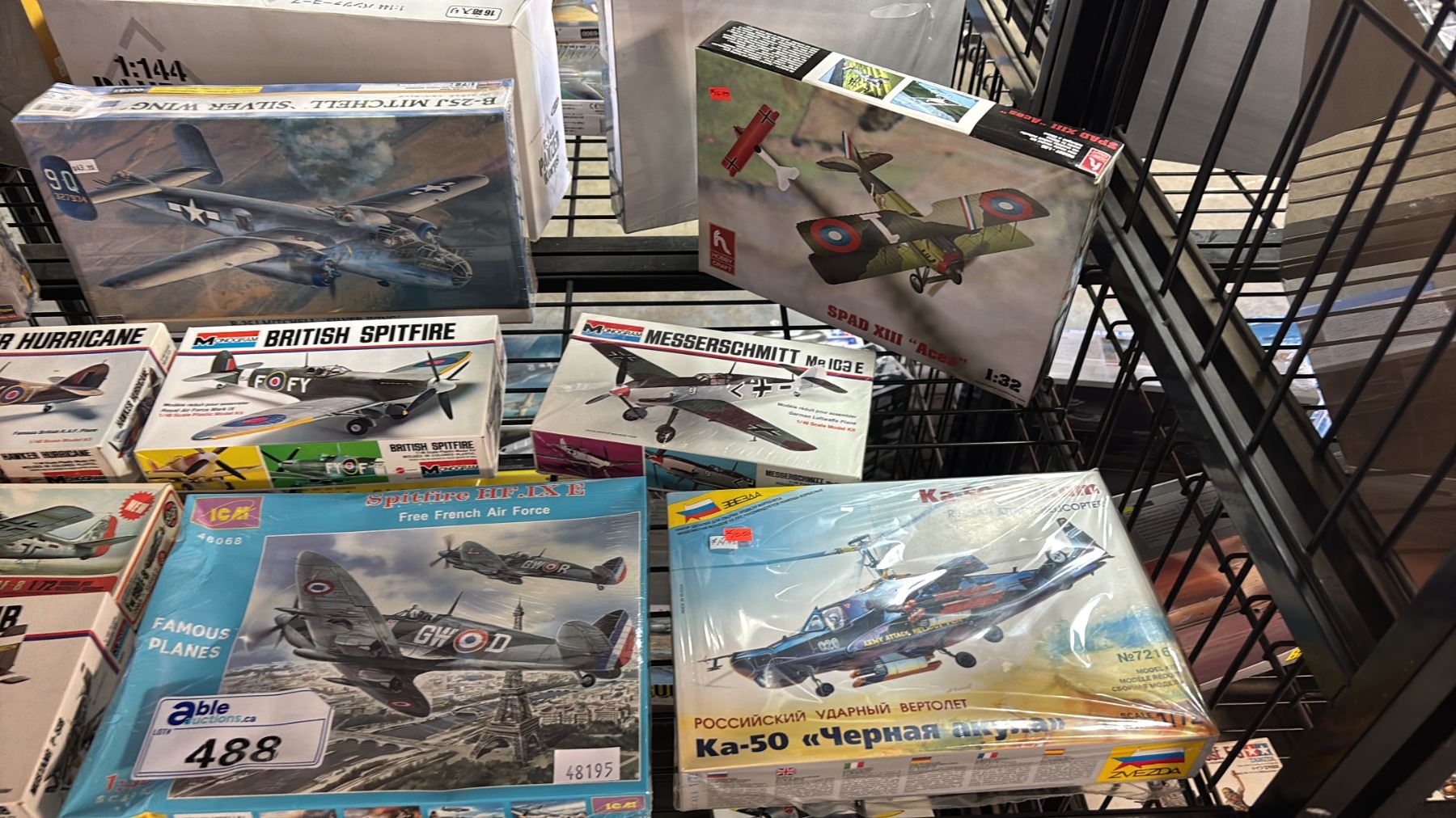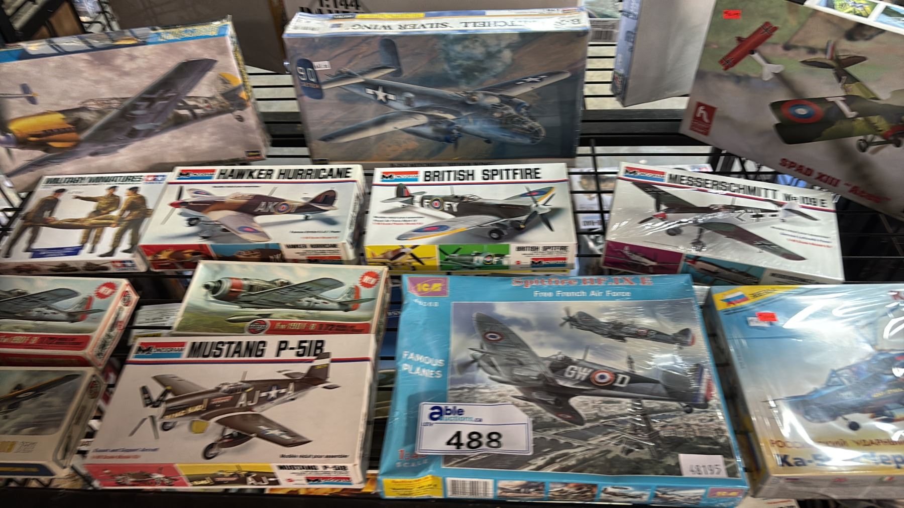 SHELF OF ASSORTED AIRPLANE MODEL KITS