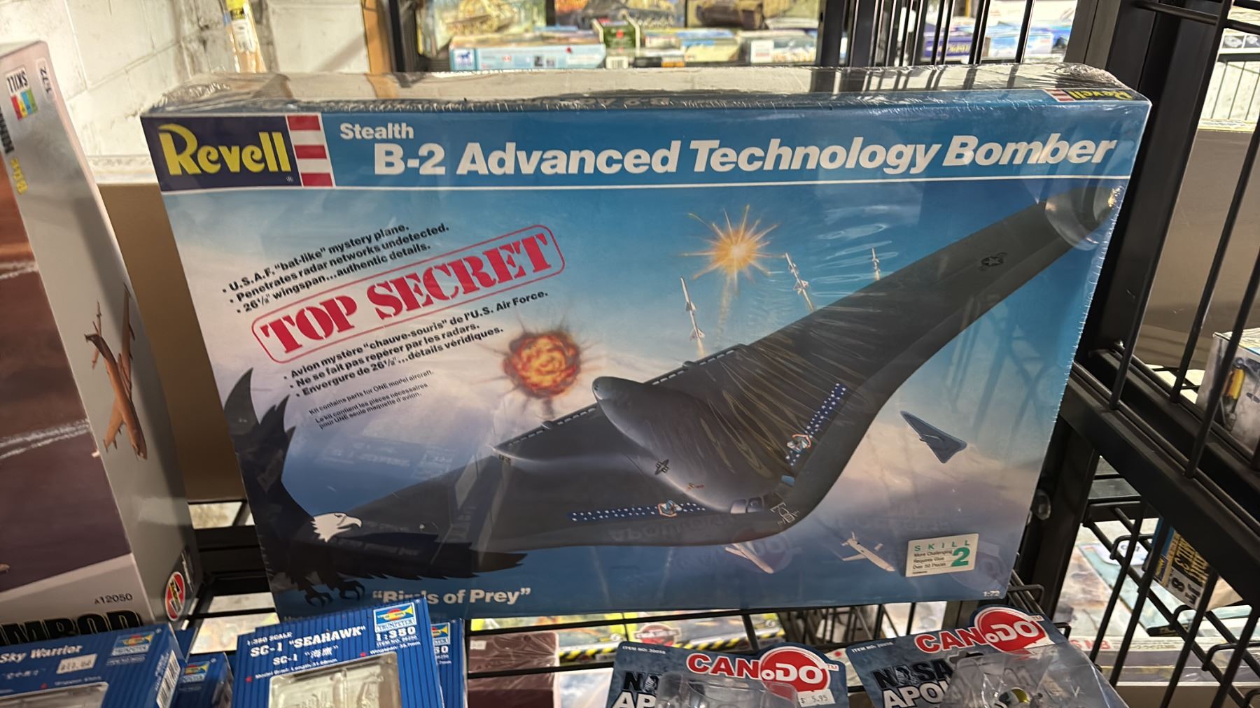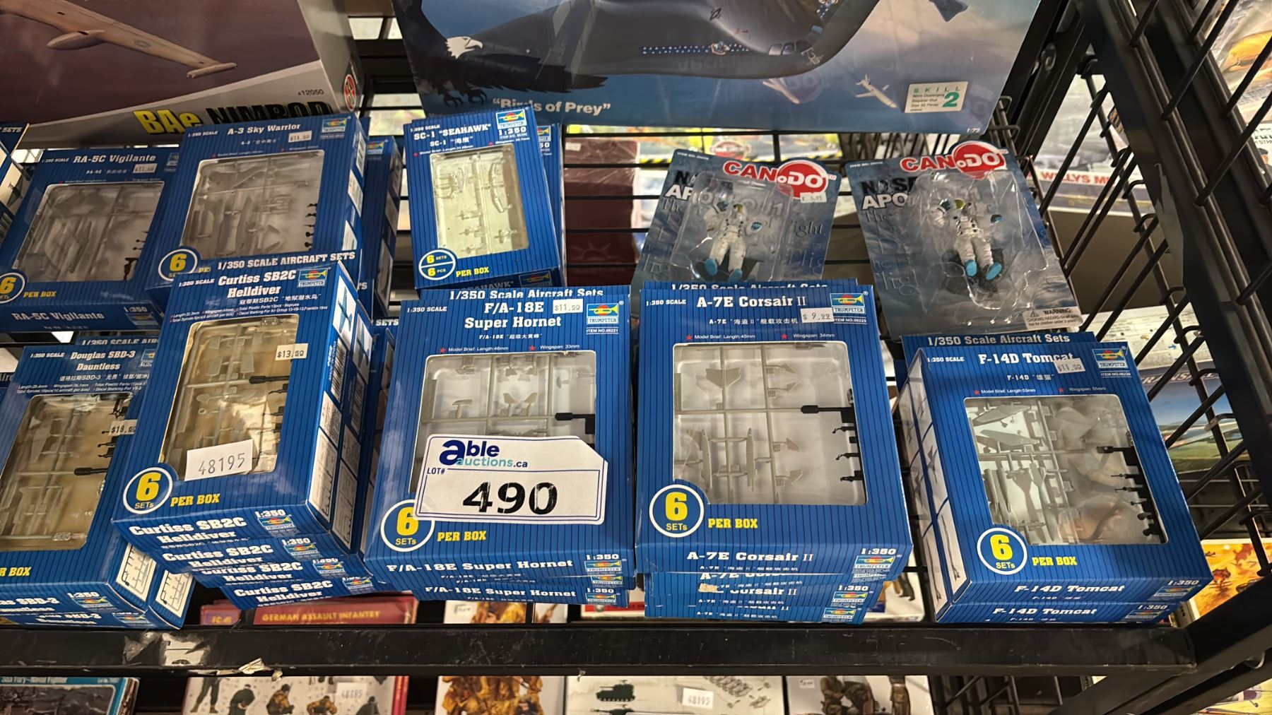 SHELF OF ASSORTED AIRPLANE MODEL KITS