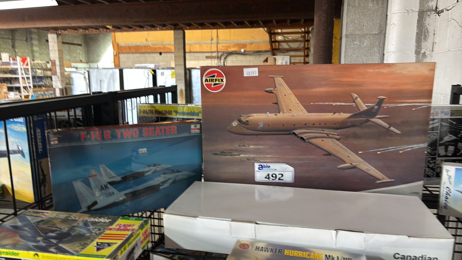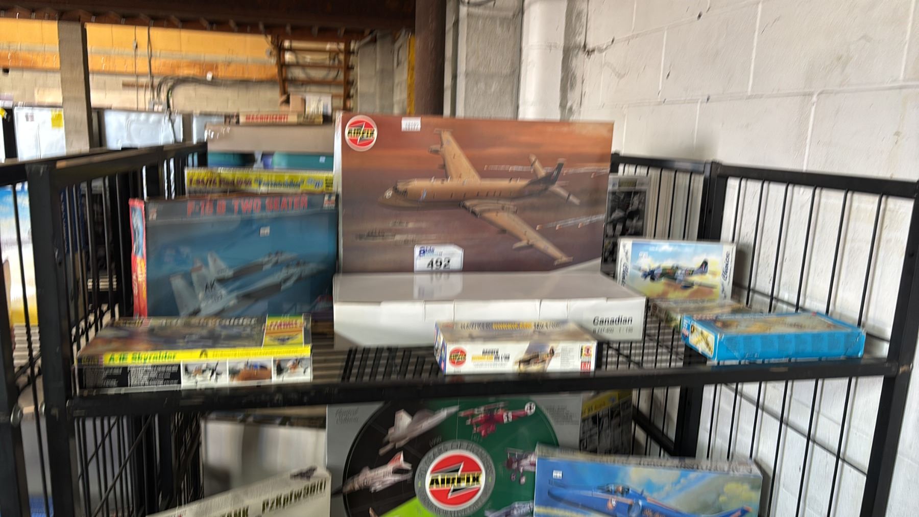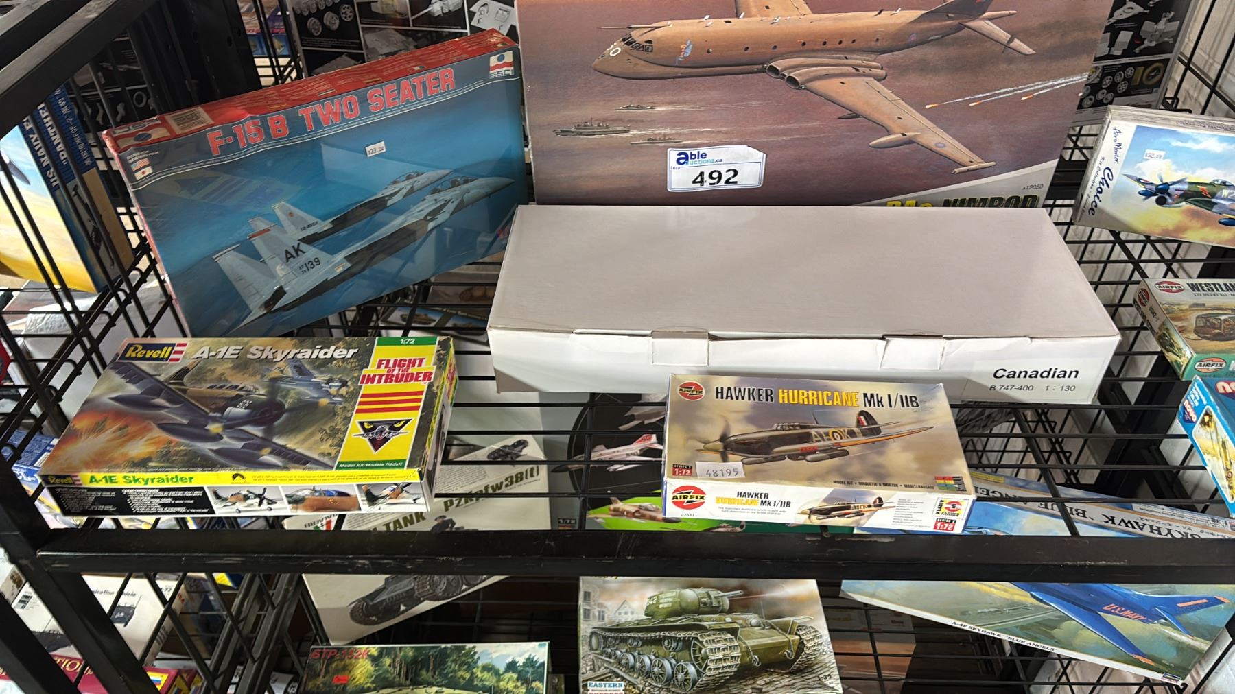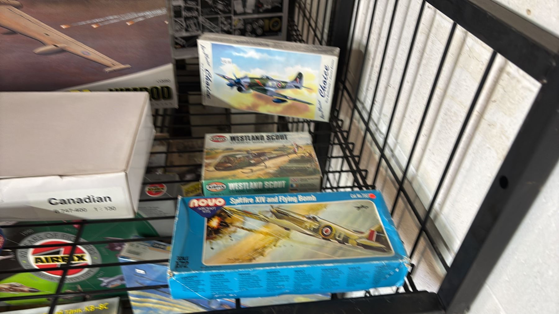 SHELF OF ASSORTED AIRPLANE MODEL KITS