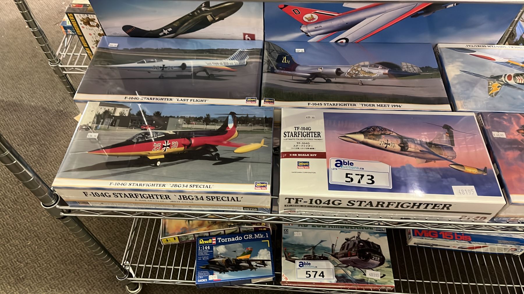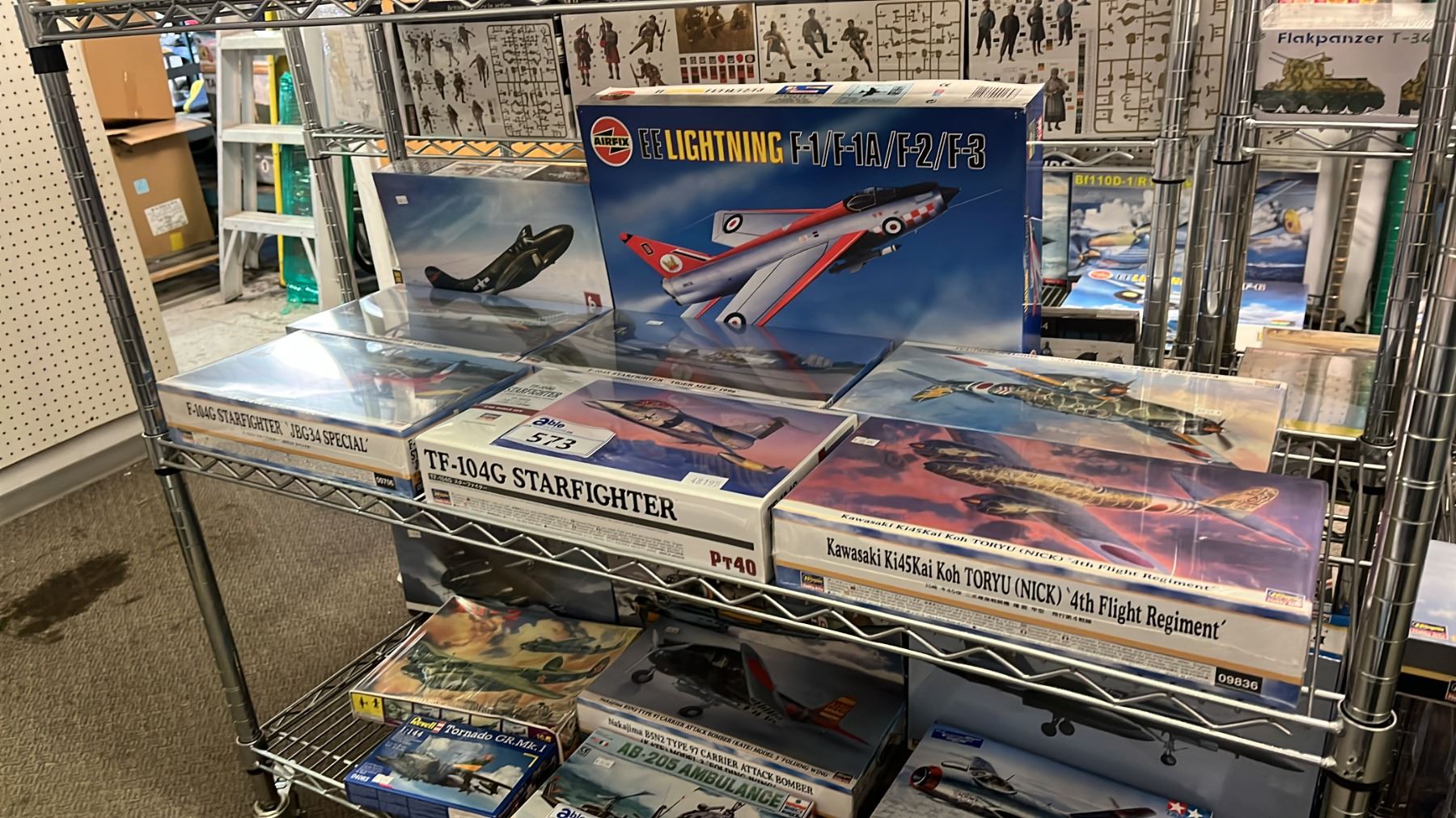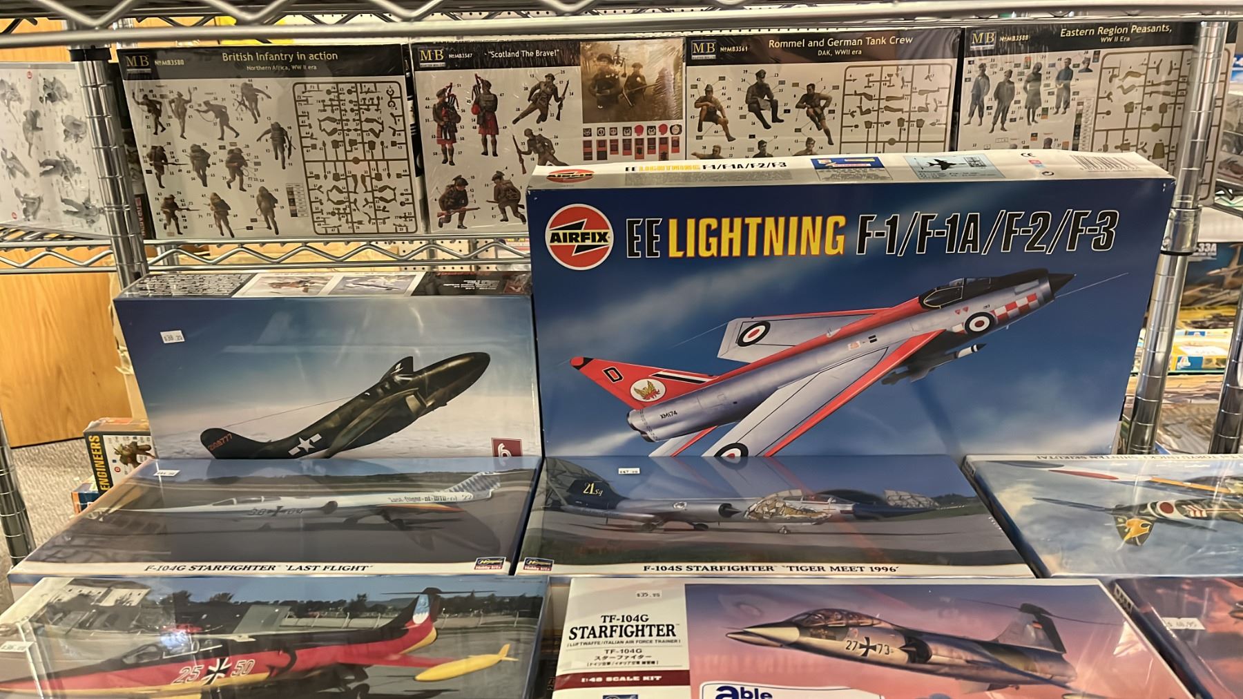 SHELF OF ASSORTED AIRPLANE MODEL KITS
