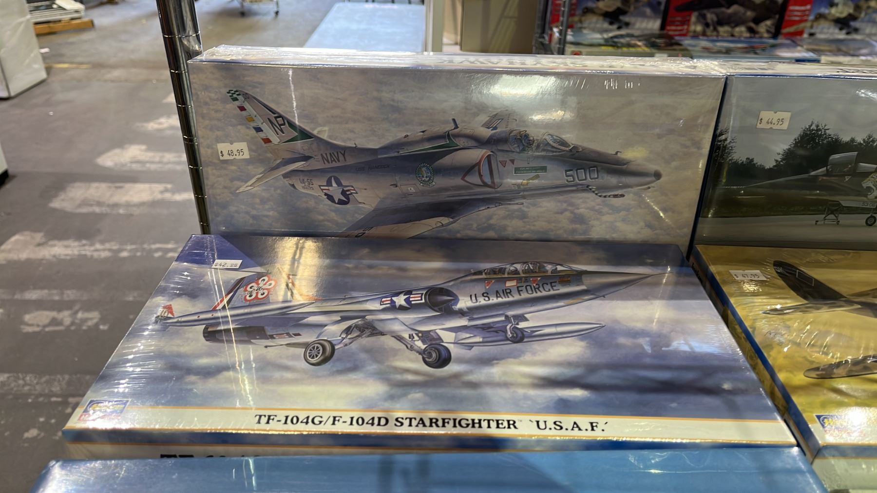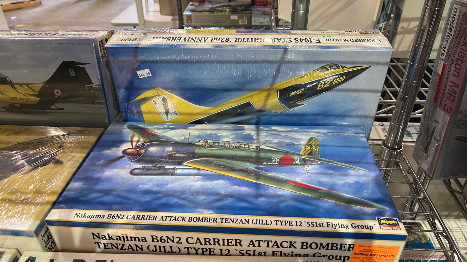 SHELF OF ASSORTED AIRPLANE MODEL KITS