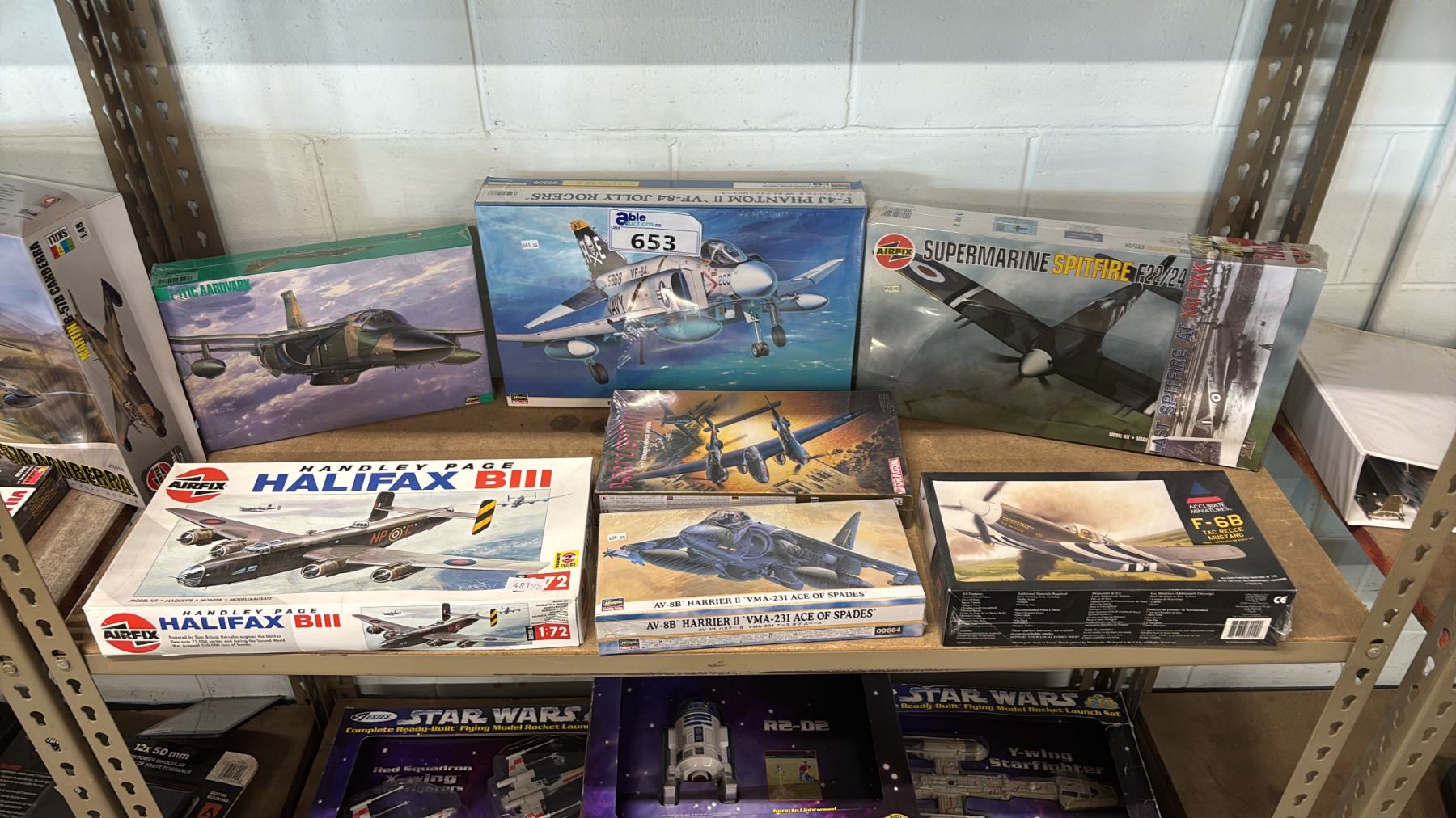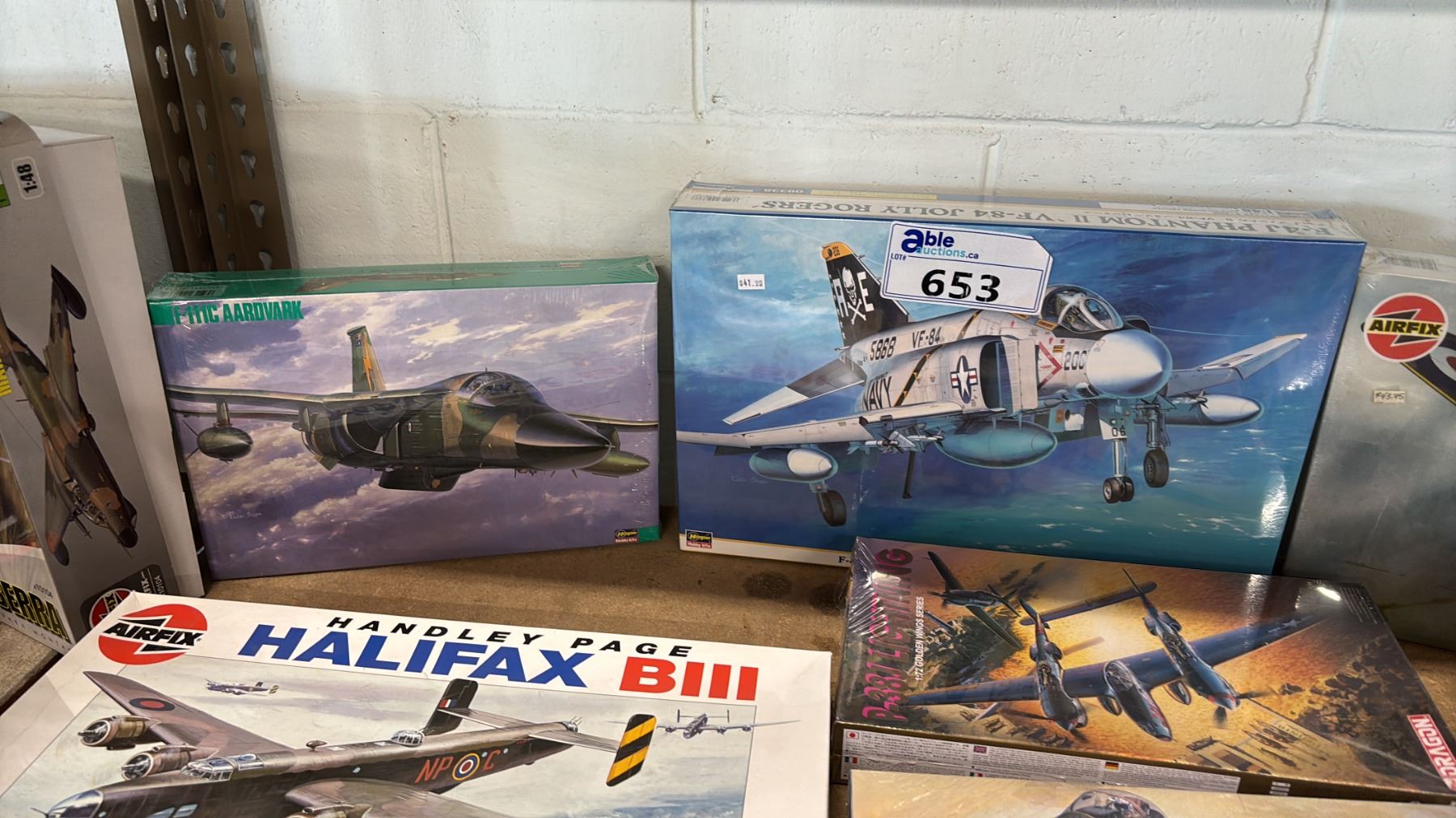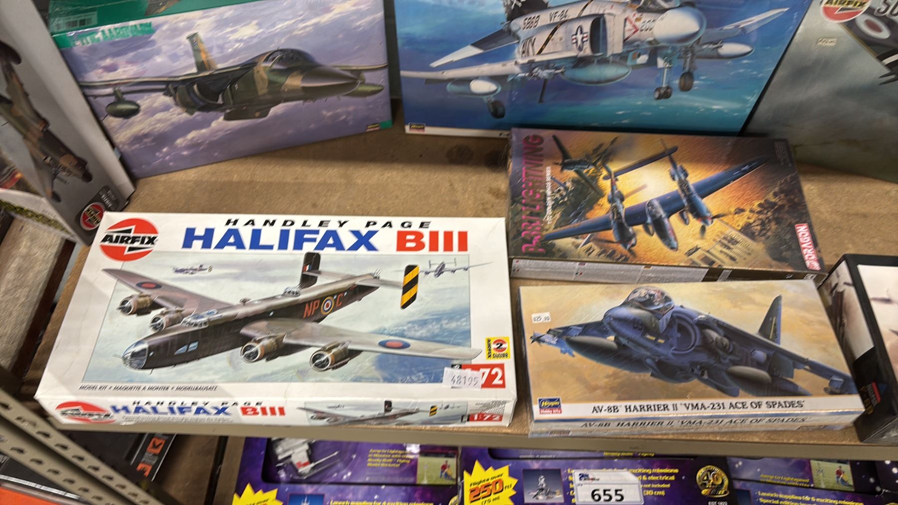 SHELF OF ASSORTED AIRPLANE MODEL KITS