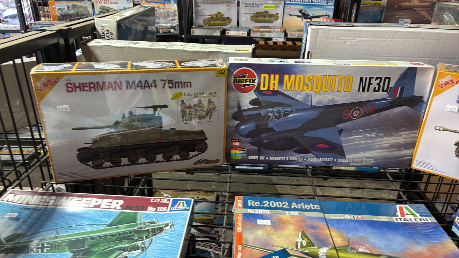 SHELF OF ASSORTED AIRPLANE & TANK MODEL KITS