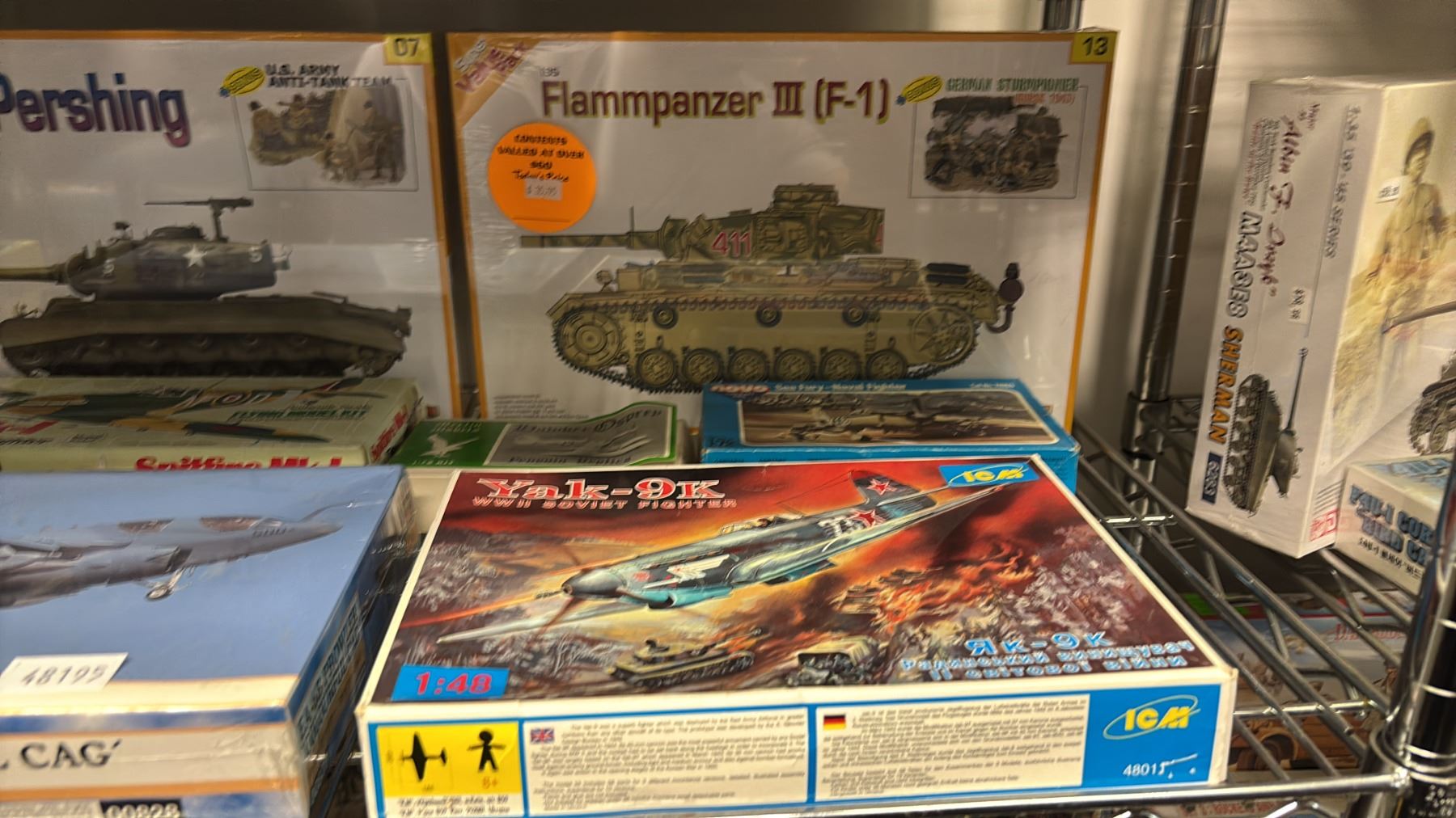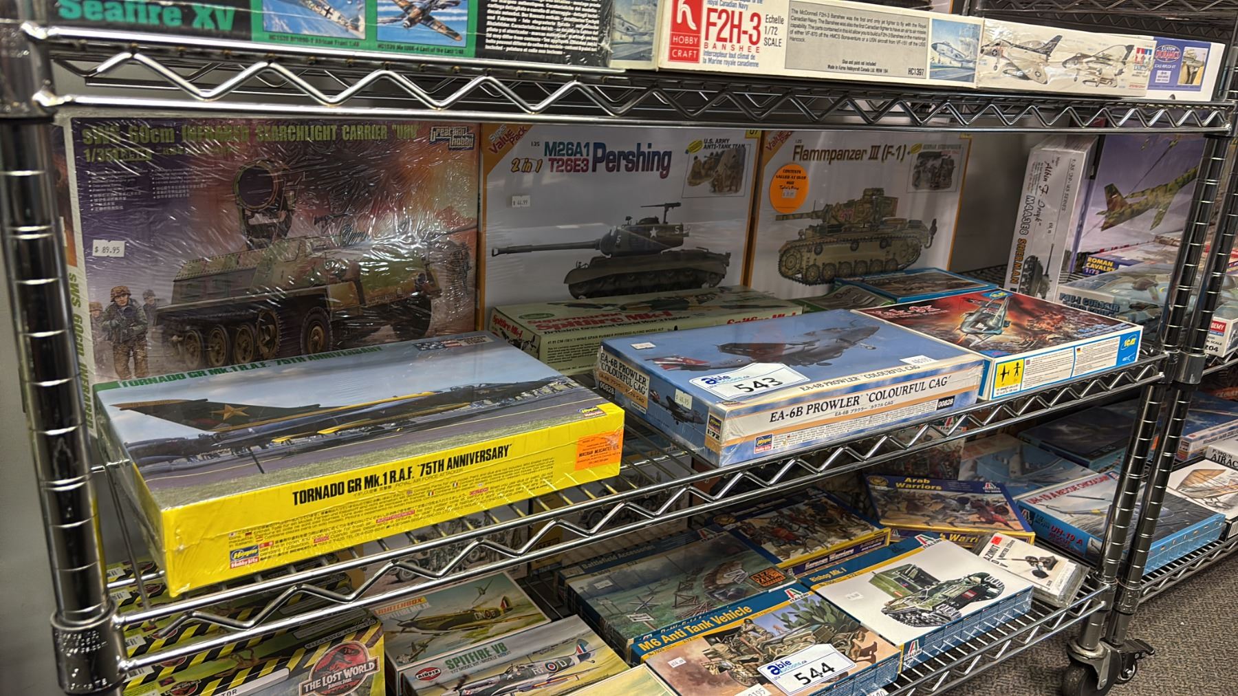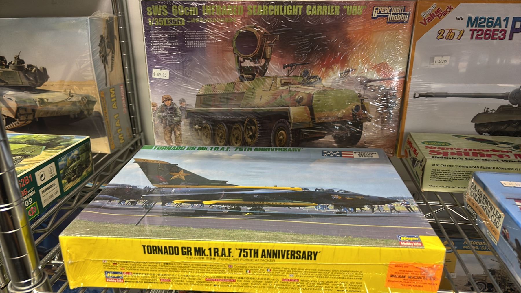 SHELF OF ASSORTED AIRPLANE & TANK MODEL KITS