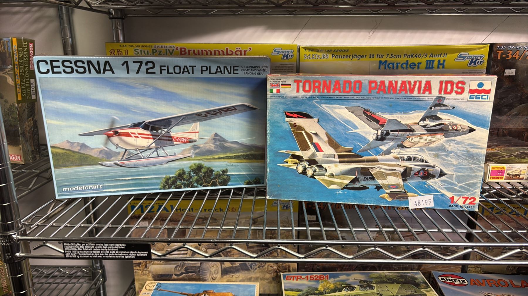 SHELF OF ASSORTED AIRPLANE & TANK MODEL KITS