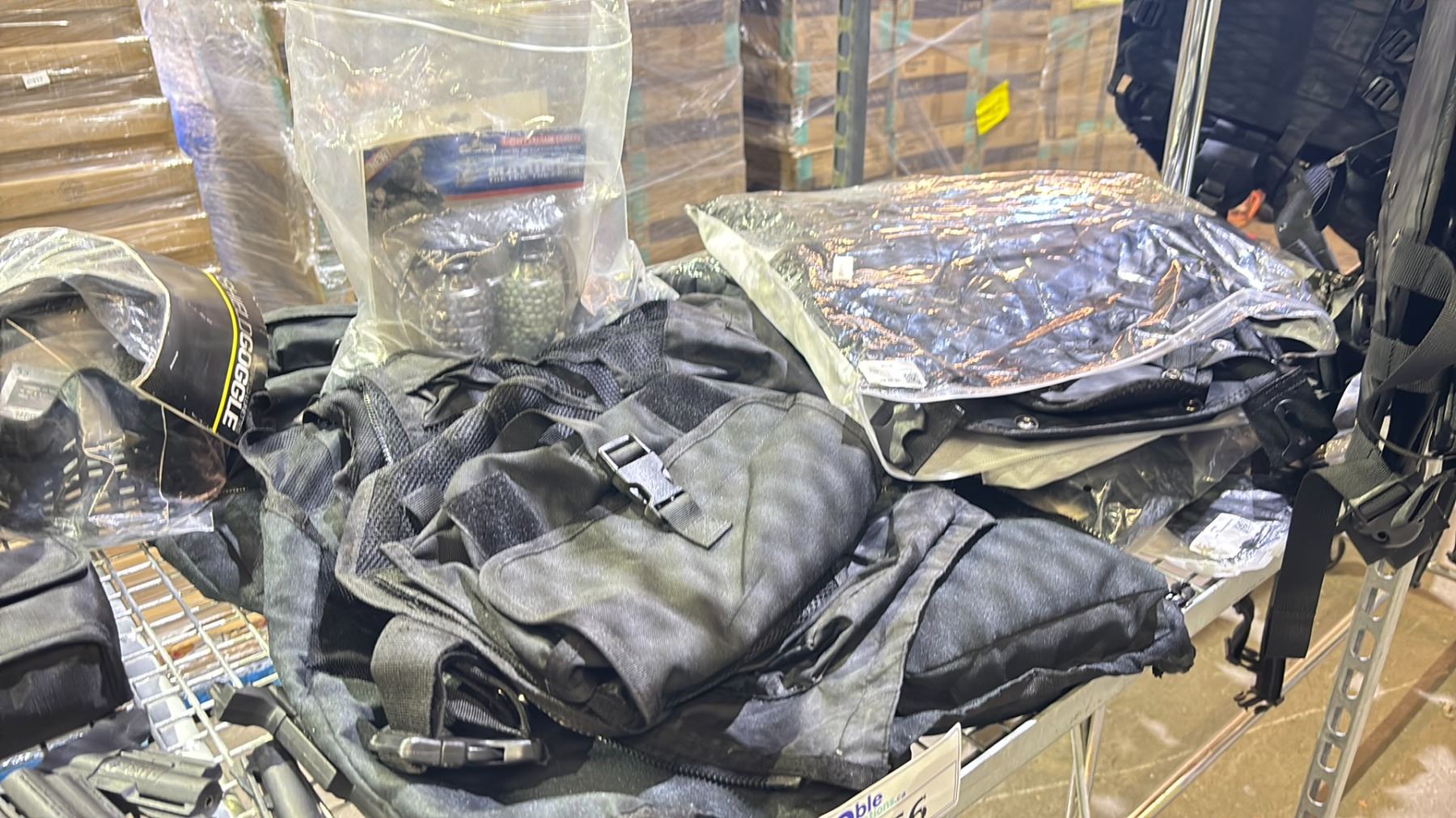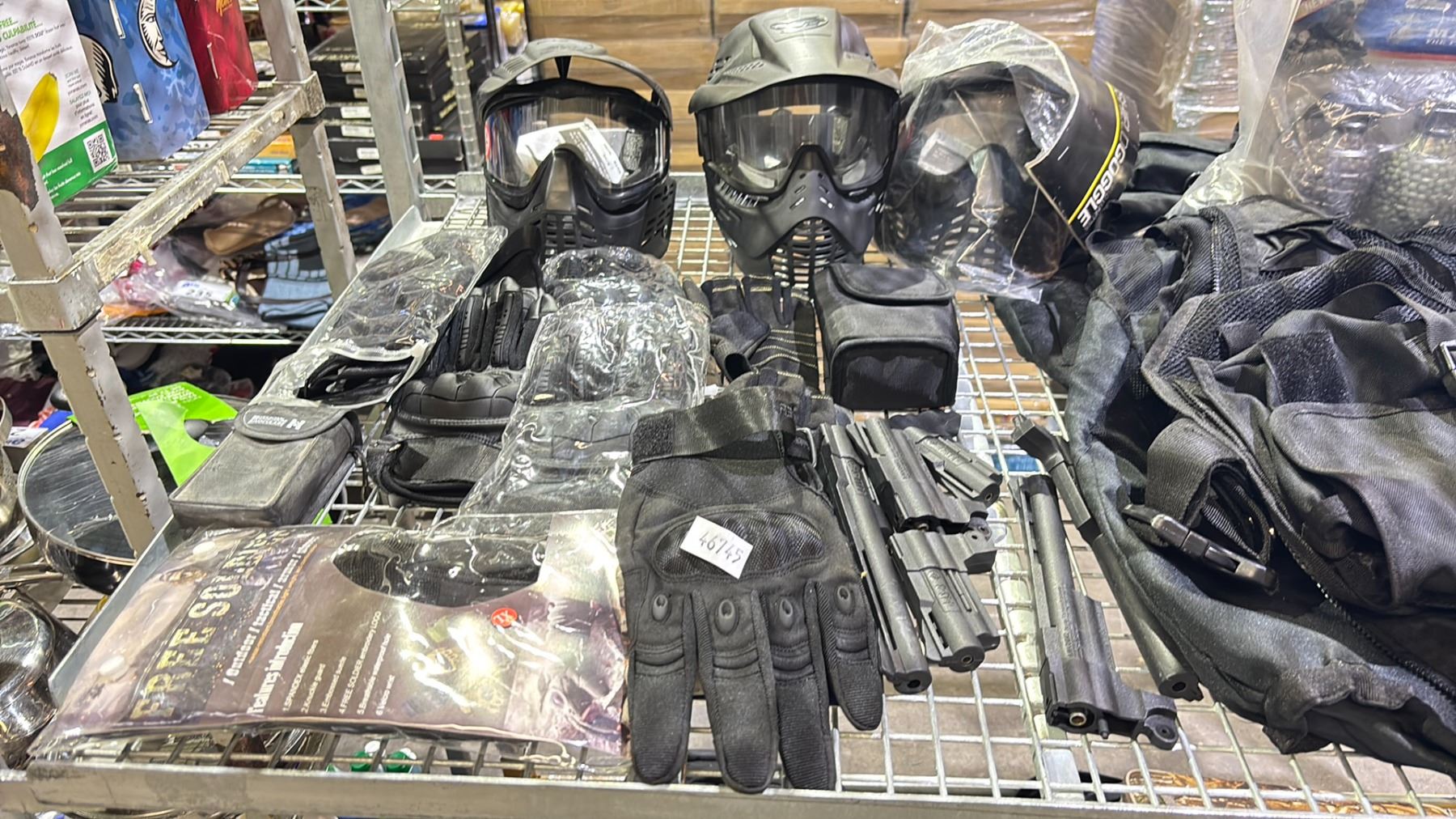 SHELF OF ASSORTED AIRSOFT/ PAINTBALL GEAR & ACCESSORIES
