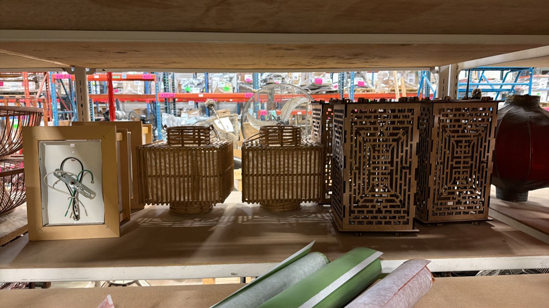 SHELF OF ASSORTED ASIAN DECOR LANTERN BOXES
