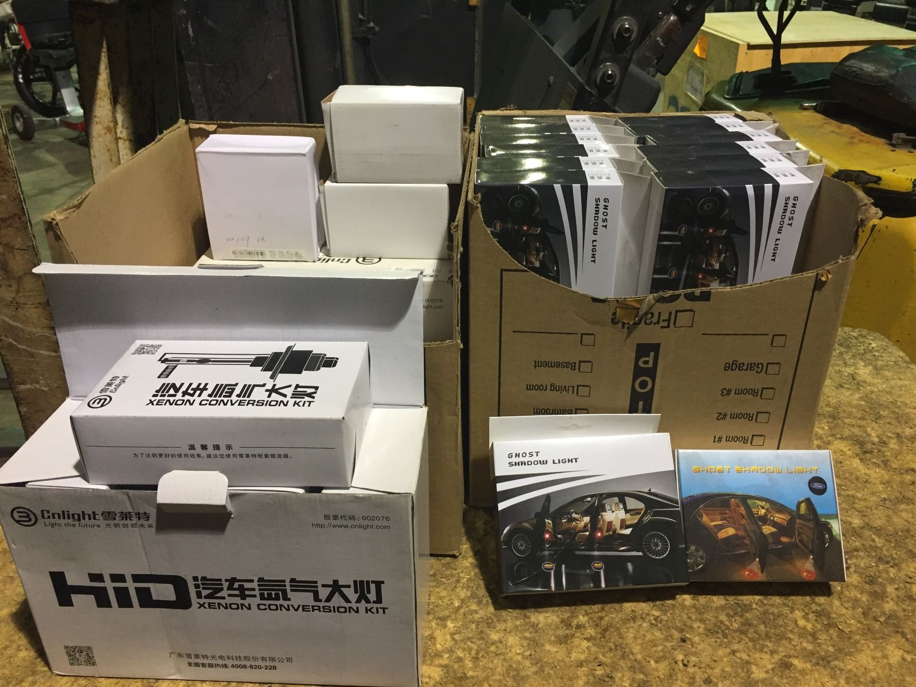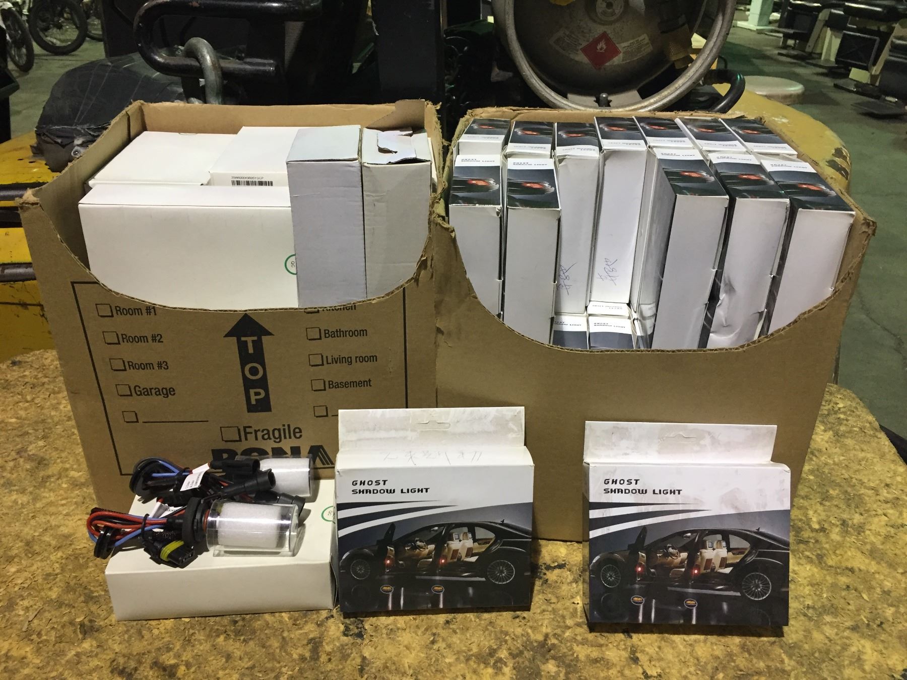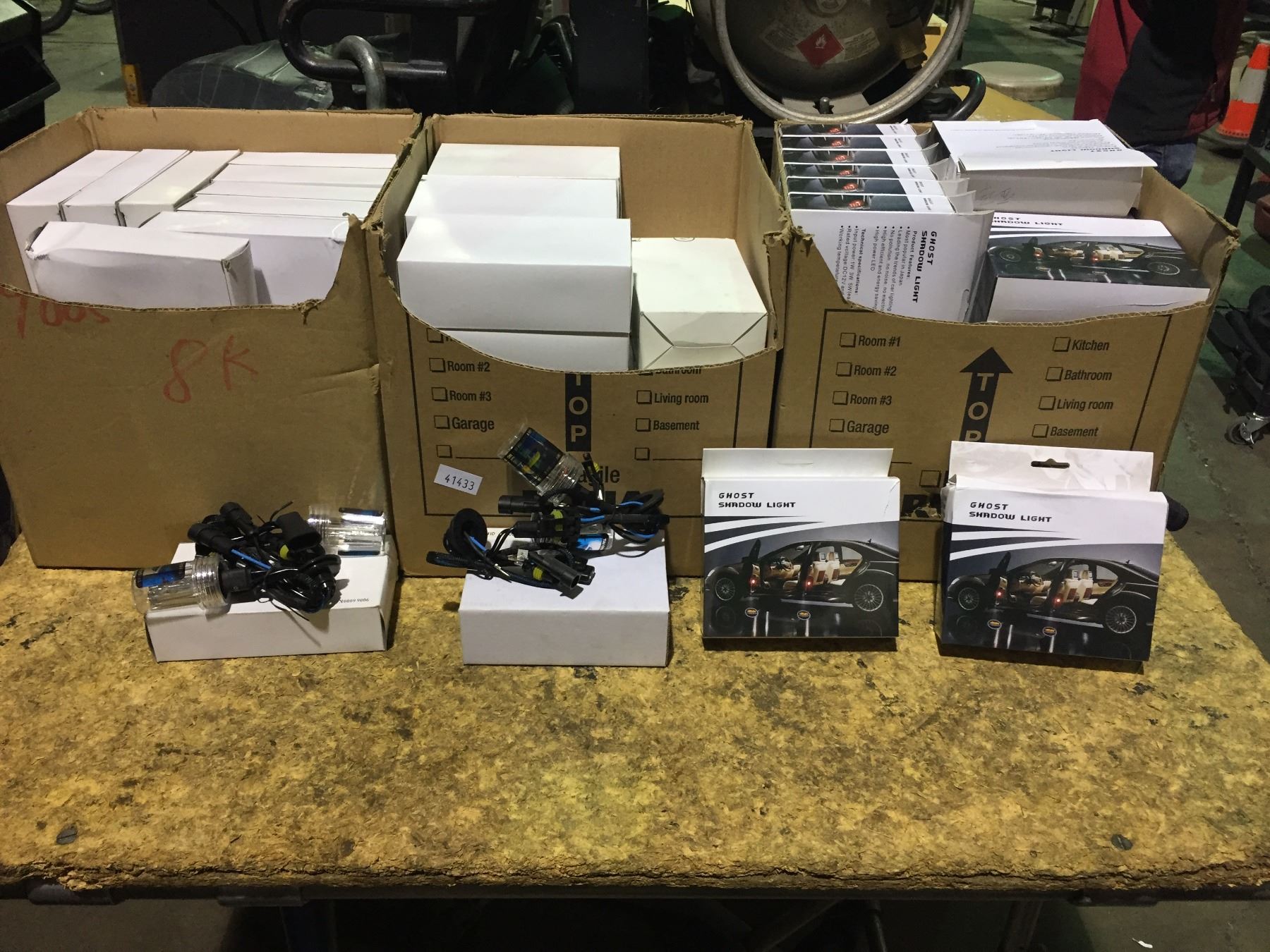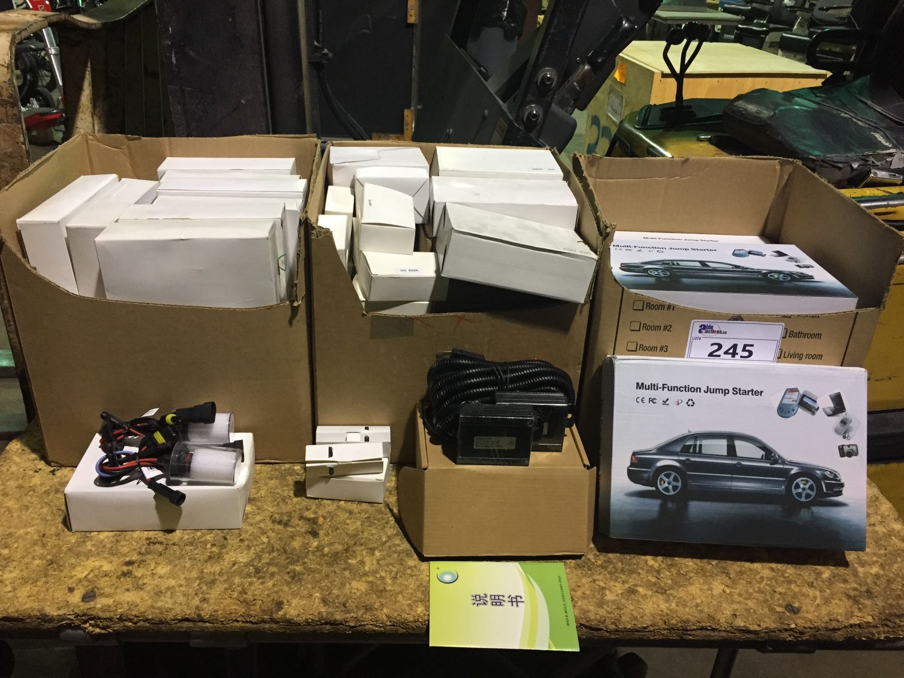 SHELF OF ASSORTED AUTOMOTIVE CAR LIGHTING AND MULTI FUNCTION JUMP STARTERS