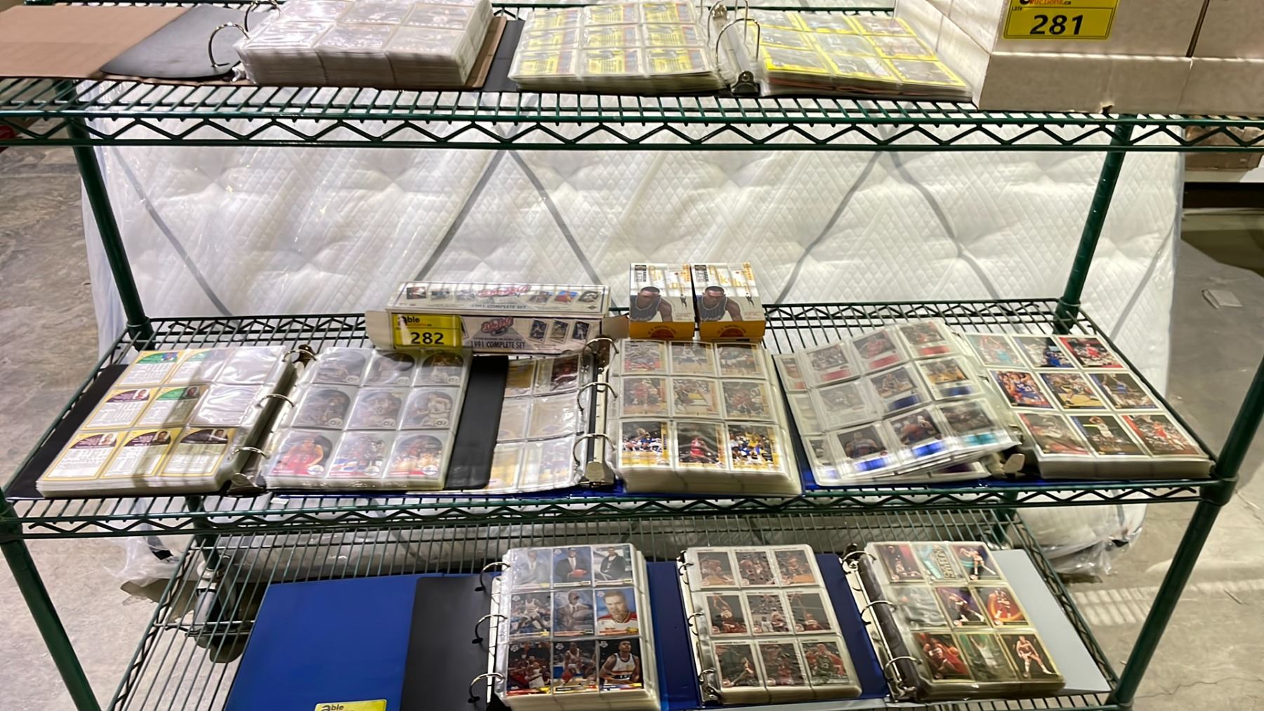 SHELF OF ASSORTED BASKETBALL & BASEBALL CARDS