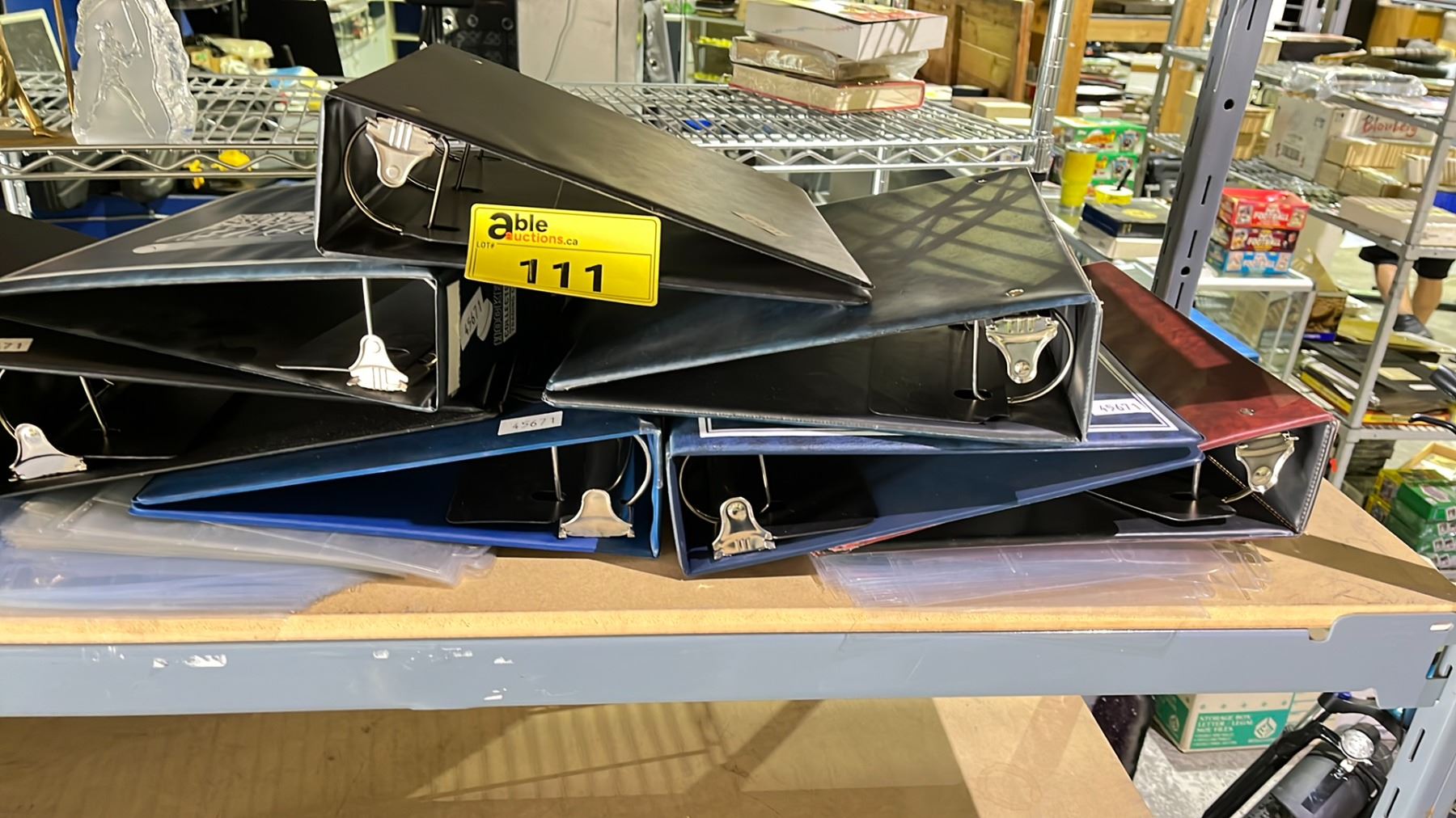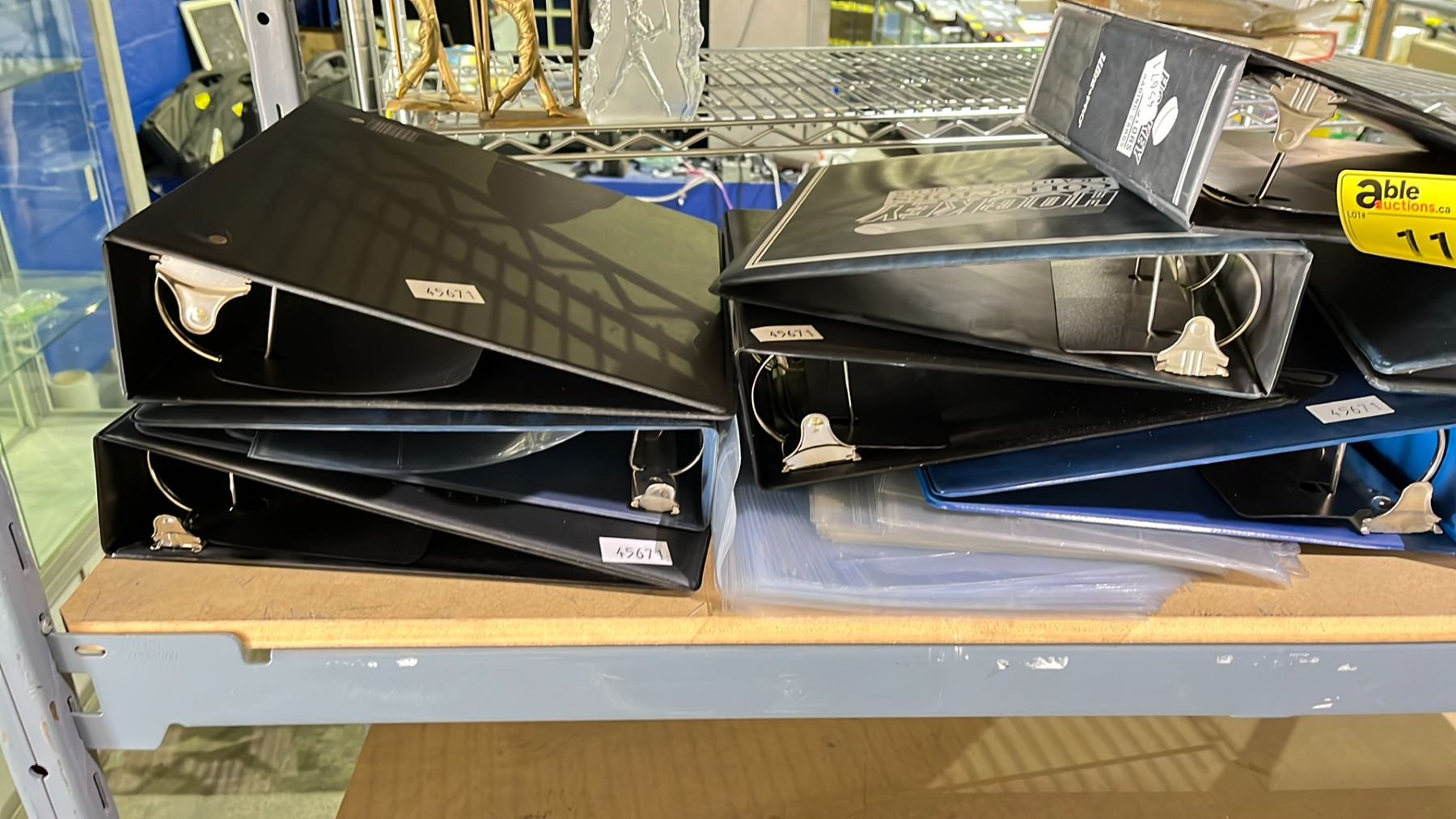 SHELF OF ASSORTED BINDERS & CARD SLEEVES