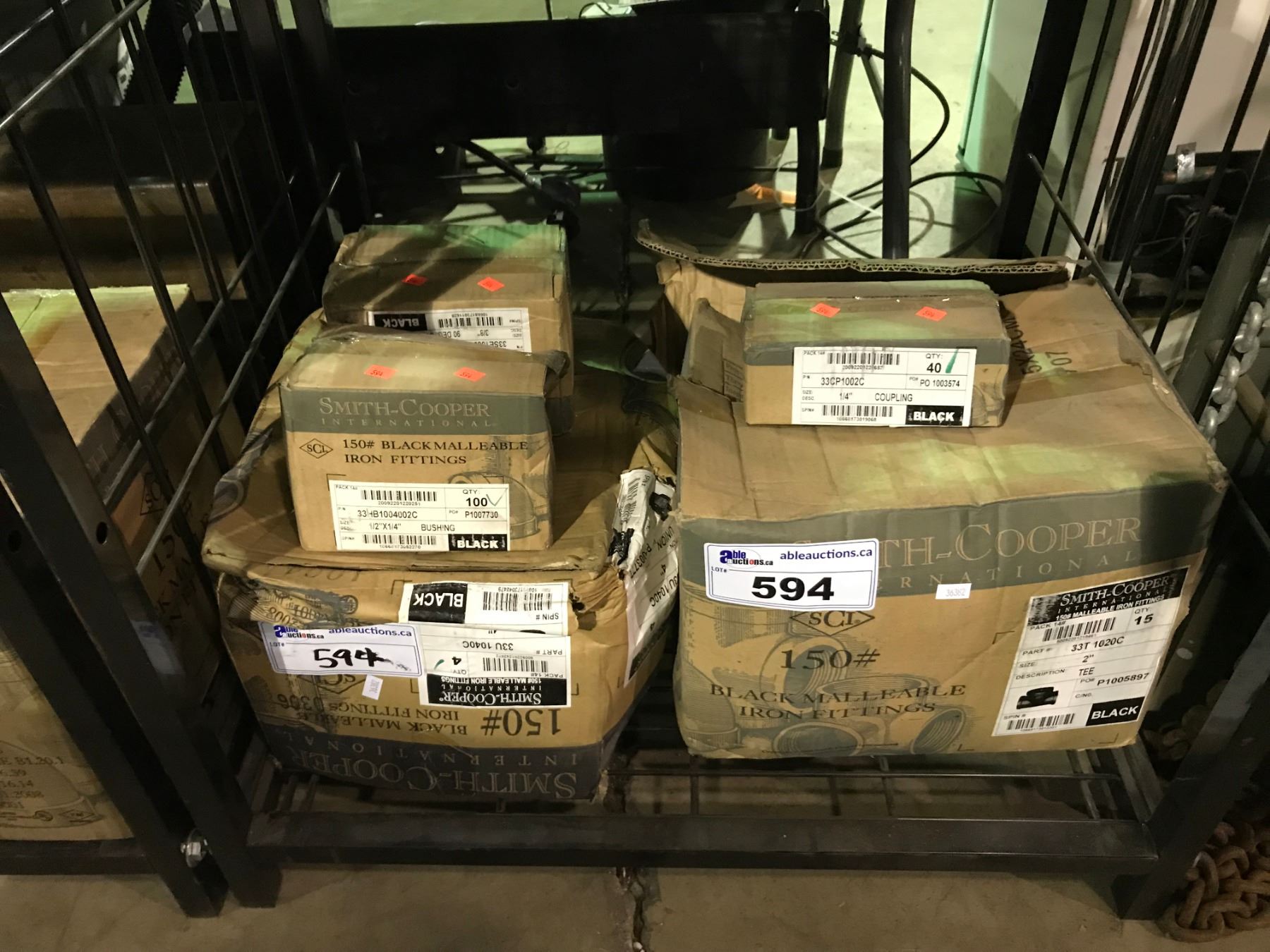 SHELF OF ASSORTED BLACK IRON PIPE FITTINGS