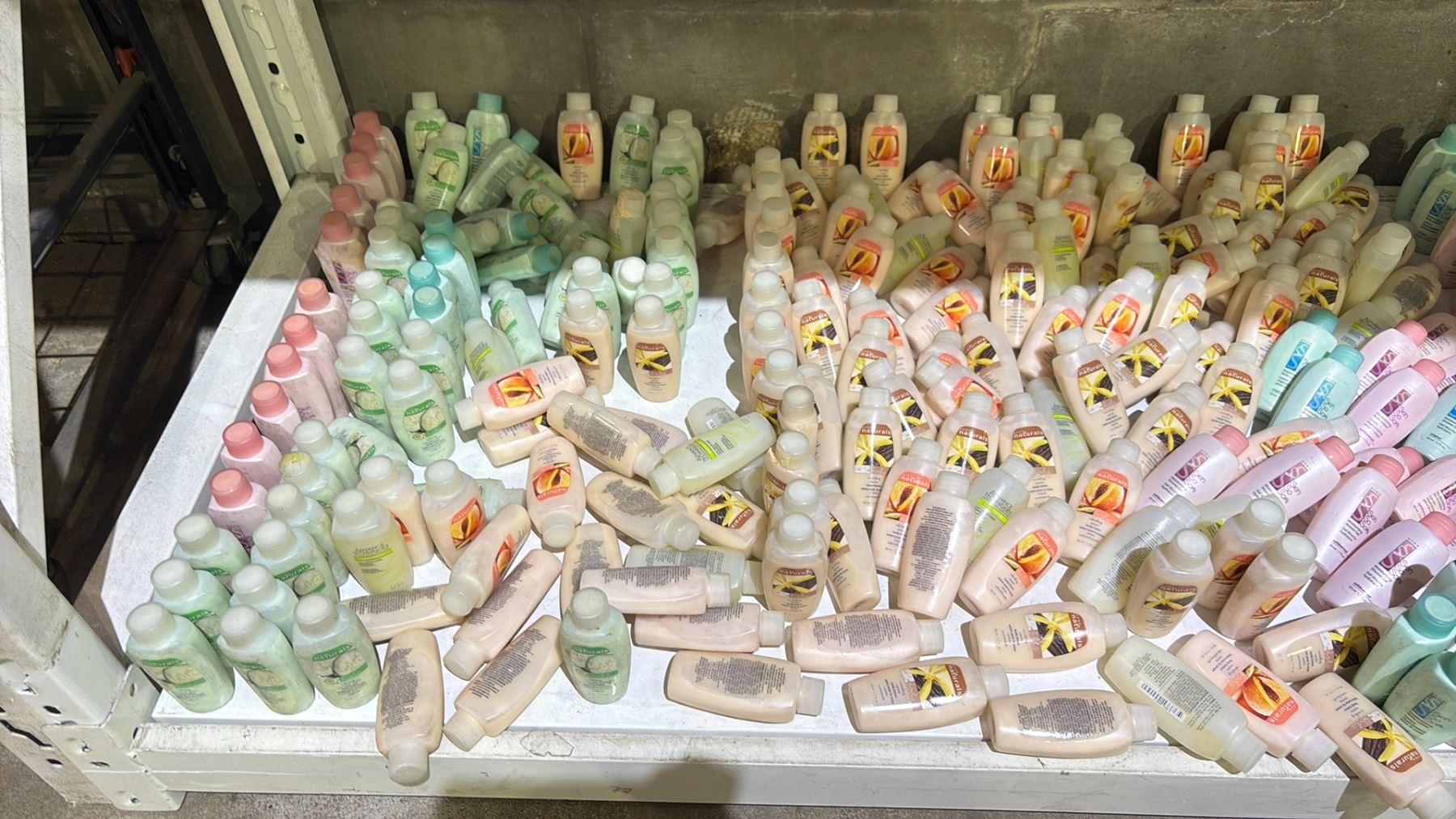 SHELF OF ASSORTED BODY LOTION & SHOWER GEL