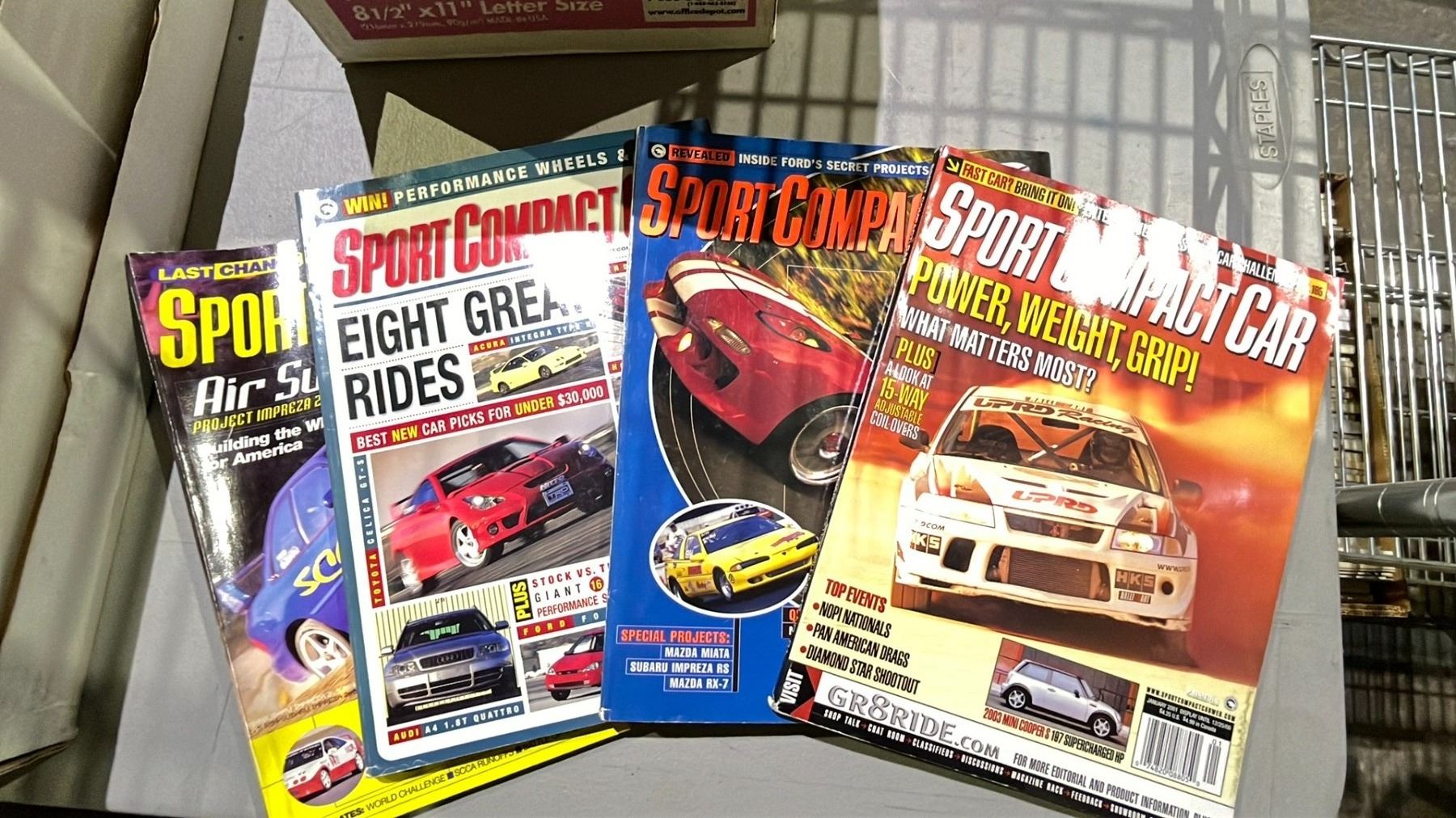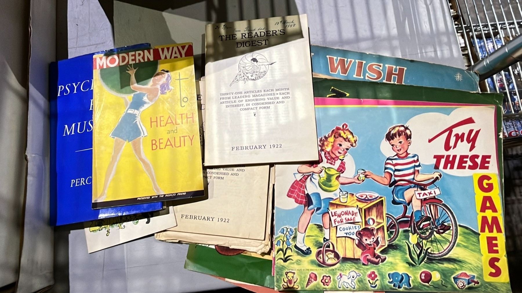 SHELF OF ASSORTED BOOKS & MOTORACING MAGAZINES