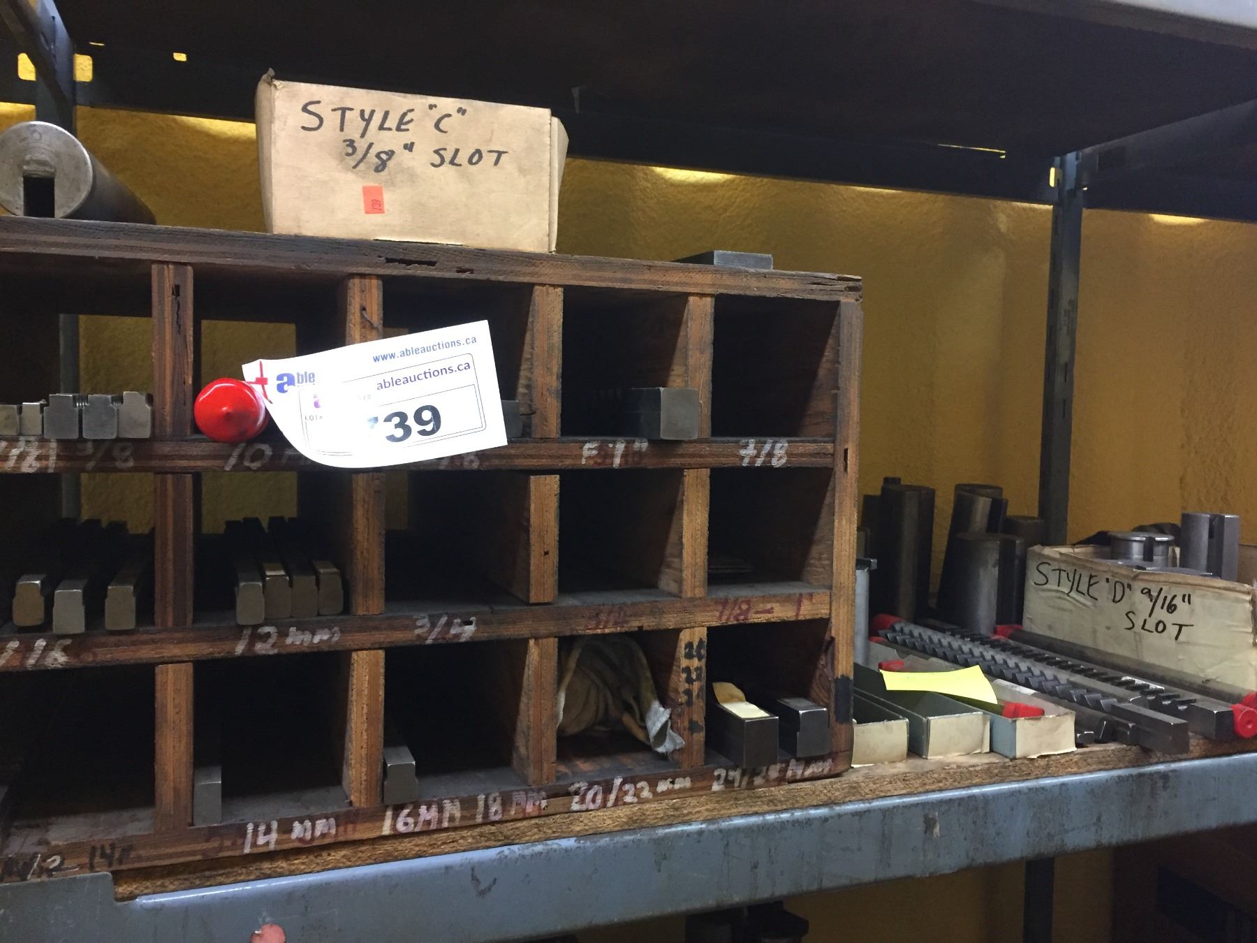 SHELF OF ASSORTED BROACHES, TOOLING, AND MORE