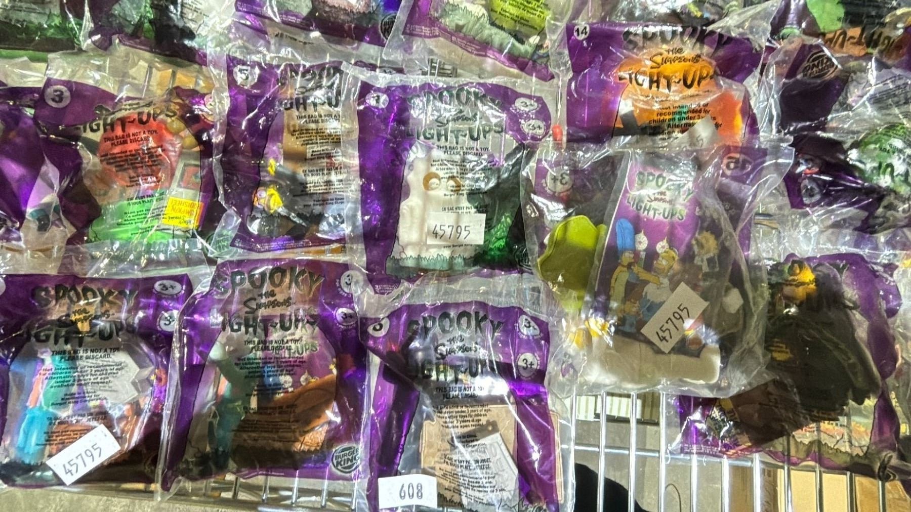 SHELF OF ASSORTED BURGER KING THE SIMPSONS LIGHT-UPS TOYS