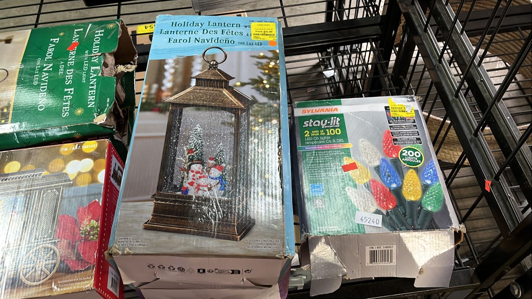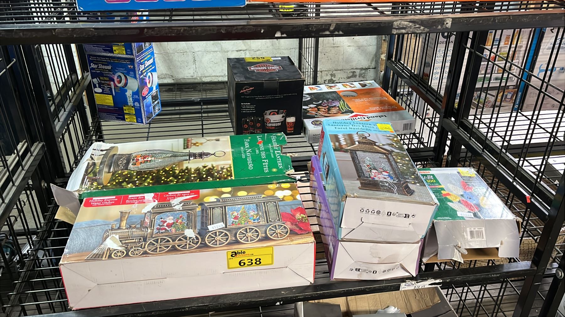 SHELF OF ASSORTED CHRISTMAS DECORATIONS