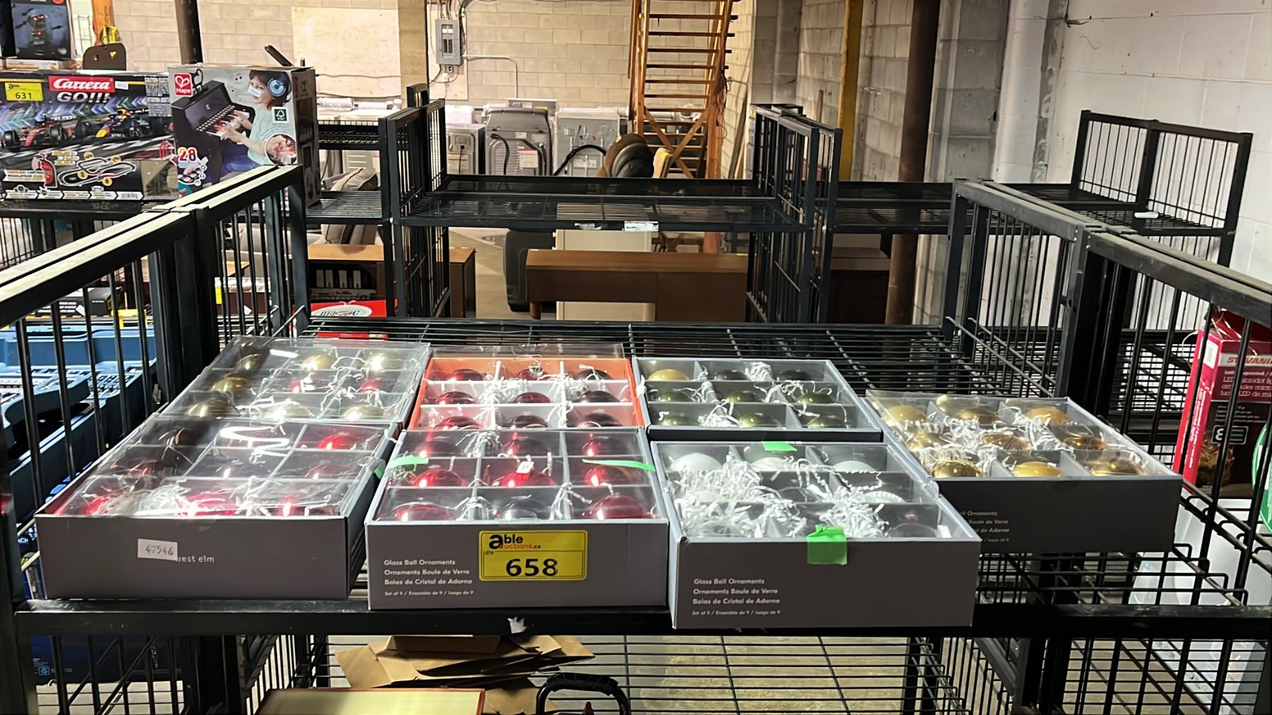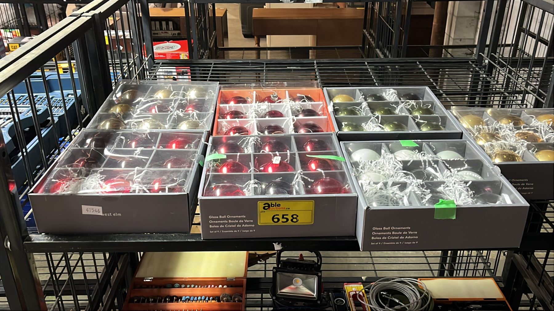 SHELF OF ASSORTED CHRISTMAS DECORATIONS