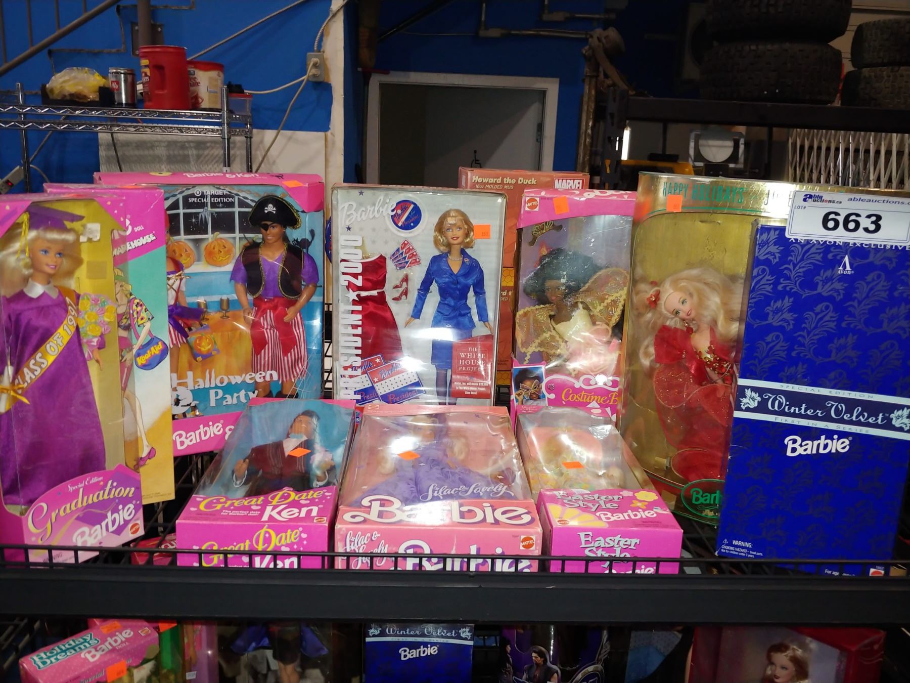SHELF OF ASSORTED COLLECTABLE BARBIE DOLLS