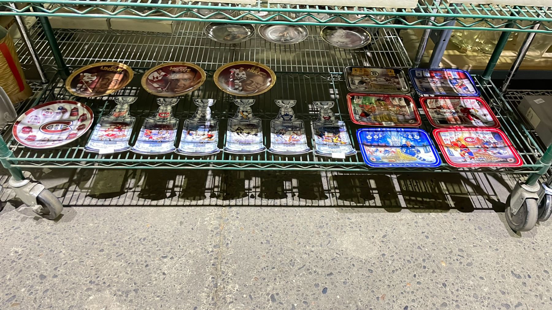 SHELF OF ASSORTED COLLECTIBLE HOCKEY PLATES